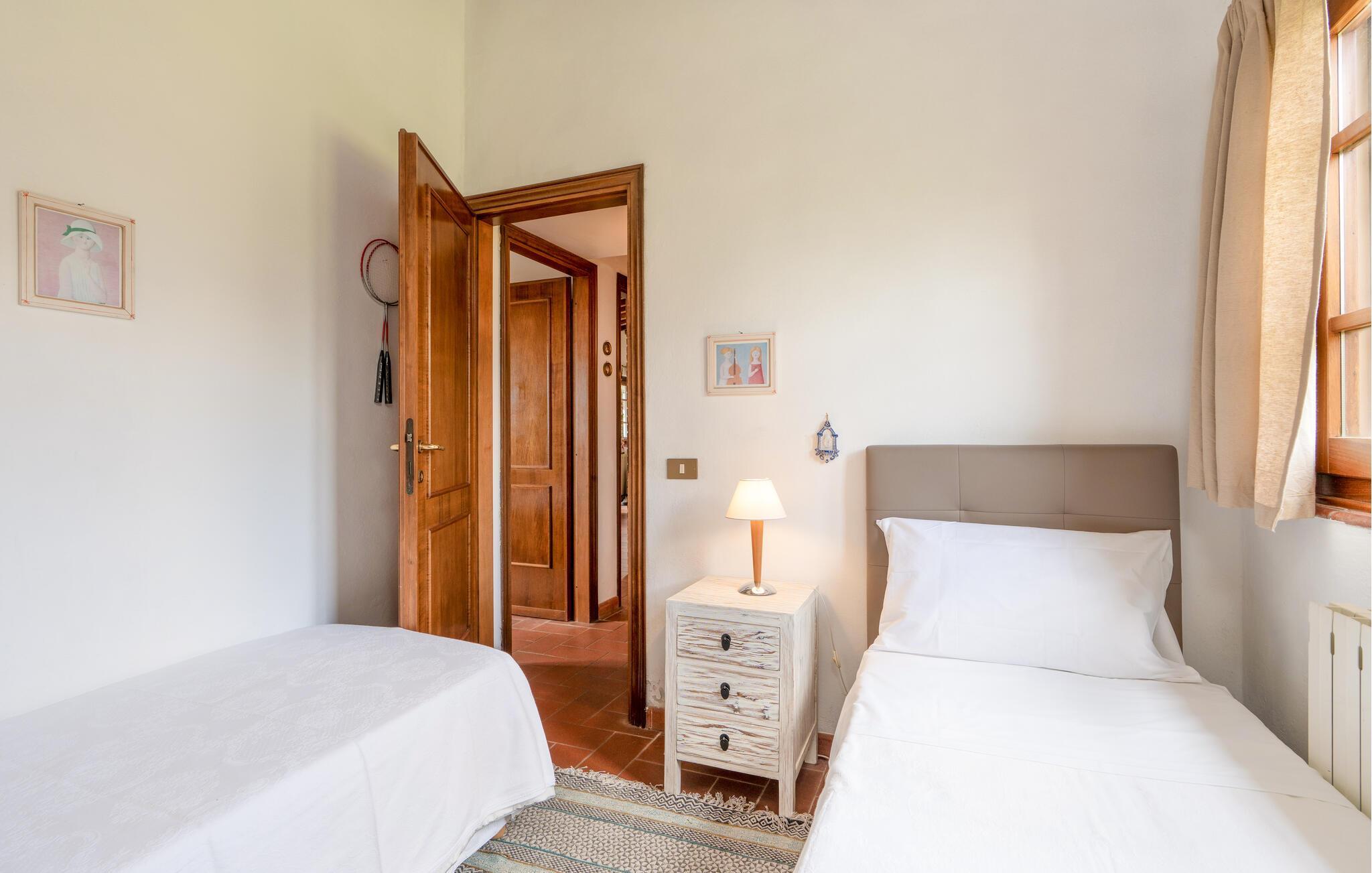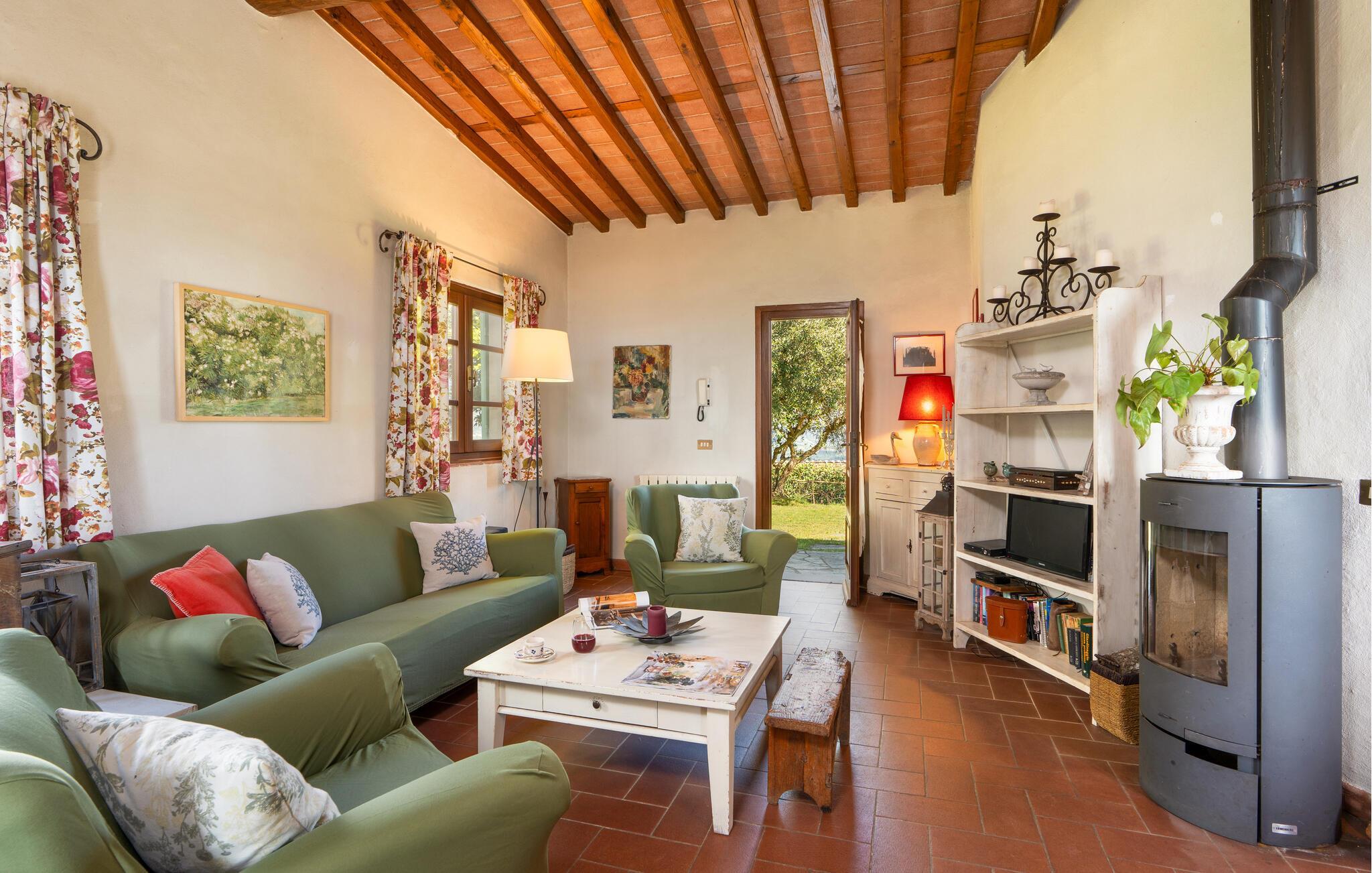 Das einladende Haus empfängt Sie in idyllischer Lage umgeben von der fantastischen Landschaft der Toskana. In den authentisch möblierten Räumen entspannen Sie in wohnlichem Ambiente. Alte Holzdecken und geflieste Böden verleihen dem Inneren des Hauses seinen Charme. Machen Sie es sich abends gemeinsam auf dem Sofa gemütlich und schmieden Sie Pläne für den nächsten Tag.