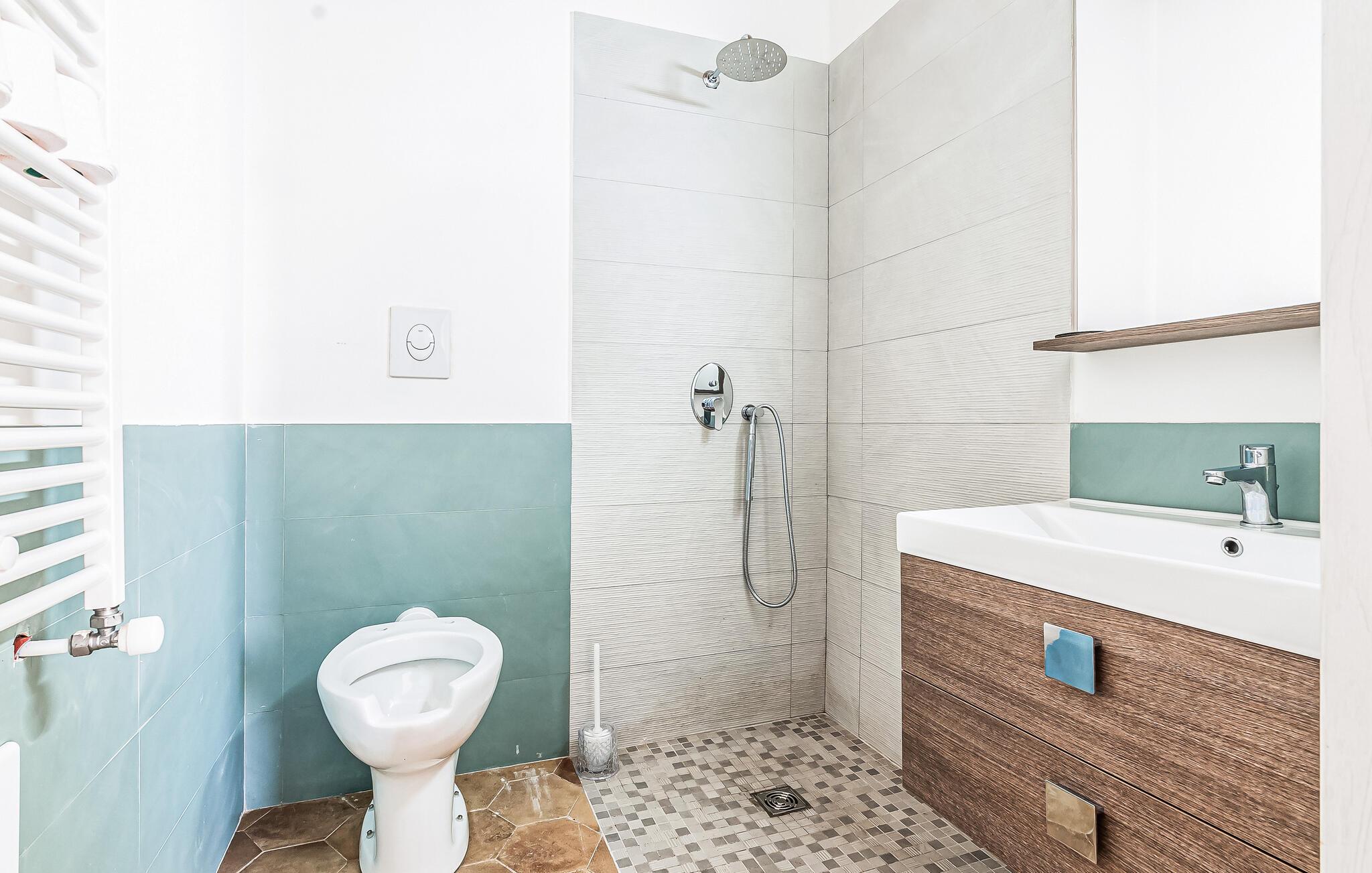 - WC mit warmem und kaltem Wasser, Dusche