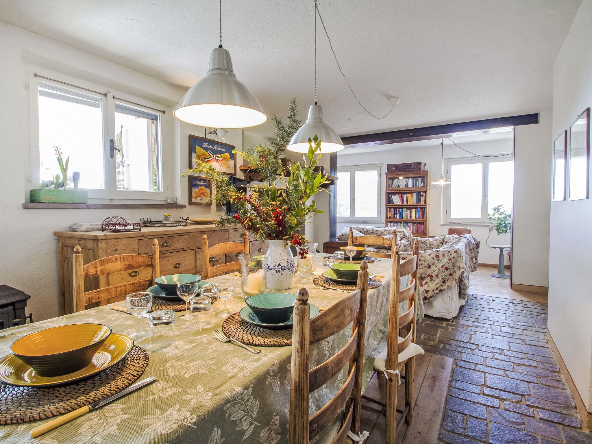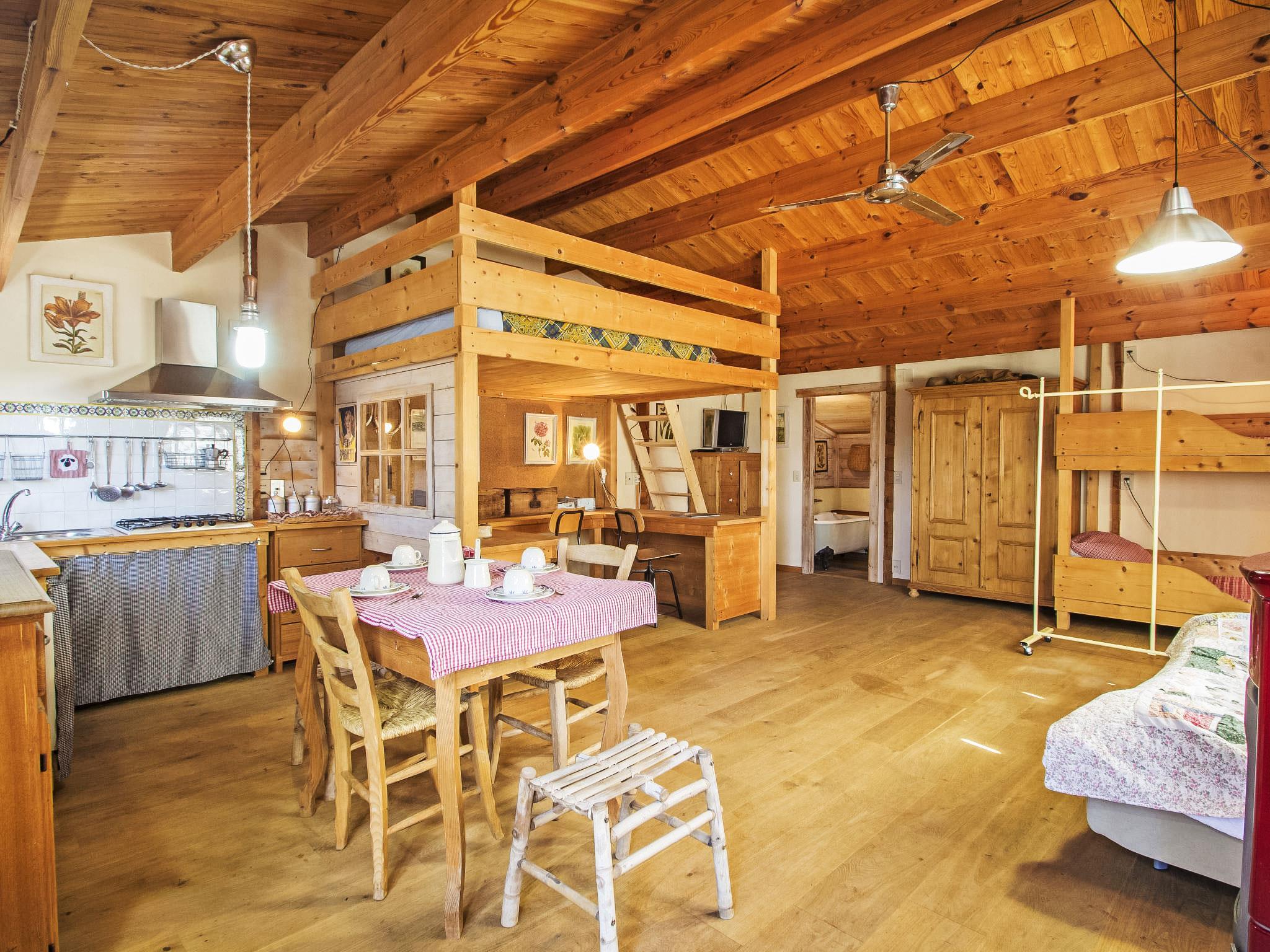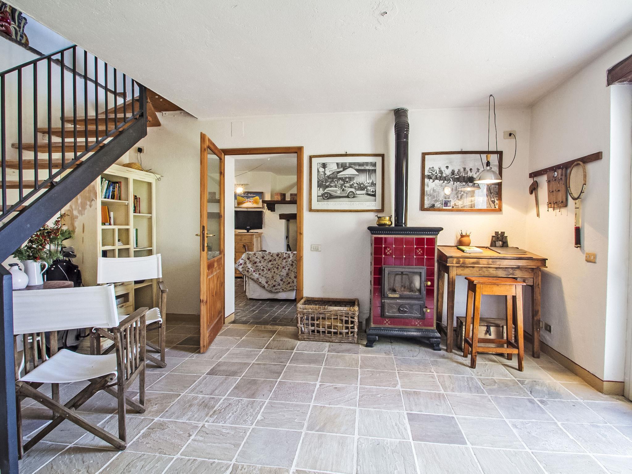 " Paradiso", 7-Zimmer-Villa 300 m2 auf 2 Stockwerken, im Erdgeschoss. Sehr schön und geschmackvoll eingerichtet: Eingang mit Kachelofen. Ausgang zum Garten. Grosses Wohn-/Esszimmer mit offenem Kamin, TV, Flachbildschirm und Heizofen. Ausgang zum Garten. Wohn-/Schlafzimmer mit 1 x 2 Etagenbetten, 1 Doppelbett, Küchenblock, Bad/Bidet/WC, Heizofen und Klimaanlage. Ausgang zum Garten. Wohnküche (5 Kochplatten, Backofen, Geschirrspüler, Mikrowelle, Tiefkühler) mit offenem Kamin, Esstisch und TV (Flachbildschirm), Holzofen. Ausgang zur Loggia. Dusche/Bidet/WC. Obergeschoss: grosses Wohn-/Esszimmer mit offenem Kamin, TV und Flachbildschirm. 1 Doppelzimmer mit Dusche/Bidet/WC, TV, Flachbildschirm und Klimaanlage. Ausgang zum Garten. 1 Doppelzimmer mit begehbarem Kleiderschrank. 1 Zimmer mit 2 Betten, TV, Flachbildschirm und Klimaanlage. Ausgang zum Garten. Bad/Bidet/WC, Whirlbadewanne. Holzheizung, Solarheizung. Holzdielenboden, Natursteinboden. Panoramasicht auf das Tal. Zur Verfügung: Waschmaschine, Fliegengitter, Haartrockner. Internet (Wireless LAN). E-Ladestation. 1 kleines Haustier/Hund erlaubt. Das Wohnzimmer mit Doppelbett im Zwischengeschoss, Etagenbett, Küche und Bad befindet sich im Nebengebäude, im Garten, nur wenige Meter vom Swimmingpool entfernt. Smart-TV ist im Haupthaus verfügbar. Bei Belegung mit weniger Personen als der maximalen Personenzahl steht das Nebengebäude nicht zur Verfügung. IT054039C204033329