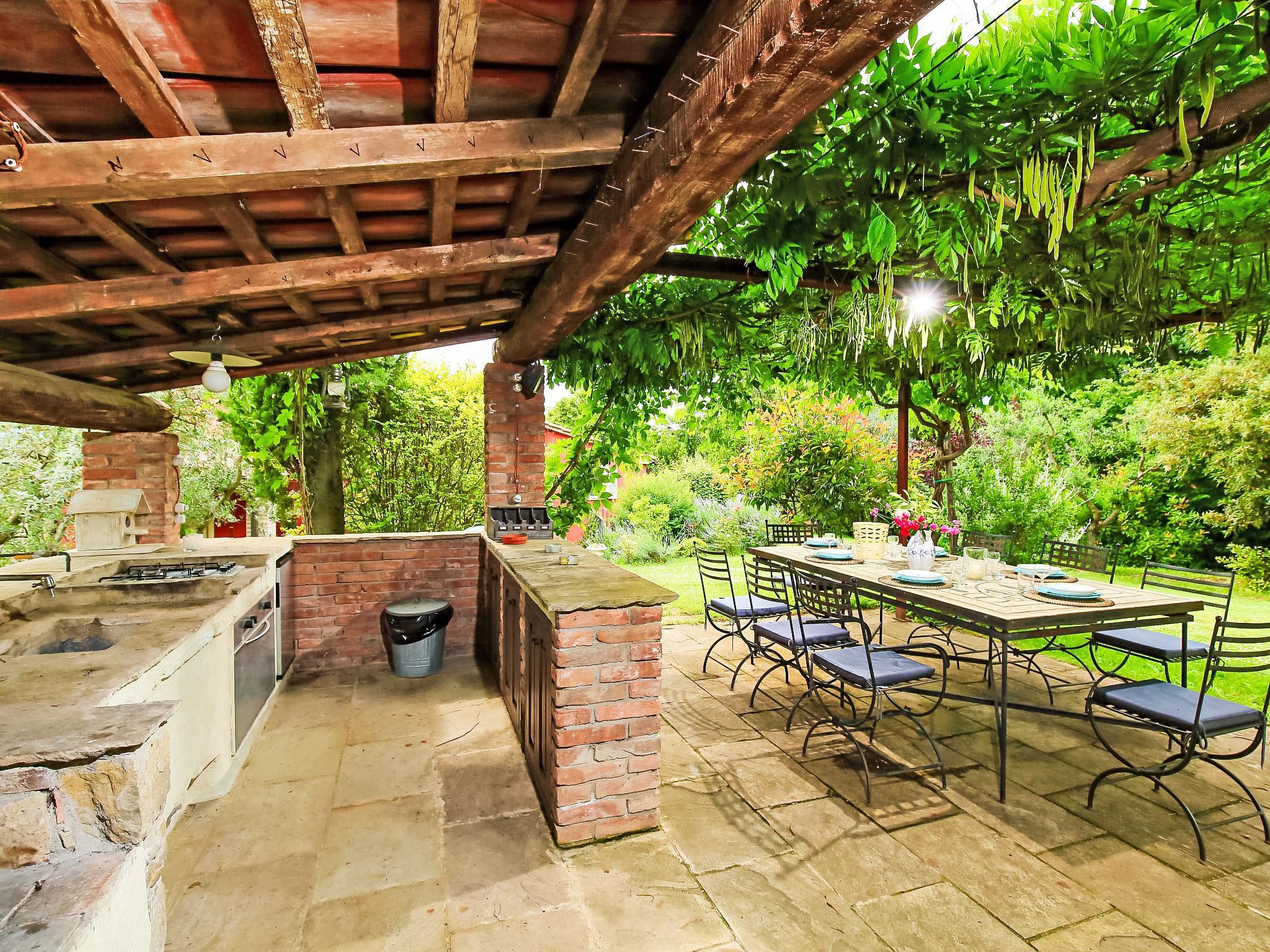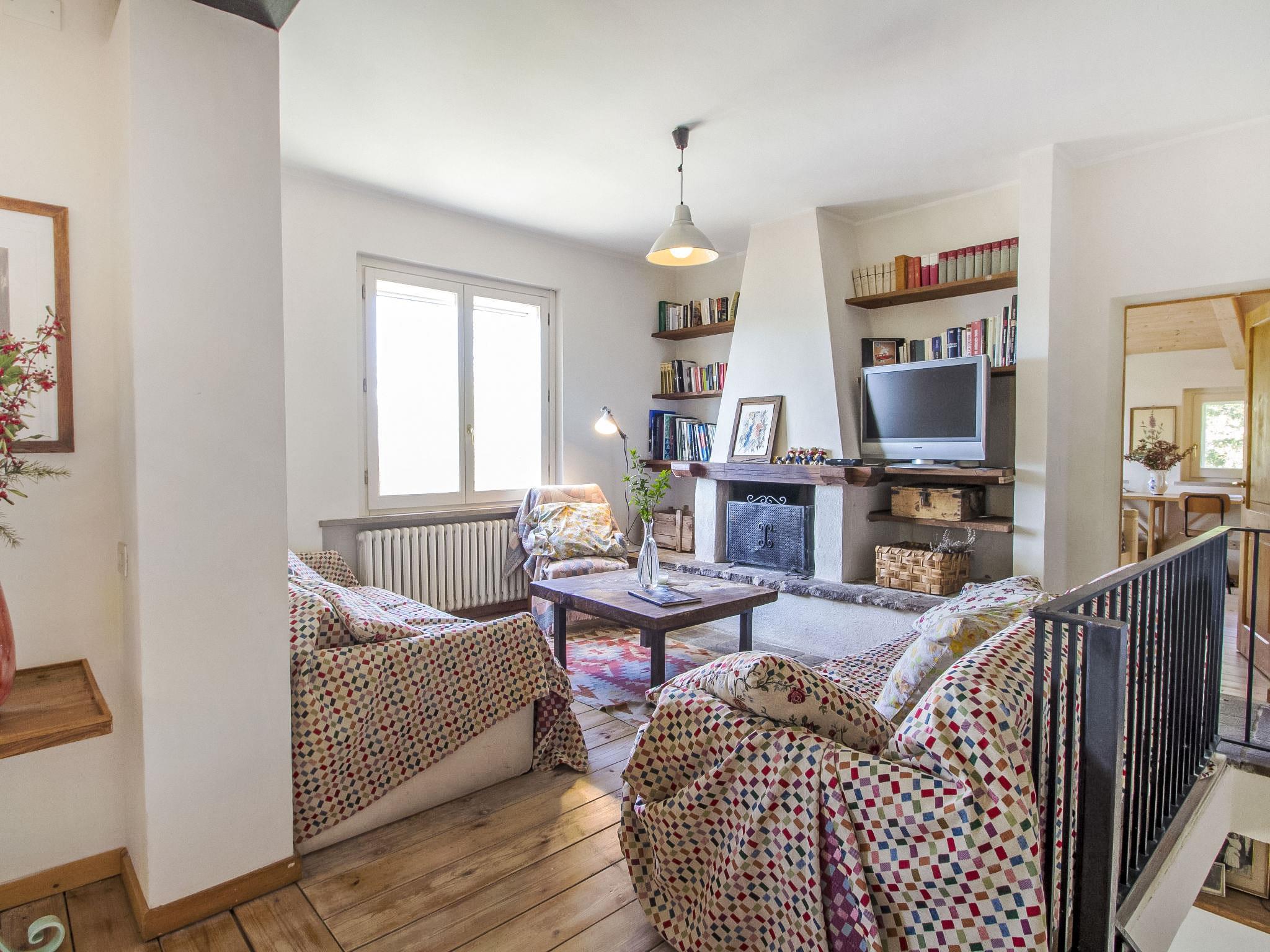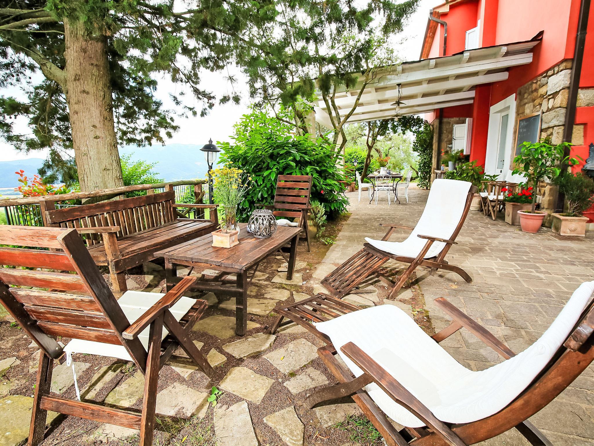 " Paradiso", 7-Zimmer-Villa 300 m2 auf 2 Stockwerken, im Erdgeschoss. Sehr schön und geschmackvoll eingerichtet: Eingang mit Kachelofen. Ausgang zum Garten. Grosses Wohn-/Esszimmer mit offenem Kamin, TV, Flachbildschirm und Heizofen. Ausgang zum Garten. Wohn-/Schlafzimmer mit 1 x 2 Etagenbetten, 1 Doppelbett, Küchenblock, Bad/Bidet/WC, Heizofen und Klimaanlage. Ausgang zum Garten. Wohnküche (5 Kochplatten, Backofen, Geschirrspüler, Mikrowelle, Tiefkühler) mit offenem Kamin, Esstisch und TV (Flachbildschirm), Holzofen. Ausgang zur Loggia. Dusche/Bidet/WC. Obergeschoss: grosses Wohn-/Esszimmer mit offenem Kamin, TV und Flachbildschirm. 1 Doppelzimmer mit Dusche/Bidet/WC, TV, Flachbildschirm und Klimaanlage. Ausgang zum Garten. 1 Doppelzimmer mit begehbarem Kleiderschrank. 1 Zimmer mit 2 Betten, TV, Flachbildschirm und Klimaanlage. Ausgang zum Garten. Bad/Bidet/WC, Whirlbadewanne. Holzheizung, Solarheizung. Holzdielenboden, Natursteinboden. Panoramasicht auf das Tal. Zur Verfügung: Waschmaschine, Fliegengitter, Haartrockner. Internet (Wireless LAN). E-Ladestation. 1 kleines Haustier/Hund erlaubt. Das Wohnzimmer mit Doppelbett im Zwischengeschoss, Etagenbett, Küche und Bad befindet sich im Nebengebäude, im Garten, nur wenige Meter vom Swimmingpool entfernt. Smart-TV ist im Haupthaus verfügbar. Bei Belegung mit weniger Personen als der maximalen Personenzahl steht das Nebengebäude nicht zur Verfügung. IT054039C204033329