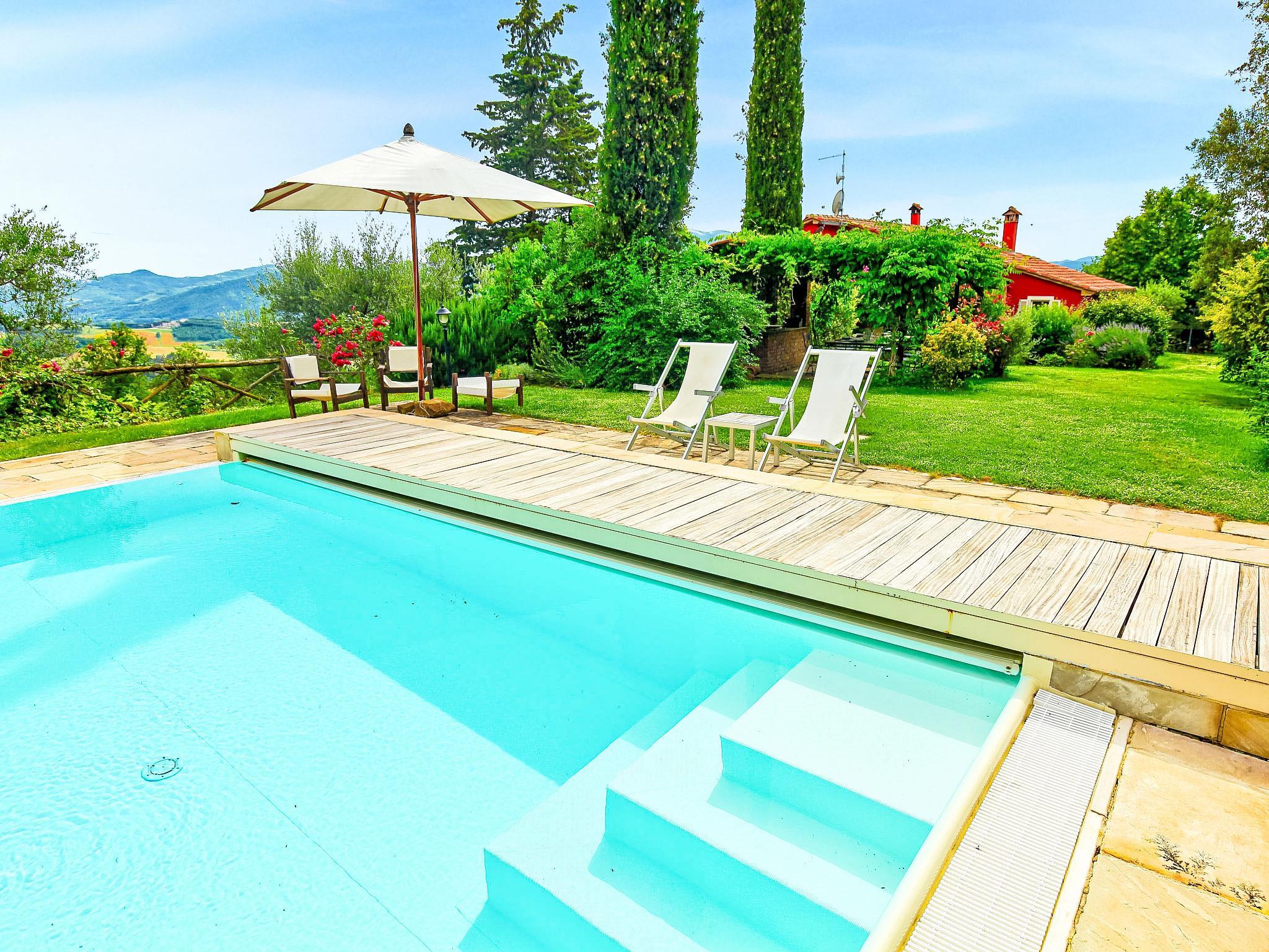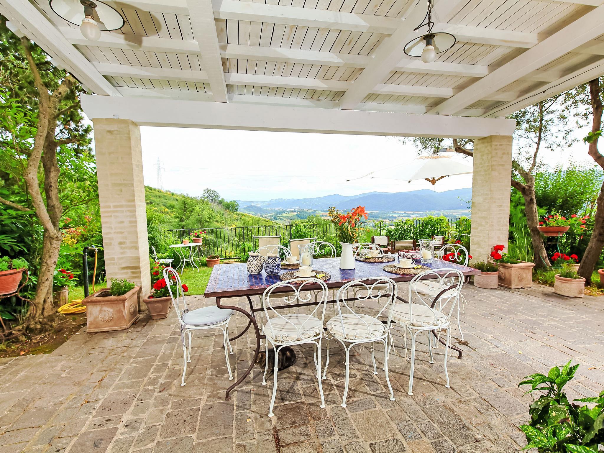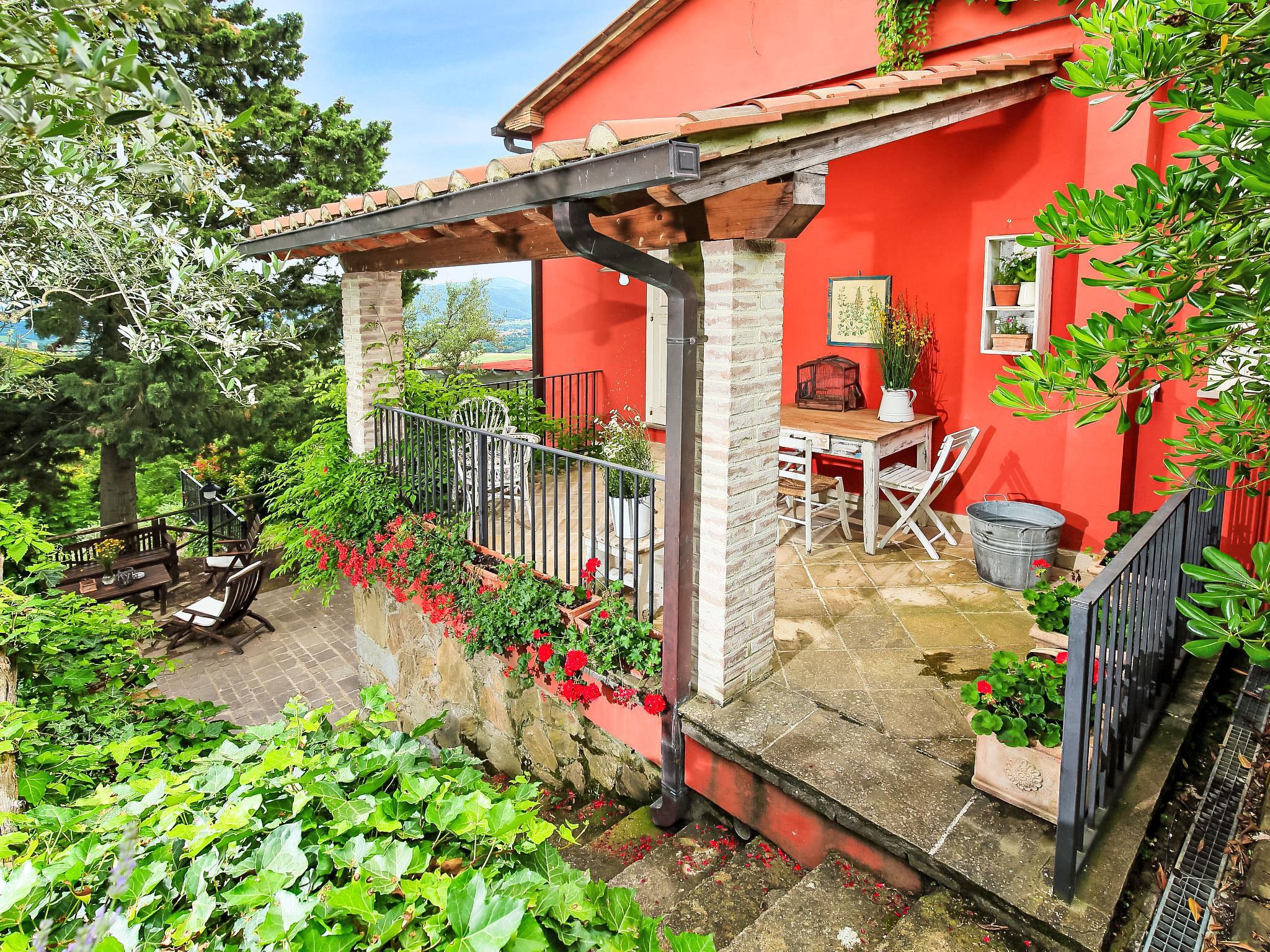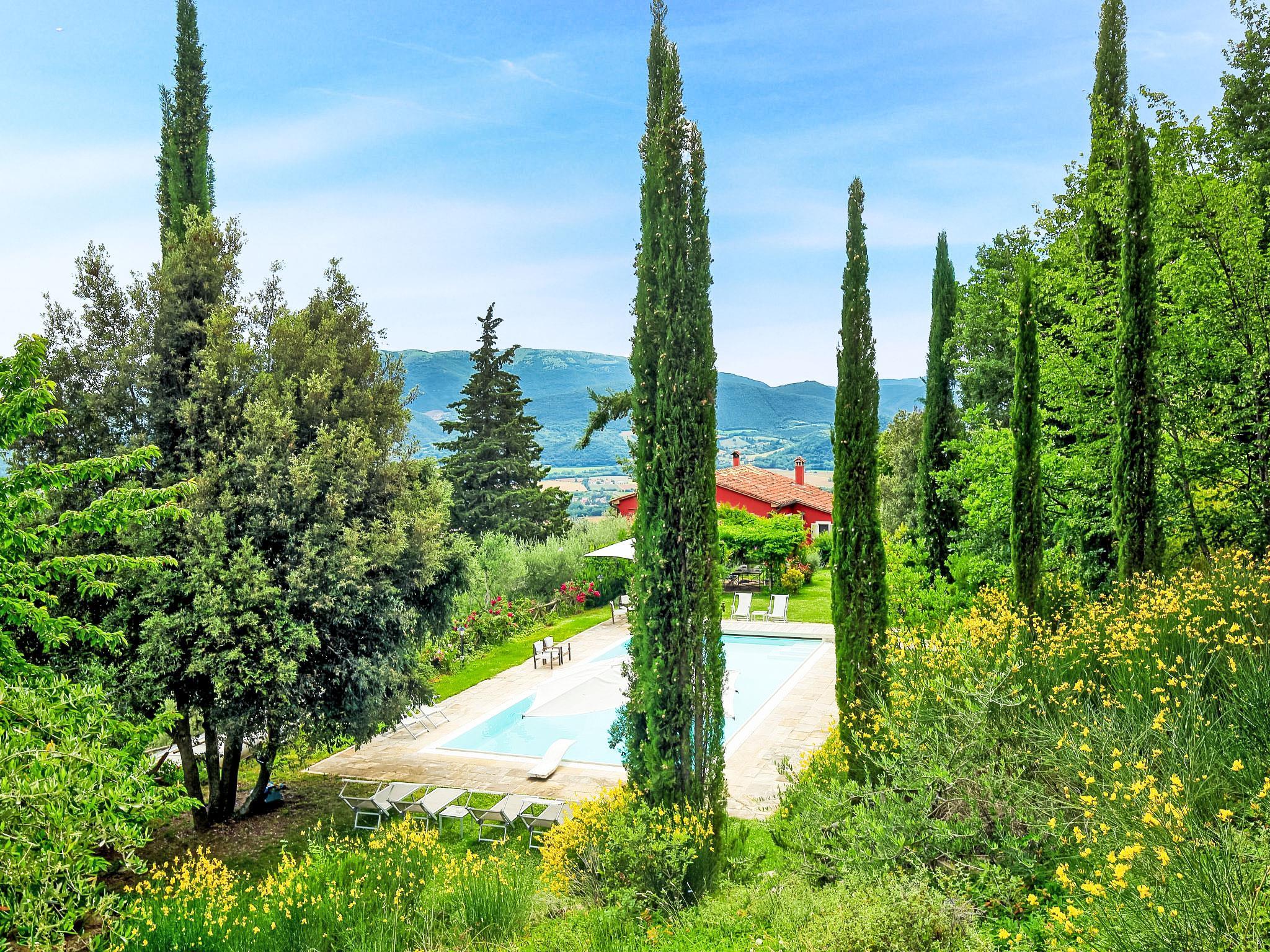 Auf einem schönen Hügel im Herzen von Umbrien gelegen und mit den wichtigsten Dienstleistungszentren verbunden, bietet dieses Haus einen unvergleichlichen Blick auf das Tal. Ideal für erholsame Ferien und mit schöner Natur, ohne jeglichen Komfort zu vermissen. Freistehende Villa " Paradiso", 330 m.ü.M., umgeben von Bäumen, Wiesen und Feldern. Mietobjekt bestehend aus Haupt- und Nebengebäude, 24 km vom Zentrum von Perugia, alleinstehende, sonnige, erhöhte Lage, 36 km vom See. Zur Alleinbenutzung: Grundstück 3 ha, Pflanzen und Blumen, wunderschöner Garten zum Entspannen, Schwimmbad (6 x 14 m, 120 - 250 cm tief, saisonale Verfügbarkeit: 01.Mai. - 30.Sep.). Aussendusche, Gartenmöbel, Grill, Poolpflege durch den Besitzer/Gärtner. Im Hause: Wireless LAN. Parkplatz beim Haus. E-Ladestation. Lebensmittelgeschäft 5 km, Restaurant 5 km, Bar 4 km, Thermalbad "Terme Francescane" 40 km, Badesee "Trasimeno" 36 km. Golfplatz (18 Loch) 12 km, Reitstall 7 km. Nahe gelegene Sehenswürdigkeiten: Gubbio 35 km, Città di Castello 40 km, Assisi 40 km, Passignao sul Trasimeno 40 km, Arezzo 75 km. Bitte beachten: Fahrzeug empfohlen. Jugendgruppen nur auf Anfrage. Im Park unter der Pergola befindet sich ein Grillplatz mit Kühlschrank, Holzofen, Backofen, Gasherd und großem Esstisch. Je nach Jahreszeit ist es möglich, die Gemüseprodukte aus dem Garten zu kosten.