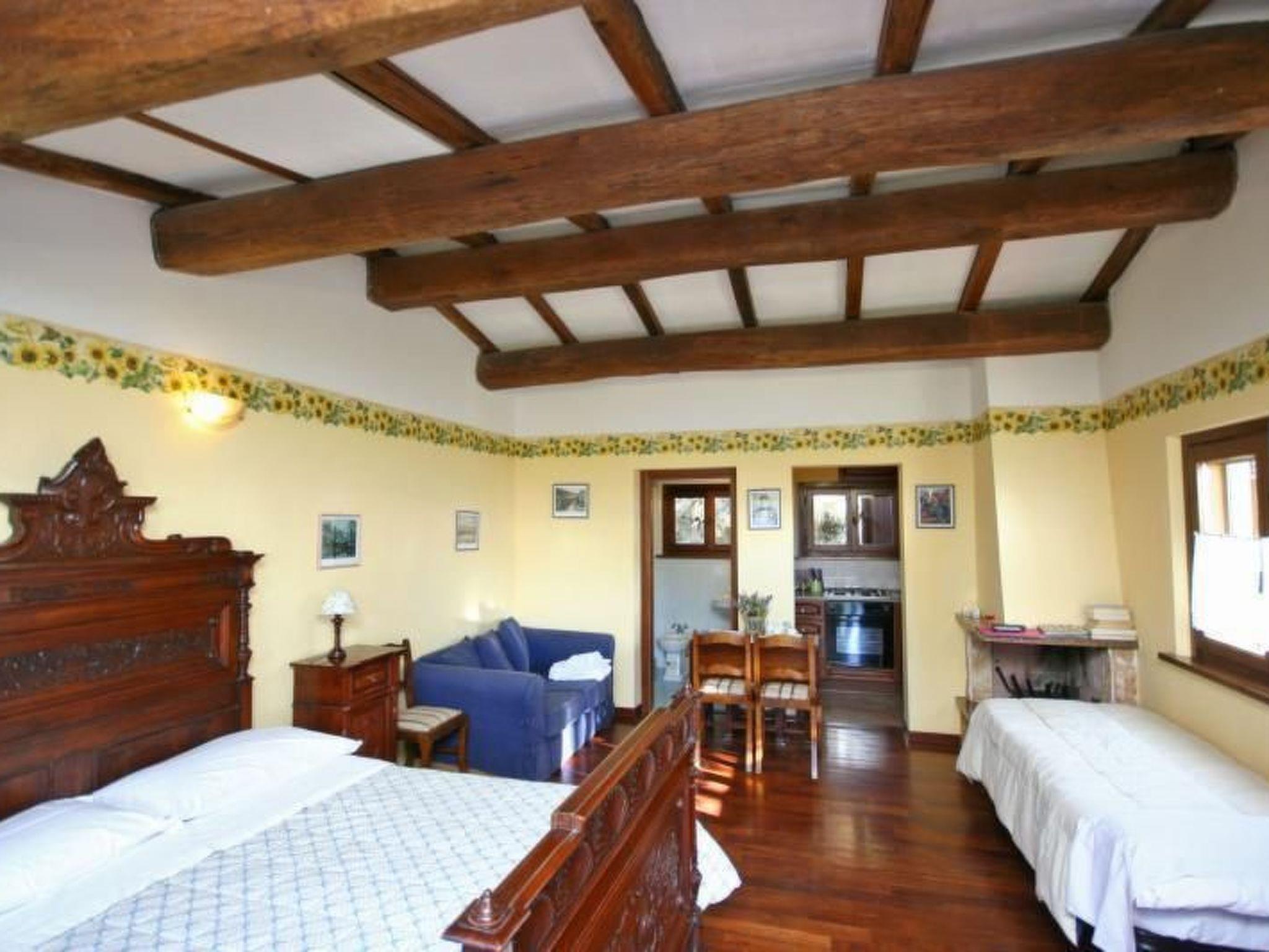 Die Wohnung befindet sich in einem freistehenden Landhaus, das einen vollständig möblierten Garten besitzt. Dort finden Sie Tisch, Stühle und Liegestühle. Von hier aus haben Sie einen wunderschönen Ausblick auf das darunter liegende Tal. Die Wohnung kann bis zu zwei Erwachsene + ein Kind oder weiteren Erwachsenen beherbergen. Je ein Doppel- und Einzelbett mit Holzlattenrost und orthopädischen Matratzen.