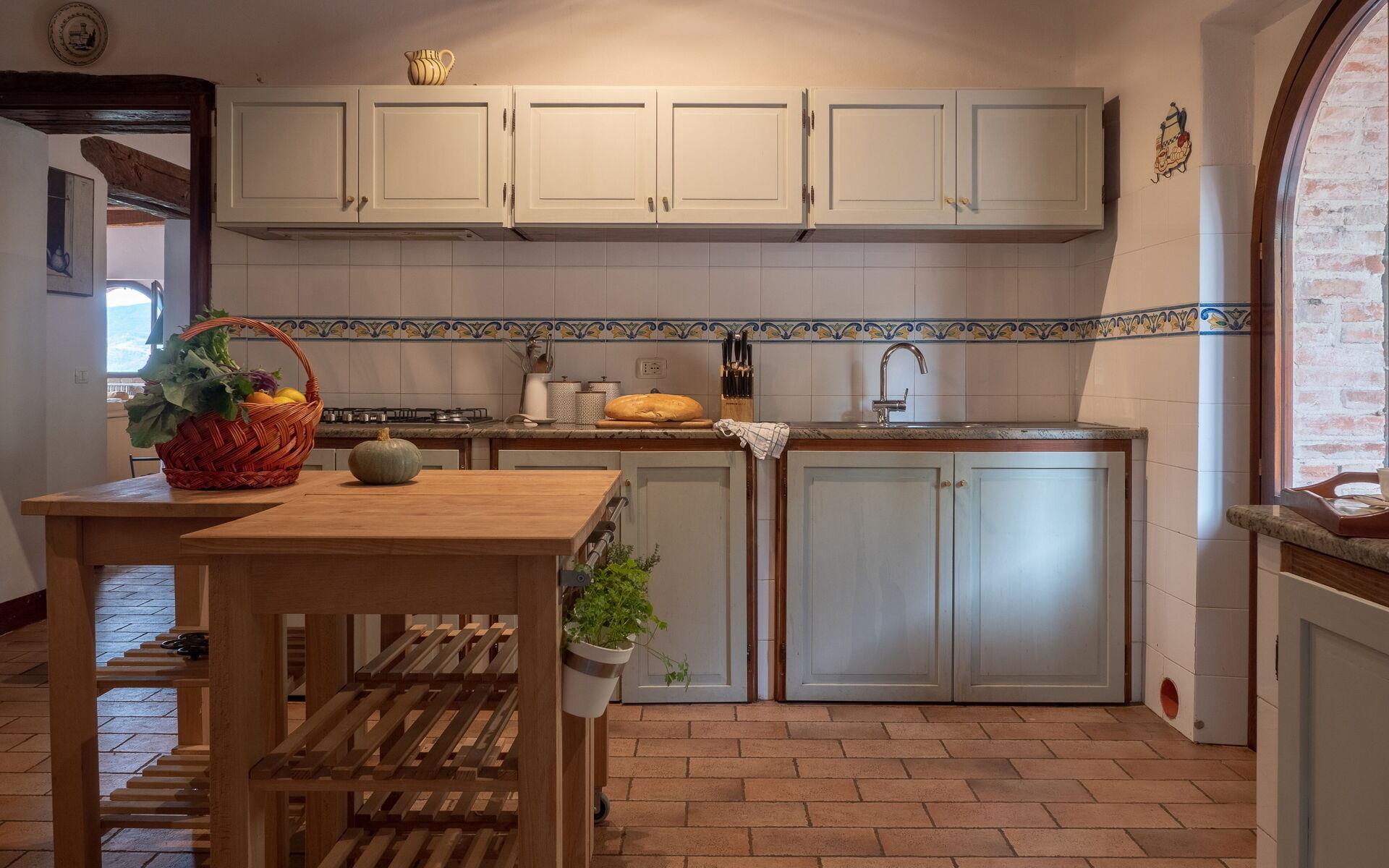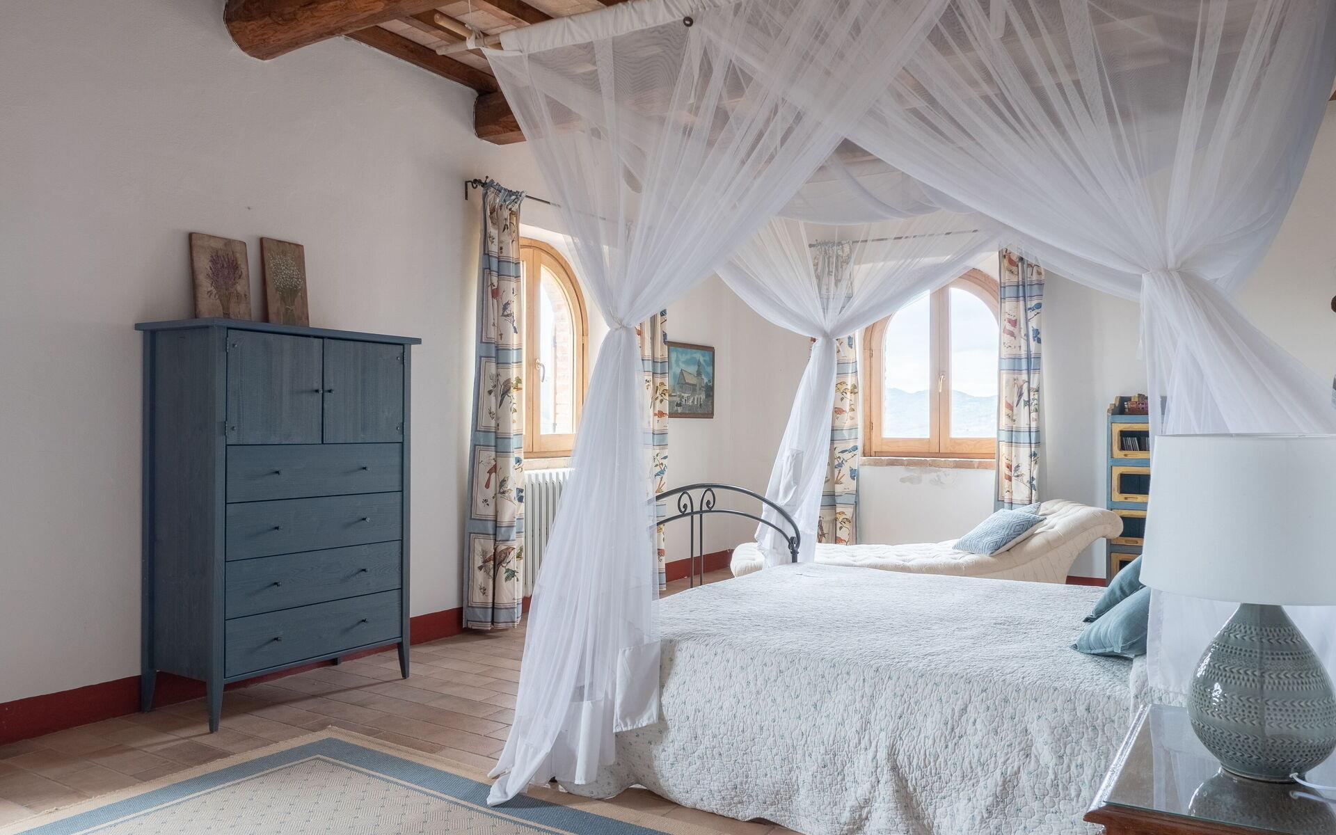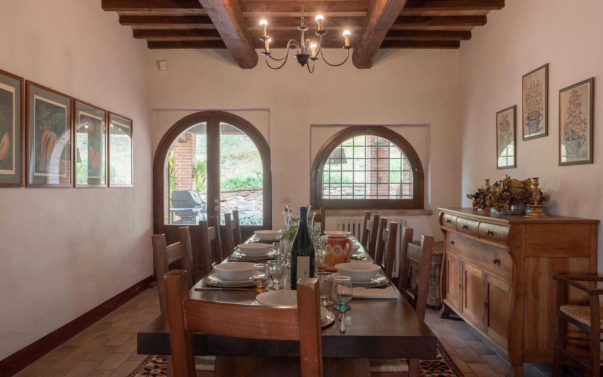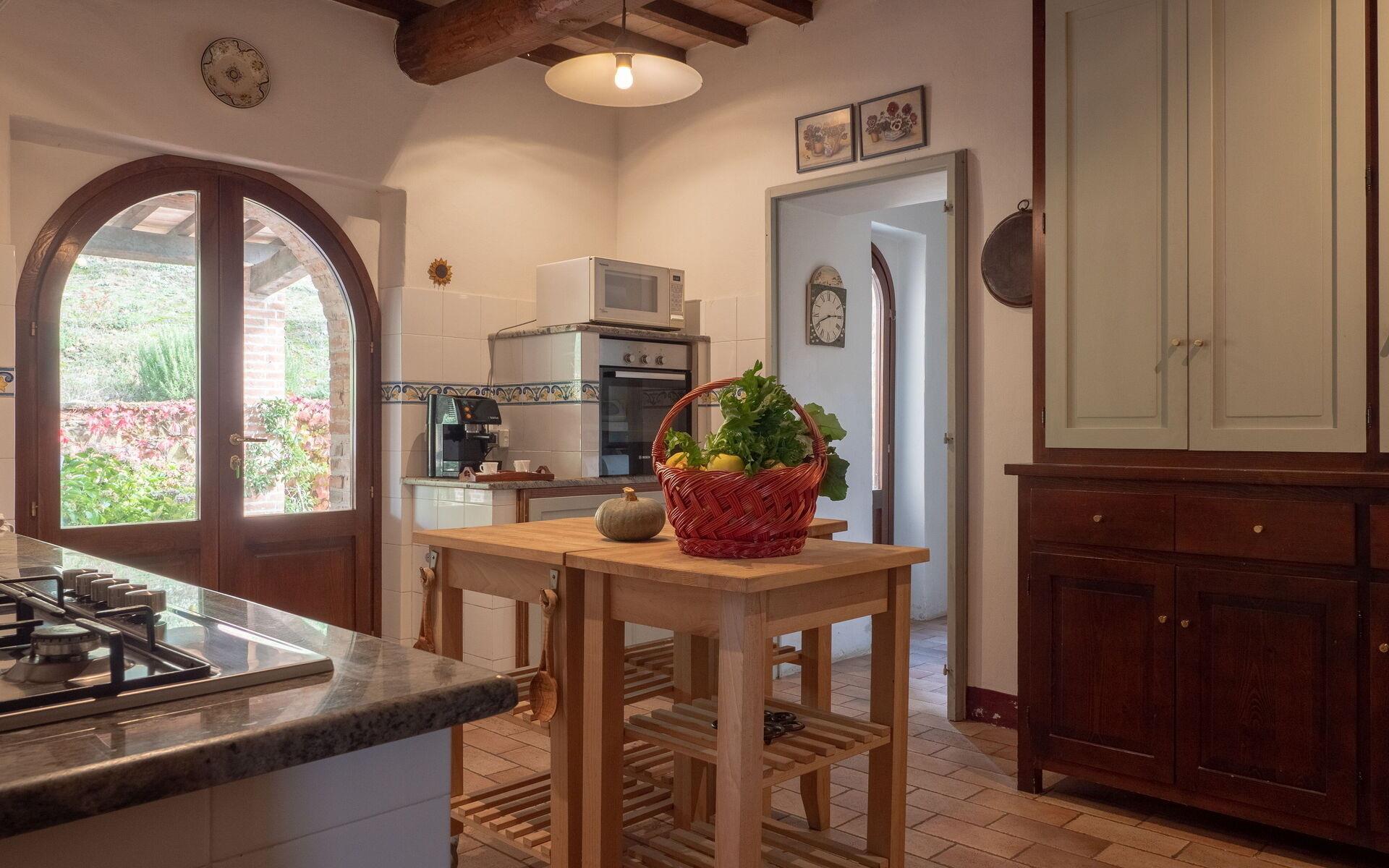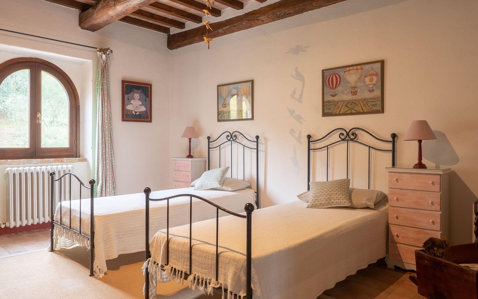 Die Villa San Giovanni verfügt über große und wohnliche Räume und bietet auf 400 Quadratmetern, verteilt auf zwei Etagen, Platz für bis zu 12 Personen. Der Haupteingang führt zu einem großen Wohnbereich mit Sofas, Sesseln und großen Fenstern mit Blick auf den Garten und das Tal, mit direktem Zugang zur Pergola im Außenbereich. Vom Wohnzimmer aus gelangt man in das Fernsehzimmer, in dem der Eckkamin hervorsticht, und in das Esszimmer, das direkt mit der voll ausgestatteten Küche mit Geschirrspüler, Mikrowelle, Kaffeemaschine und Toaster verbunden ist. Beide Bereiche haben direkten Zugang zur Pergola mit Grill, Tisch und Stühlen. Die Etage wird durch ein Arbeitszimmer, das Hauptschlafzimmer mit Doppelbett und eigenem Bad sowie direktem Zugang zum Garten und ein Service-Badezimmer mit Waschküche vervollständigt. Eine interne Steintreppe führt in den ersten Stock, wo ein zentraler Flur 3 Doppelzimmer, ein Badezimmer mit Badewanne, ein Doppelzimmer mit eigenem Bad, in dem ein Einzelbett hinzugefügt werden kann, und ein Doppelzimmer mit eigenem Bad verbindet. Die Villa San Giovanni verfügt über eine kostenlose WLAN-Internetverbindung.