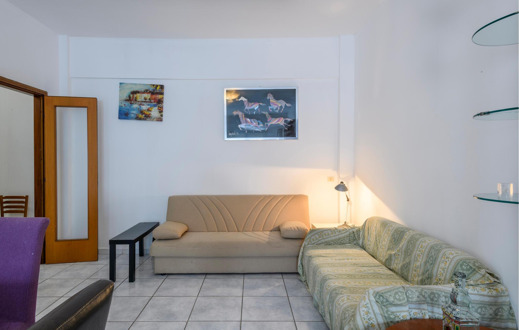 Nur einen kurzen Spaziergang von der Adriaküste entfernt, erwartet Sie Ihre geräumige Ferienwohnung zu einem schönen Urlaub mit Badespaß und jeder Menge interessanter Attraktionen. Ihre Wohnung ist mit allem ausgestattet, was Sie als Ausgangspunkt für Ihren Pescara-Urlaub benötigen. Wachen Sie morgens gut erholt in Ihrer Ferienwohnung auf und genießen Sie die erste Tasse Kaffee ganz gemütlich in der Essküche. Im Wohnbereich können Sie auf den bequemen Sofas zusammenkommen und sich über die Pläne des Tages austauschen.