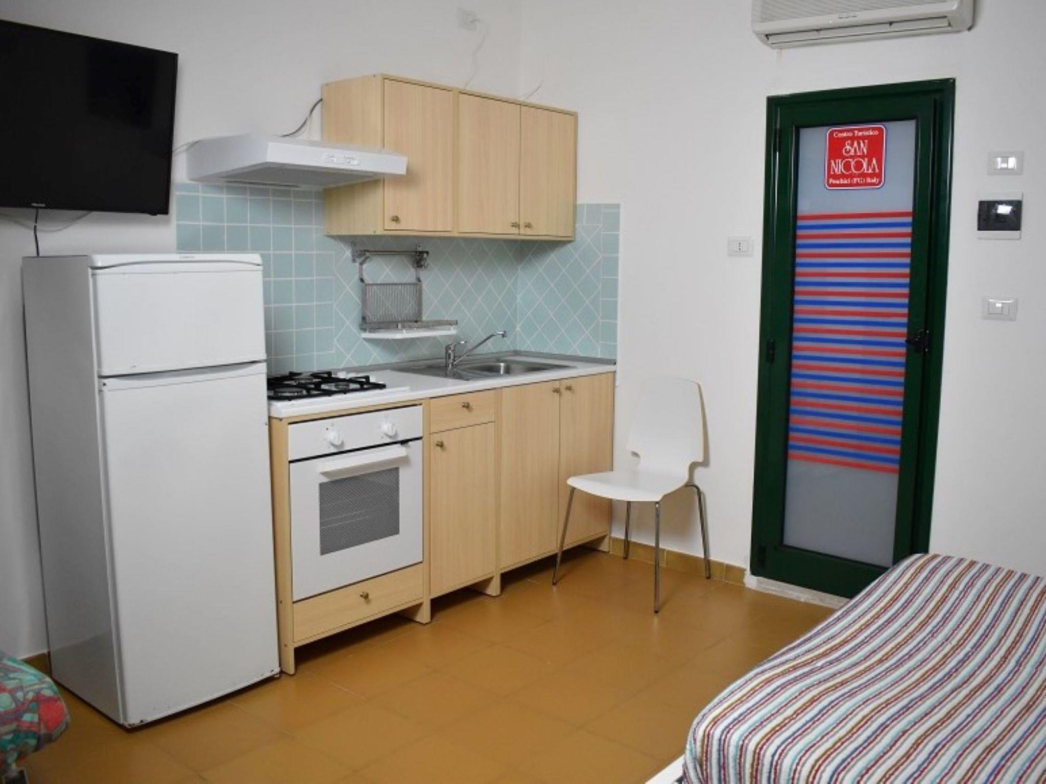 Kinderfreundliches Feriendorf "Centro Turistico San Nicola", umgeben von Bäumen. 45 Häuser im Ferienresort. Im Ortsteil San Nicola, 3.2 km vom Zentrum von Peschici, 22 km vom Zentrum von Vieste, 20 km vom Zentrum von Rodi Garganico, erhöhte Lage, 100 m vom Meer, 100 m vom Strand, direkter Zugang zum Strand. Zur Mitbenutzung: Grundstück 13 ha (eingezäunt) mit Pflanzen und Bäumen. Tennis, Beachvolleyball, Kinderspielplatz. In der Anlage: Restaurant, Einkaufsmöglichkeit, Fahrradverleih. Frühstück Vollpension Halbpension möglich auf Anfrage (extra). Lebensmittelgeschäft 100 m, Supermarkt 2.2 km, Bar 100 m, Bushaltestelle 2 km, Sandstrand 60 m. Nahe gelegene Sehenswürdigkeiten: Parco Nazionale del Gargano, Riserva Naturale della Foresta Umbra 23 km, Termoli 111 km. Bitte beachten: Animation in der Saison. Geeignet für Familien.