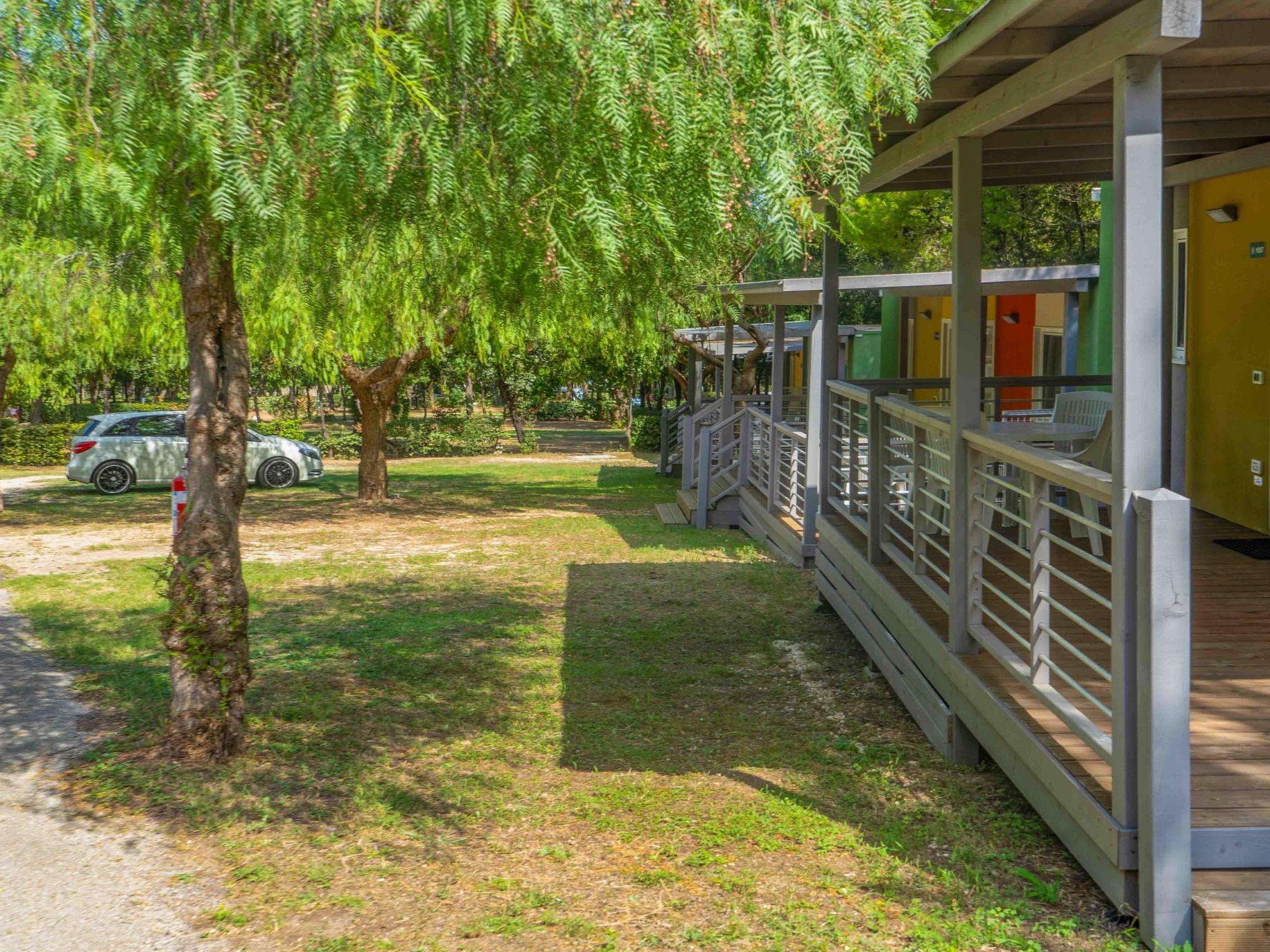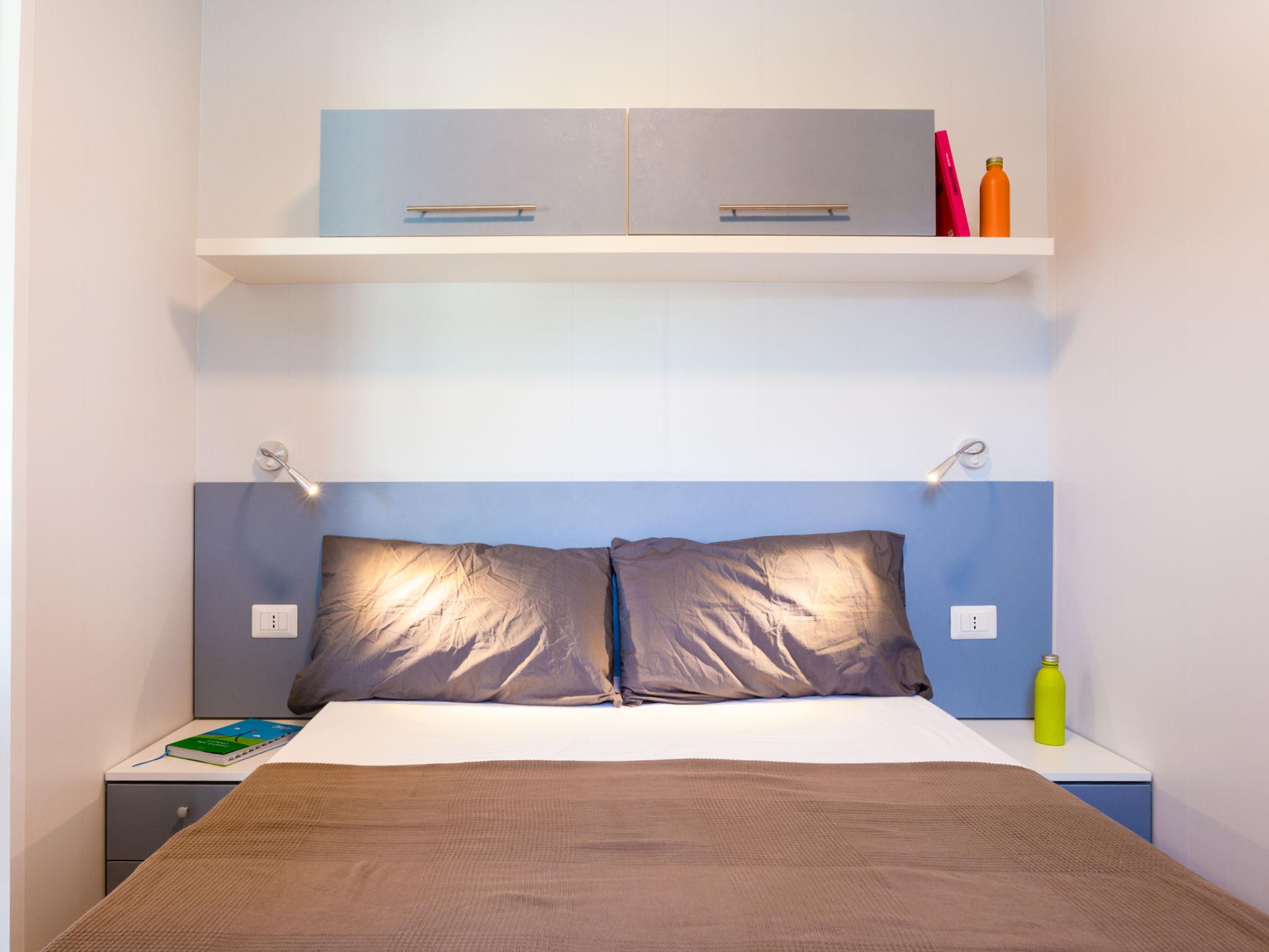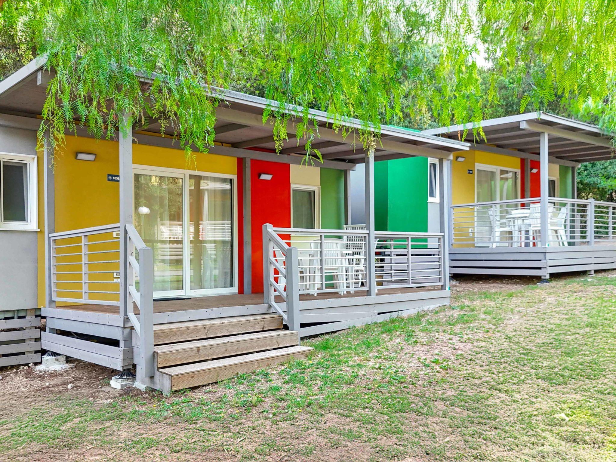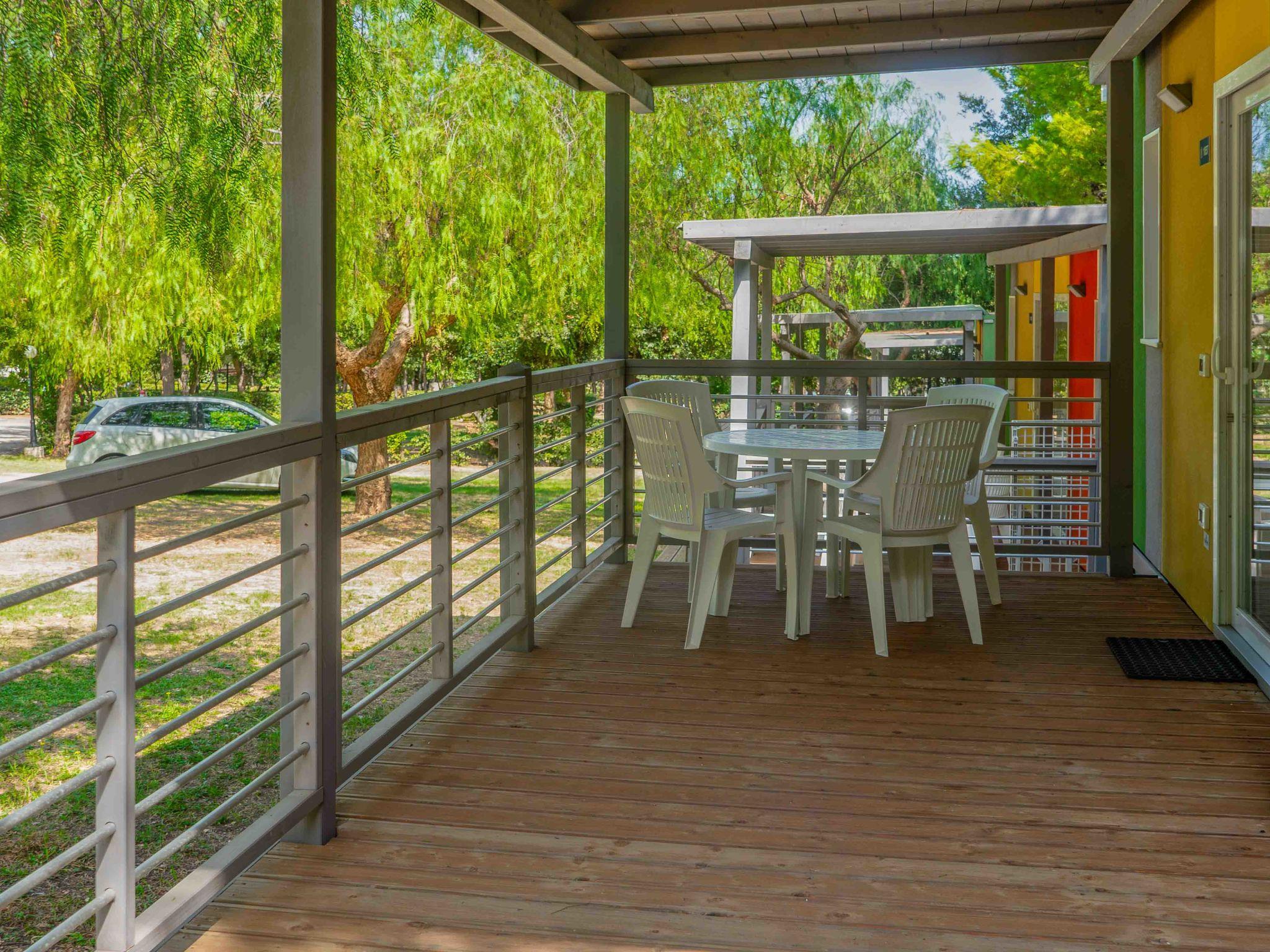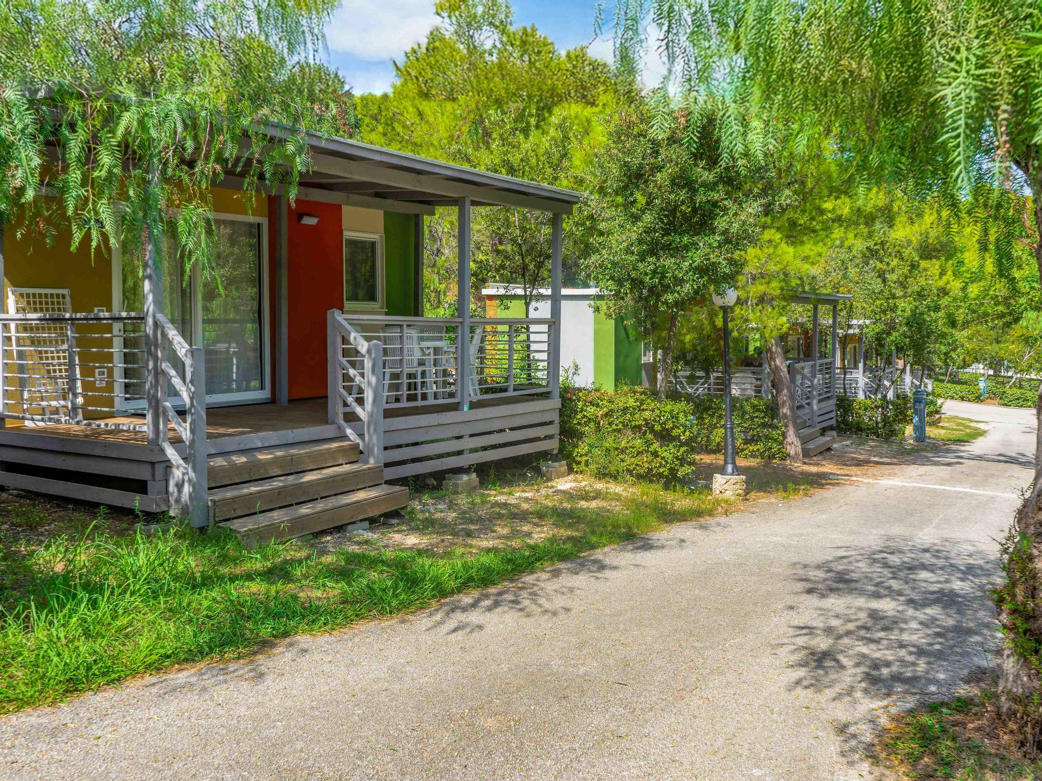 "Baia San Nicola", 3-Zimmer-Mobilheim 24 m2. Modern eingerichtet: Wohn-/Esszimmer mit Sat-TV. 1 Zimmer mit 1 franz. Bett (140 cm). 1 Zimmer mit 2 Betten (70 cm). (4 Flammen, Tiefkühler). Dusche/Bidet/WC. Klimaanlage, Warmluftheizung (extra). Terrasse überdacht. Terrassenmöbel. Parkplatz (1 Auto). Bitte beachten: Nichtraucher-Unterkunft. IT071038B100103452