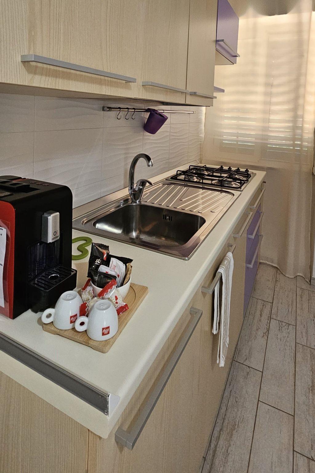 Das Innere der Wohnung zeichnet sich durch Funktionalität und Komfort aus. Der Wohnbereich ist gut organisiert und mit einem bequemen Schlafsofa ausgestattet, auf dem zwei weitere Gäste Platz finden, sowie einem Flachbildfernseher für entspannende Momente. Das Schlafzimmer ist mit einem gemütlichen Doppelbett ausgestattet, das eine ruhige und erholsame Nachtruhe verspricht. Die Einrichtung wird durch eine voll ausgestattete Gasküche mit Kaffeemaschine vervollständigt, in der Sie köstliche Mahlzeiten zubereiten können, als wären Sie zu Hause.