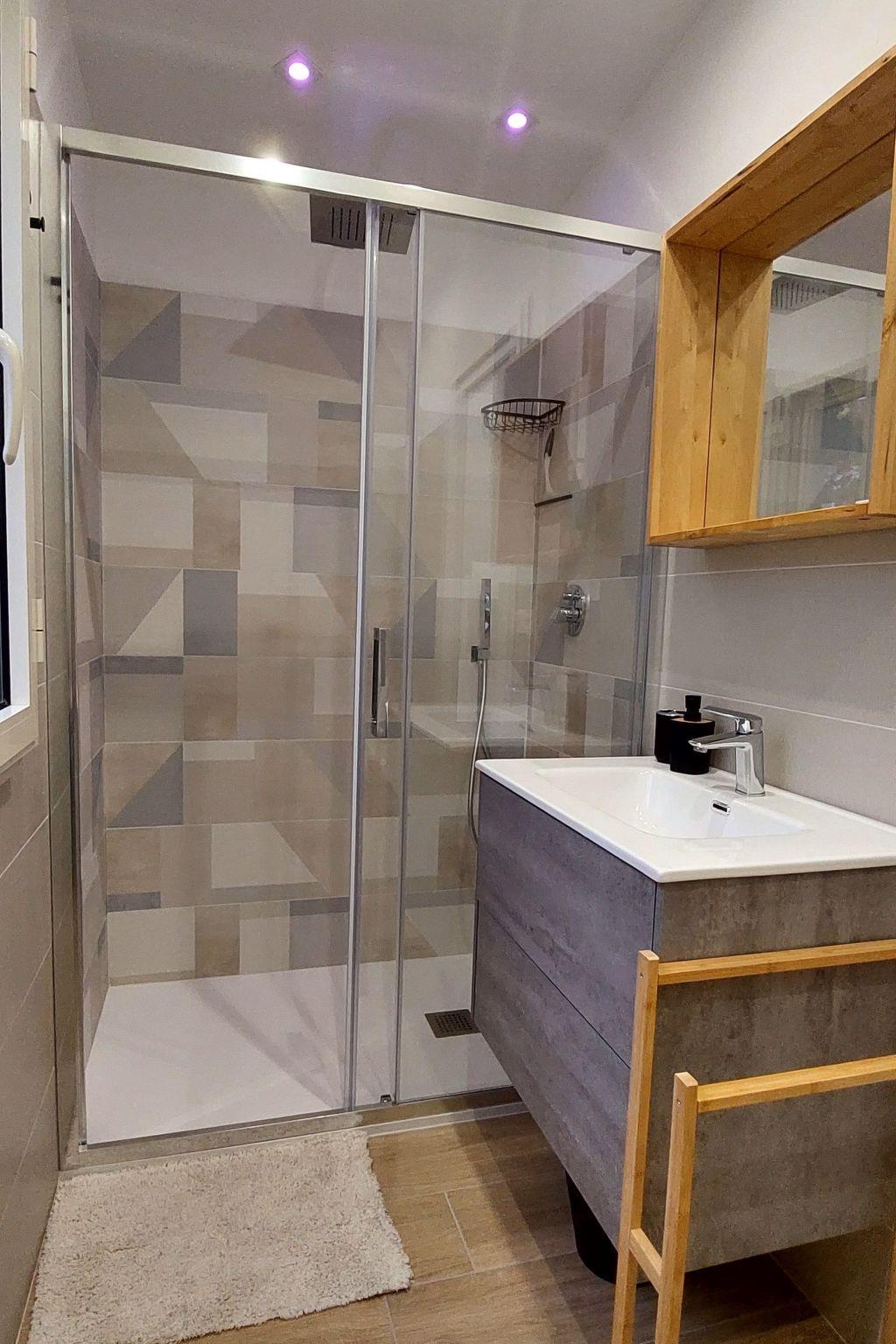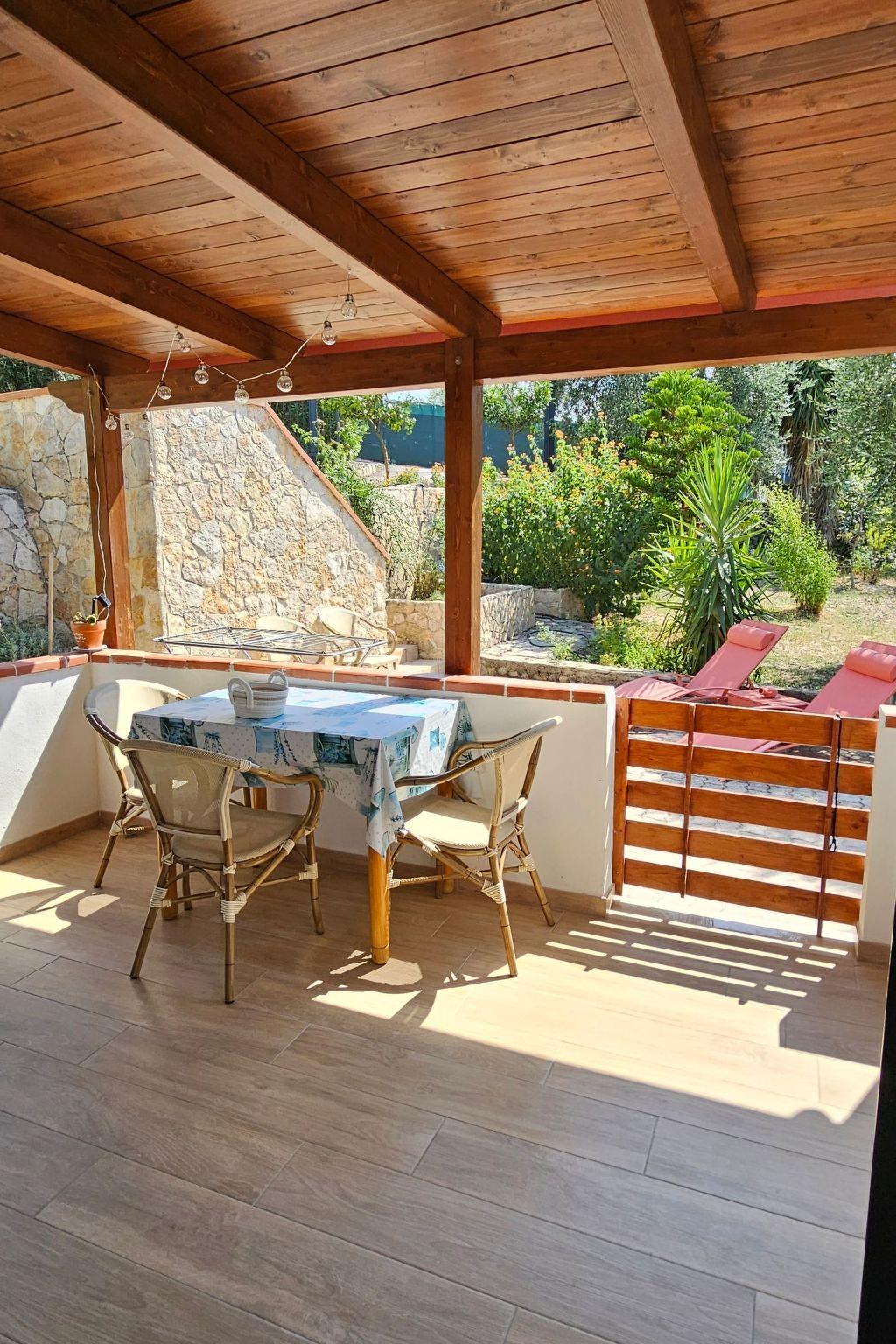 Zweizimmerwohnung bestehend aus: einem Schlafzimmer mit Doppelbett, einer Wohnküche mit Kochnische, TV, einem Badezimmer mit Dusche und einer ausgestatteten Veranda, auf der Sie zu Mittag essen können.