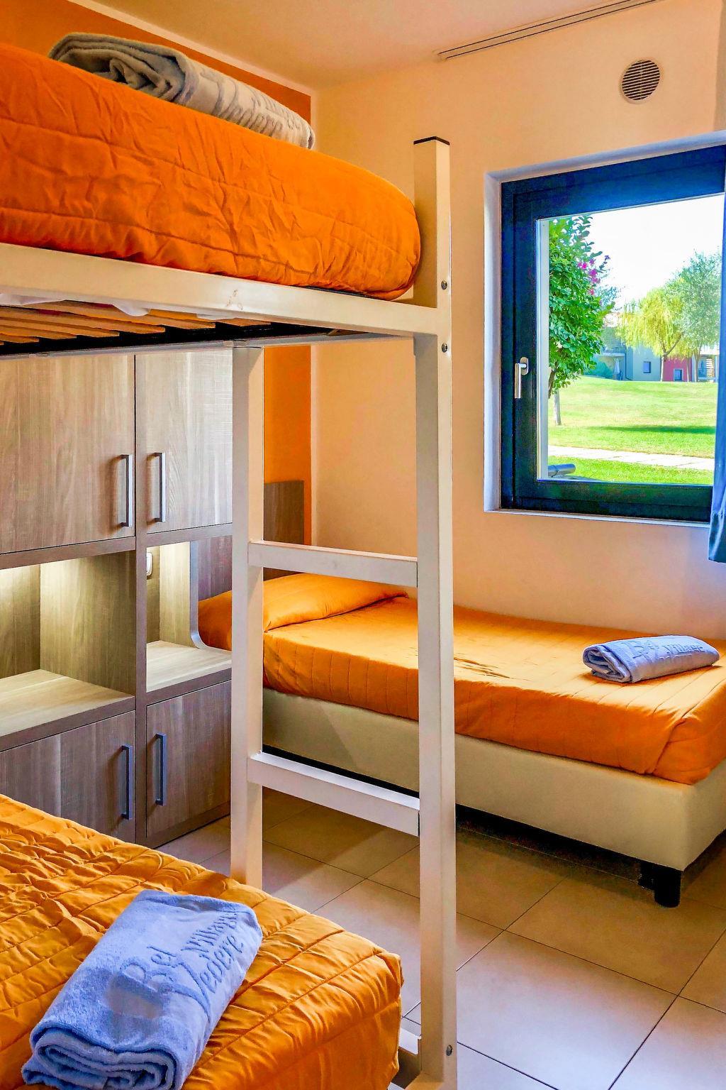 "Belvedere Premium", 3-Zimmer-Wohnung 38 m2, im Erdgeschoss. Modern eingerichtet: Wohn-/Schlafzimmer mit 1 Diwanbett, Esstisch, Sat-TV und Klimaanlage. Ausgang zur Terrasse. 1 Doppelzimmer. 1 Zimmer mit 1 Bett und 1 x 2 Etagenbetten. Offene Küche (Geschirrspüler, 4 Flammen, Mikrowelle, Tiefkühler, elektrische Kaffeemaschine). Dusche/WC. Klimaanlage, Warmluftheizung. Terrasse 7 m2. Terrassenmöbel, Liegestühle (2). Sicht auf das Schwimmbad und den Garten. Zur Verfügung: Safe, Haartrockner. Parkplatz beim Haus. Bitte beachten: Nichtraucher-Unterkunft. Es werden keine zusätzlichen Gebühren vor Ort fällig, ausgenommen der örtlichen Kurtaxe. Bettwäsche, Handtücher, Endreinigung und alle Energiekosten sind inkludiert. IT023022B4CQWYAERW
