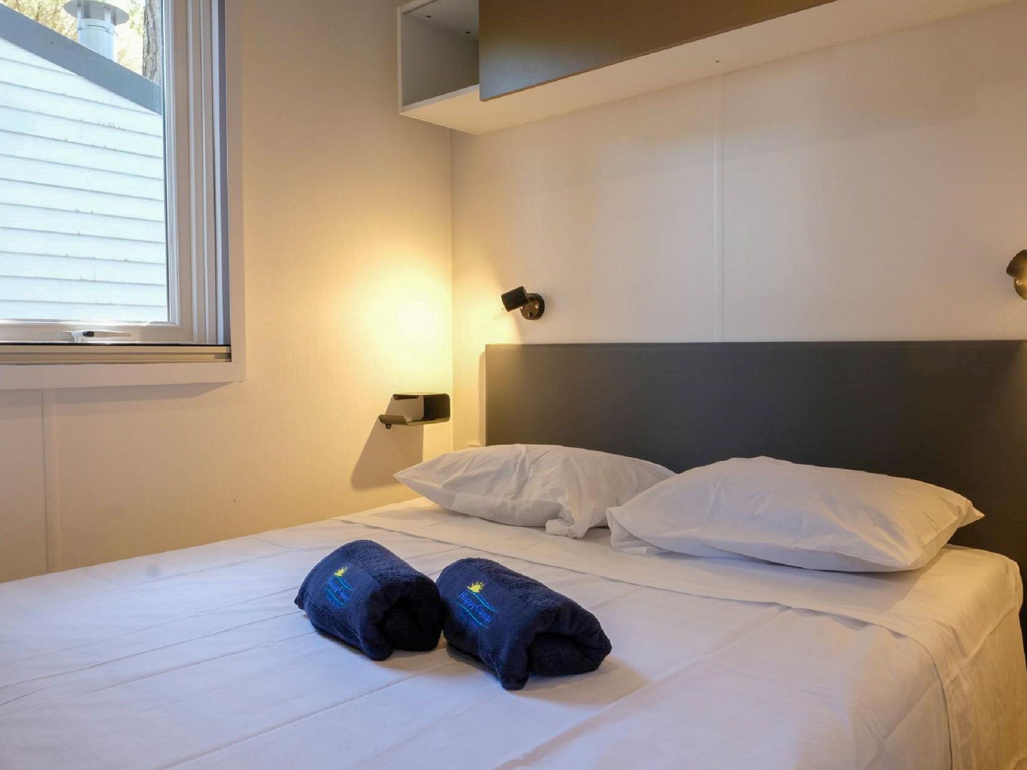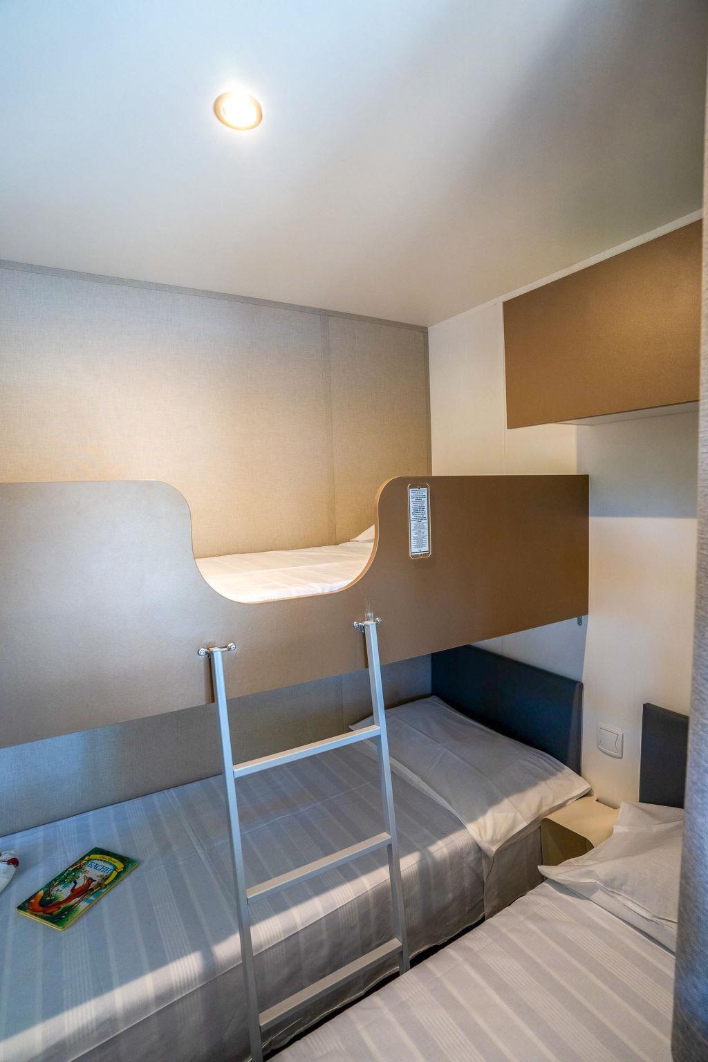 "Happy Relax", 3-Zimmer-Mobilheim 25 m2. Objekt geeignet für 4 Erwachsene + 1 Kind. Zweckmässig eingerichtet: Wohn-/Esszimmer mit E-Heizung und Klimaanlage. 1 Zimmer mit 1 franz. Bett (140 cm, Länge 190 cm). 1 Zimmer mit 1 x 2 Etagenbetten (70 cm, Länge 190 cm), 1 Ausziehbett (1 Pers. Länge 175 cm). Offene Küche (4 Kochplatten). Dusche/WC. Klimaanlage (extra). Terrasse teilweise überdacht. Terrassenmöbel, Elektrogrill (mobil), Liegestühle (2). Parkplatz (1 Auto), Garage. Bitte beachten: Nichtraucher-Unterkunft. IT023059B1N99WJV2I