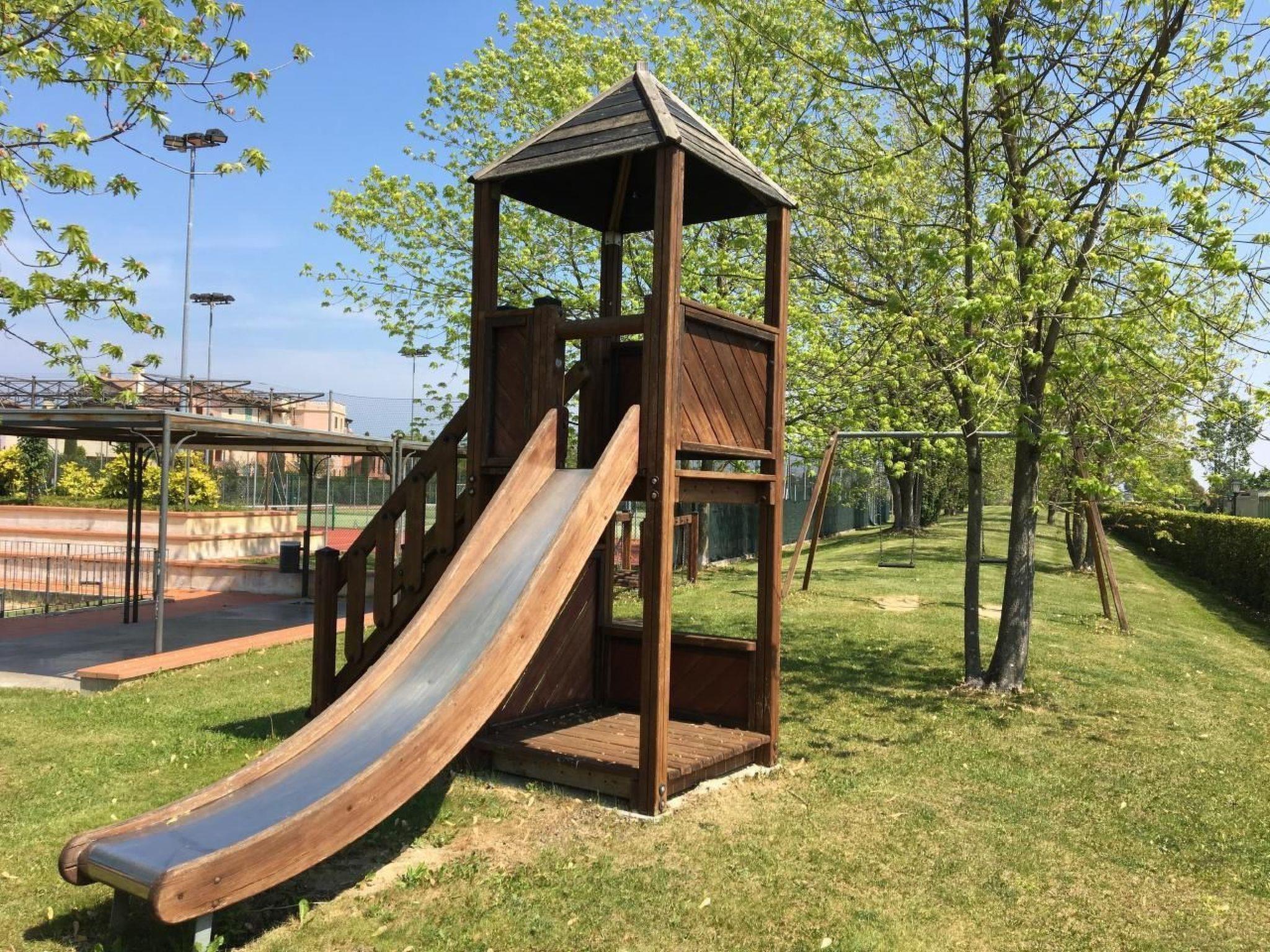Es gibt auch Sportplätze wie Tennis, Padel, Fußball, Beachvolley und Boccia; ein 50m langes olympisches Schwimmbecken und für die Kleinen gibt es einen Spielplatz und ein Babybecken.