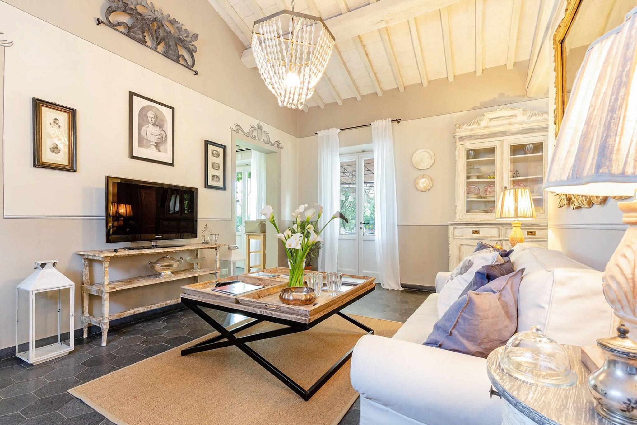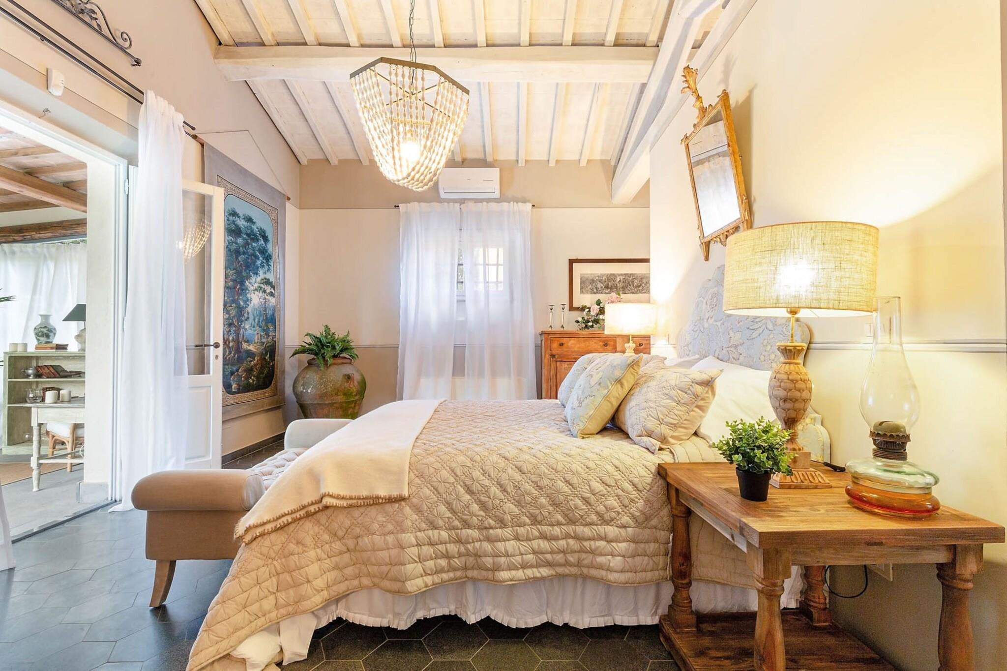 Entfliehen Sie dem Alltag in ein charmantes Bauernhaus, nur einen kurzen Spaziergang vom Dorf Pescia entfernt, wo Romantik und Entspannung mühelos miteinander verschmelzen. Umgeben von duftenden Zypressen und Olivenbäumen bietet das Anwesen terrassenförmig angelegte Gärten, die eine ruhige Atmosphäre schaffen, ideal zum Entspannen nach einem erlebnisreichen Tag. Im Inneren besticht die wunderschön eingerichtete Landhausküche durch traditionelle Möbel und edle Terrakottawände, während das gemütliche Wohnzimmer mit Kunstwerken und Antiquitäten zum stilvollen Entspannen einlädt. Ein luxuriöses Schlafzimmer mit Kingsize-Bett und eigenem Bad sowie eine atemberaubende Veranda mit Blick auf den üppigen Garten runden diesen herrlichen Rückzugsort ab. Der Außenbereich ist ebenso bezaubernd: Die geräumige Veranda, die sowohl von der Küche als auch vom Wohnzimmer aus zugänglich ist, eignet sich perfekt zum Essen und Entspannen im Freien. Eine Holzbrücke führt zu einem erfrischenden Swimmingpool, eingebettet in üppiges Grün und duftende Blumen – eine idyllische Kulisse, um die toskanische Sonne zu genießen. Für alle, die ein kulinarisches Abenteuer suchen, organisiert die charmante Gräfin Letizia, die auf dem Anwesen einer antiken Villa residiert, gerne köstliche Kochkurse und kulinarische Erlebnisse bei Ihnen zu Hause. Dieses vollklimatisierte Bauernhaus ist mit zuverlässigem WLAN und einer Küche mit einer großen Auswahl an Kochutensilien und Geräten ausgestattet und somit ein Paradies für Feinschmecker. Genießen Sie gemütliche Spaziergänge durch duftenden Lavendel und Eichen mit weitem Blick auf den Garten, der die bezaubernde Atmosphäre dieses toskanischen Refugiums unterstreicht. Perfekt für Paare oder Familien – dieser idyllische Rückzugsort verspricht einen unvergesslichen Urlaub im romantischen Charme der italienischen Landschaft. Hinweis: Kurtaxe ist vor Ort zu entrichten.