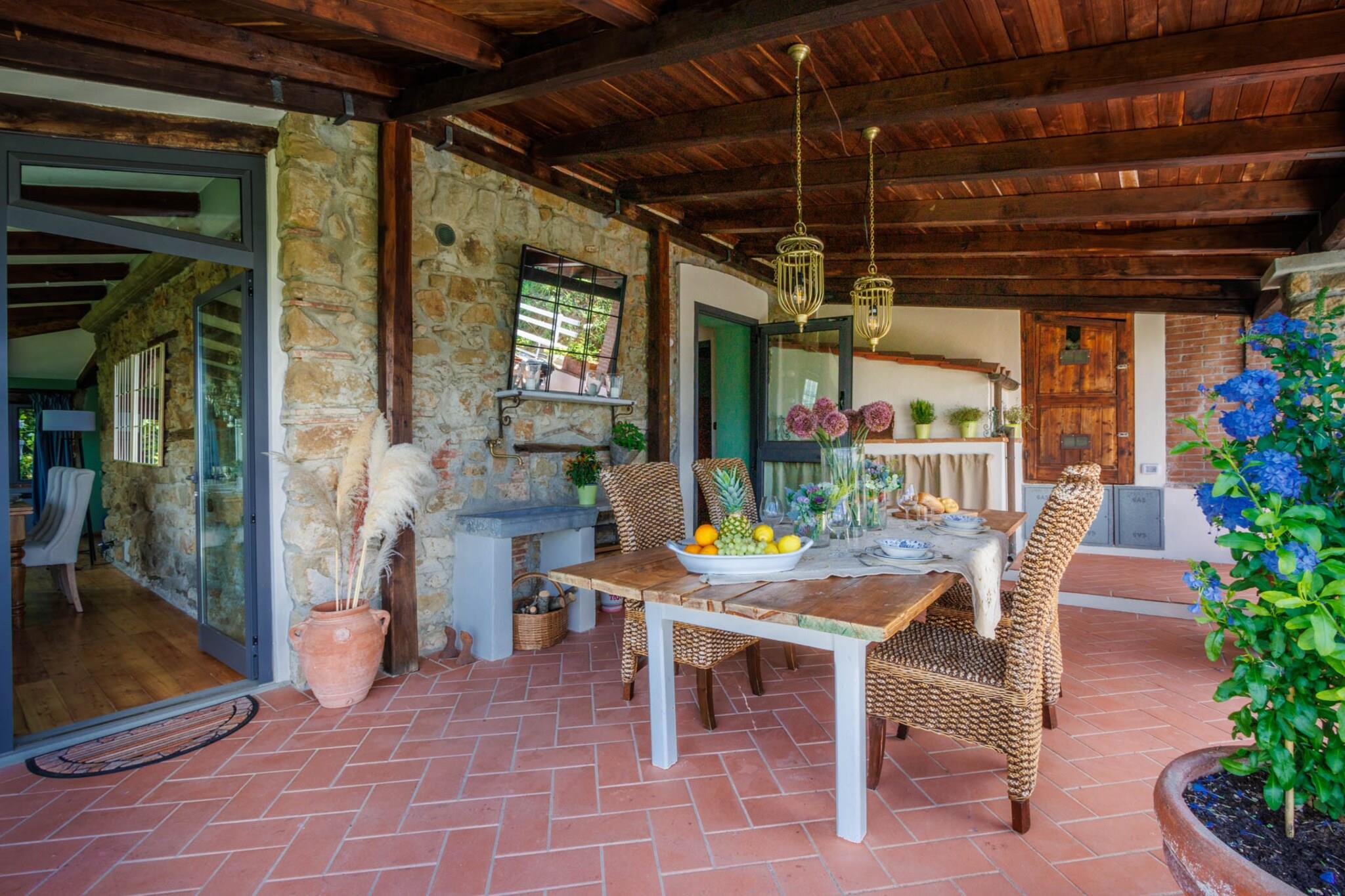 Von der sonnigen Terrasse dieser charmanten Villa, perfekt gelegen inmitten von Olivenhainen, eröffnet sich ein Blick auf das pulsierende Städtchen Pescia und die üppige toskanische Weinlandschaft. Nur 15 Autominuten entfernt finden Sie reizvolle lokale Märkte, Weinhandlungen, Bäckereien, Eisdielen und eine mittelalterliche Stadt mit einigen der schönsten Bauwerke der Toskana. Die bezaubernde Umgebung lädt Sie ein, die Aromen der Region zu entdecken und Ihr Erlebnis in dieser malerischen italienischen Landschaft zu bereichern. Betreten Sie ein wunderschön gestaltetes Interieur, in dem moderner Stil auf rustikalen Charme trifft. Hohe Balkendecken und beständige Steinmauern werden durch polierte Holzakzente und luxuriöse Möbel ergänzt und schaffen eine helle und luftige Atmosphäre. Großzügige Glaswände durchfluten den offenen Raum mit natürlichem Licht und bringen das moderne Dekor und die lebendigen Akzente des Hauses zum Leuchten. Stellen Sie sich vor, Sie beginnen den Tag mit einer frisch gebrühten Tasse Kaffee auf der geschützten Terrasse, umgeben von wiegenden Oliven- und Obstbäumen, oder genießen ein köstliches Essen im Freien mit einer Flasche Wein aus der Region bei Sonnenuntergang. Um dieses ruhige Refugium zu erreichen, müssen Sie eine schmale, bergauf führende Straße befahren, die besonders nach Einbruch der Dunkelheit für nervöse Fahrer eine Herausforderung darstellen kann. Doch die Fahrt lohnt sich, denn Sie erreichen diese Oase der Ruhe. Aufgrund der Aufteilung des Hauses und seiner natürlichen Umgebung ist das Anwesen möglicherweise nicht ideal für Familien mit kleinen Kindern. Die durchdacht gestalteten Räume umfassen einen geräumigen Wohnbereich im Erdgeschoss, eine Küche mit Zugang zu einer Veranda und zwei gemütliche Schlafzimmer im ersten Stock. Genießen Sie die einladende Natur Ihrer Umgebung, aber seien Sie sich bewusst, dass freundliche Katzen aus der Nachbarschaft gelegentlich zu Besuch kommen und den Charme Ihres toskanischen Urlaubs teilen. Hinweis: Kurtaxe ist vor Ort zu entrichten.