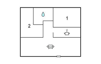 Badezimmer (nr. 1) - WC. Warmes und kaltes Wasser. Dusche