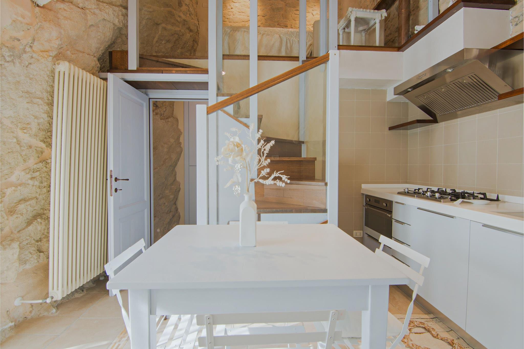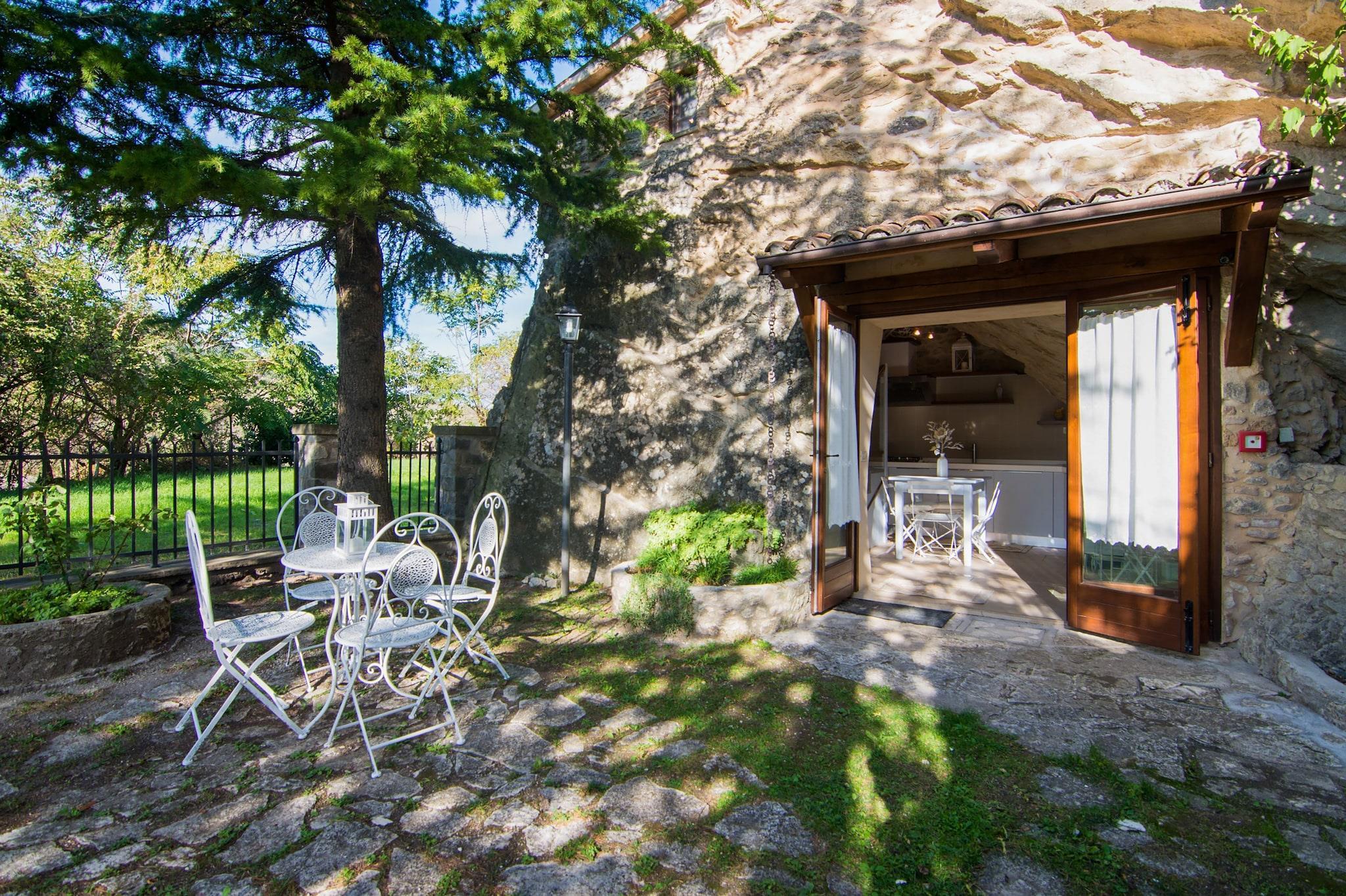 Dieses charmante Haus ist nicht nur ein Feriendomizil – es ist ein Stück lebendiger Geschichte. Das über Generationen vererbte Anwesen war einst Teil einer alten Burg. Frau Marinelli, die es von ihrem Vater erbte, ließ es 2013 sorgfältig restaurieren. Ihr Ziel war es, die Seele und Authentizität des Ortes zu bewahren und ihren Gästen gleichzeitig modernen Komfort zu bieten. Jeder Stein erzählt eine Geschichte, und jeder Winkel spiegelt die Noblesse und stille Erhabenheit seiner mittelalterlichen Vergangenheit wider. In die Felswand eingebettet und auf dem Gipfel des Hügels im malerischen Dorf Petrella Guidi gelegen, bietet das Haus – liebevoll „La Grotta“ genannt – eine seltene Gelegenheit, in die Vergangenheit zu reisen. Umgeben von den sanften Hügeln des Apennins und mit Blick auf das wunderschöne Montefeltro-Tal und sogar San Marino, ist die Lage friedlich, fast magisch. Die Stille, die Aussicht und das Gefühl, in Geschichte versunken zu sein, machen diesen Ort zu einem unvergesslichen Rückzugsort. Nur einen kurzen Spaziergang entfernt bietet der Alte Turm einen unvergesslichen Panoramablick, und das Dorf selbst ist ein idealer Ausgangspunkt, um die kulturellen Schätze der Region zu entdecken. Zu seinem Charme trägt auch bei, dass Gäste frisches Obst aus dem nahegelegenen Obstgarten genießen können, der Frau Marinelli persönlich gehört. Und wer mit Haustieren reist, ist herzlich willkommen. Wie Frau Marinelli sagt: „Ein Aufenthalt hier ist wie eine Zeitreise, umgeben von den sanften Hügeln des Apennins.“
