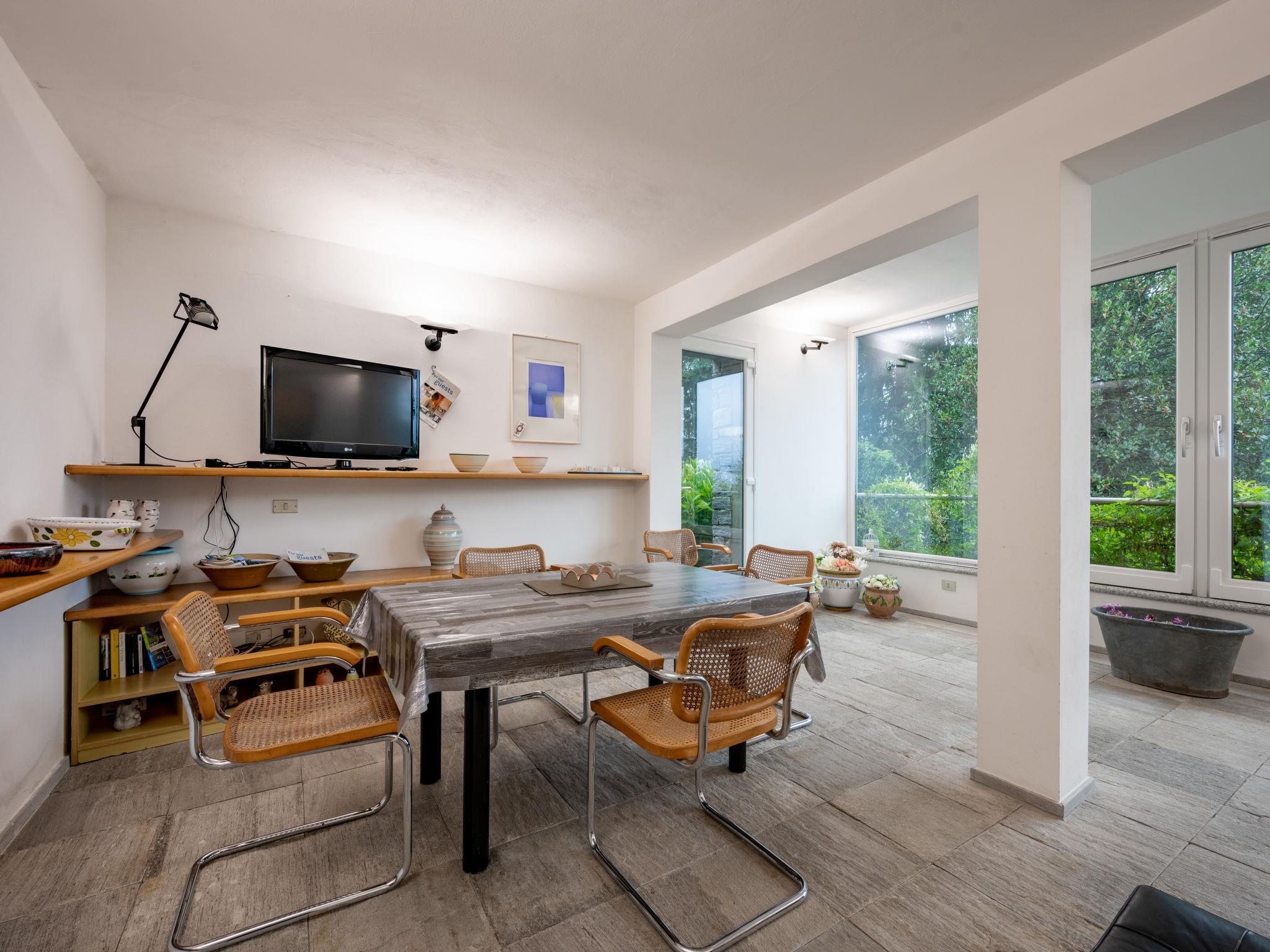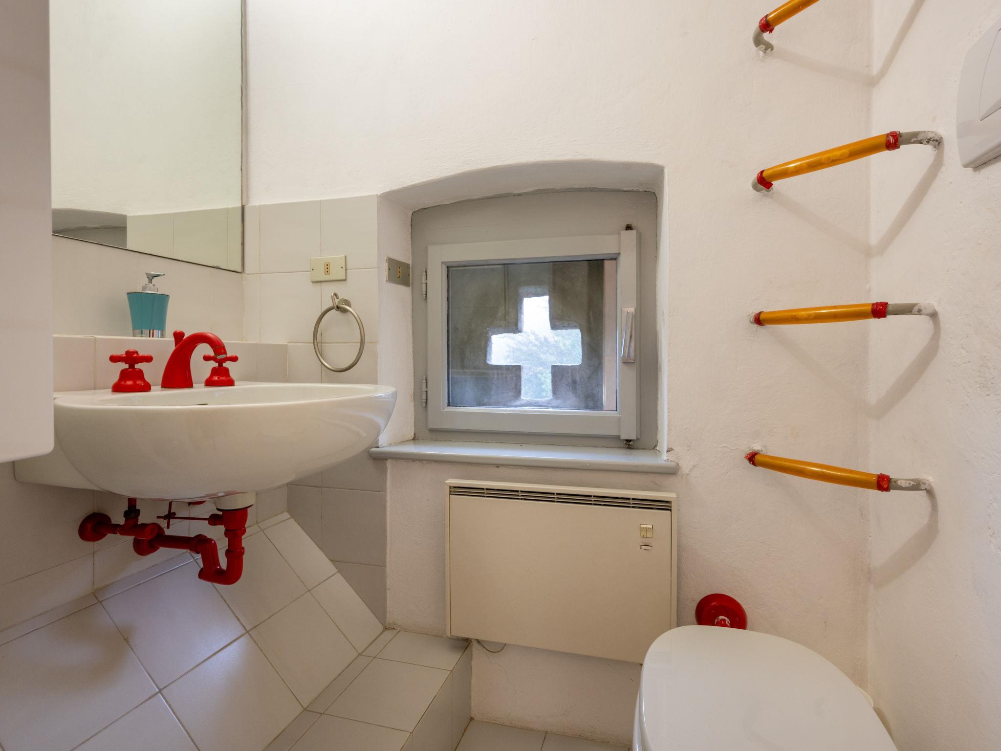 3-Zimmer-Haus 70 m2 auf 3 Stockwerken. Zweckmässig eingerichtet: Wohn-/Esszimmer mit Panoramafenster. Ausgang zum Gartensitzplatz. Offene Küche (4 Kochplatten, Backofen, Geschirrspüler) mit offenem Kamin (nur Deko). Bad/Bidet/WC. Obergeschoss: 1 offenes Zimmer mit 1 x 2 Etagenbetten. 2. Obergeschoss: 1 abgeschrägtes Doppelzimmer, ohne Schrank mit sep. WC. E-Heizung, G-Heizung (extra). Heizung nur verfügbar von 15.10. bis 15.04. Gartensitzplatz 8 m2. Balkonmöbel. Sicht auf den See und die Berge. Zur Verfügung: Waschmaschine, Babybett bis 2 Jahre (extra). Bitte beachten: Rauchmelder, Feuerlöscher. Das Zimmer mit Etagenbett verfügt über ein Fenster mit Blick auf ein natürliches Wasserbecken mit Wasserpflanzen. Zugang zum Doppelzimmer (mit Spannteppich) über das Zimmer mit Etagenbett. Erdgeschoss mit Steinboden. 2 Wände im Wohnzimmer sind aus Glas. IT003116C2GTRBPVDR