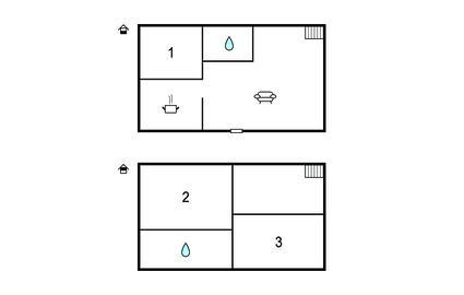 Badezimmer (nr. 2) - WC. Warmes und kaltes Wasser. Dusche