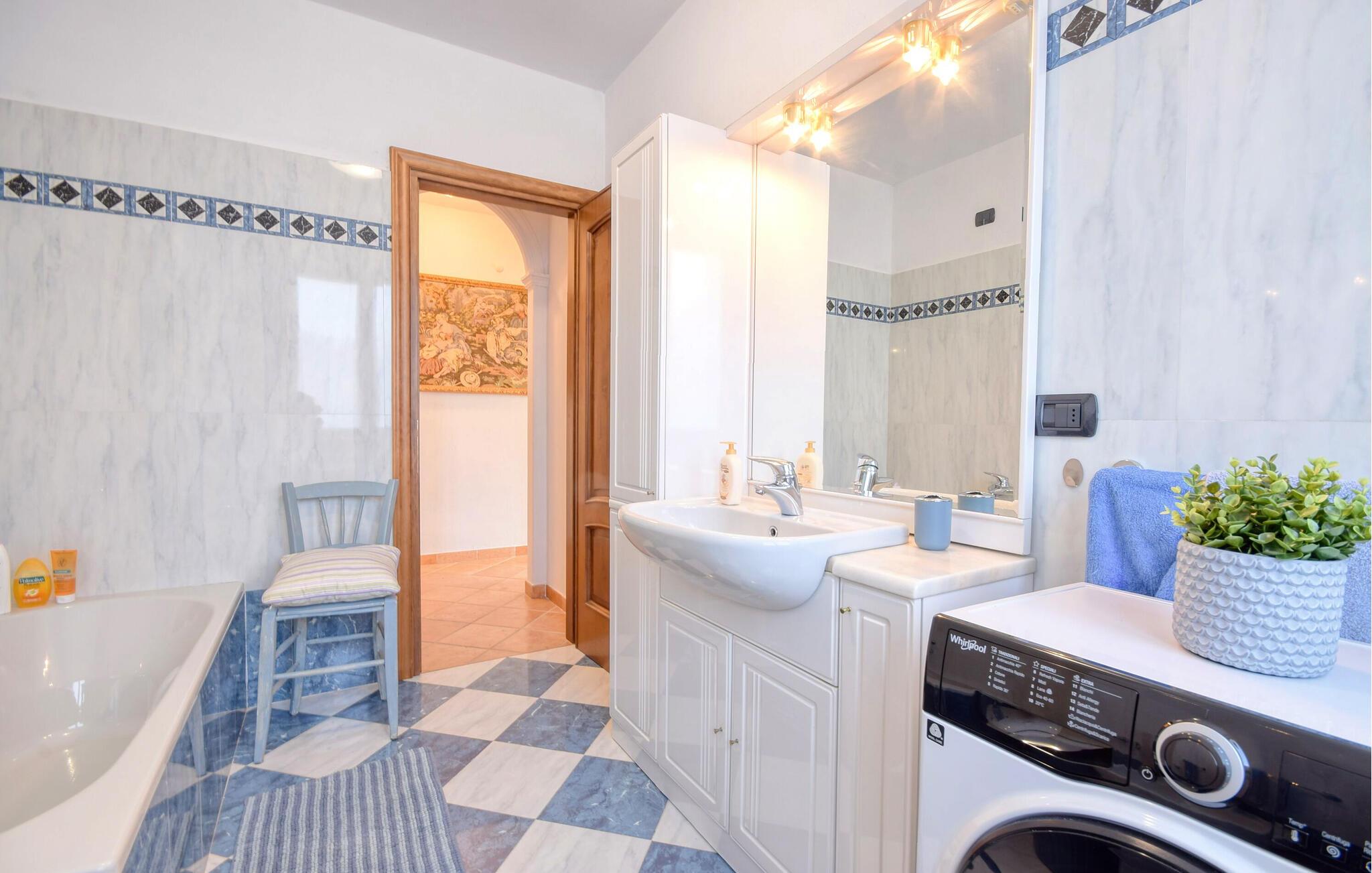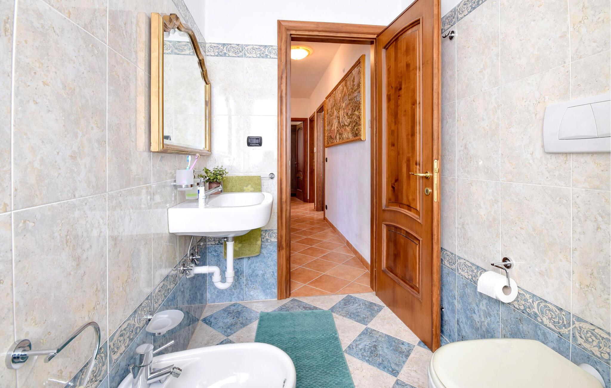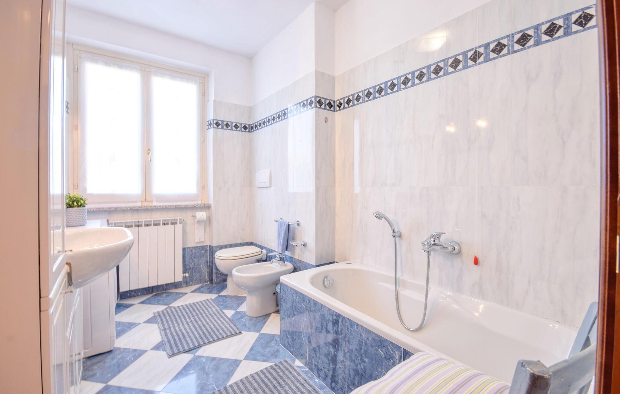 - WC mit warmem und kaltem Wasser, Badewanne