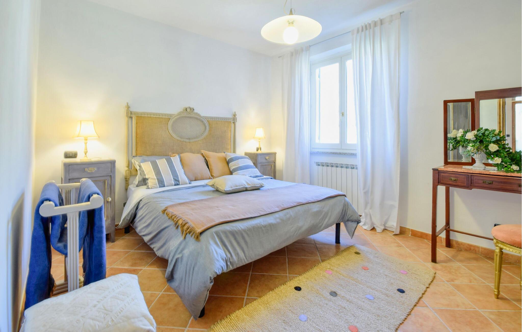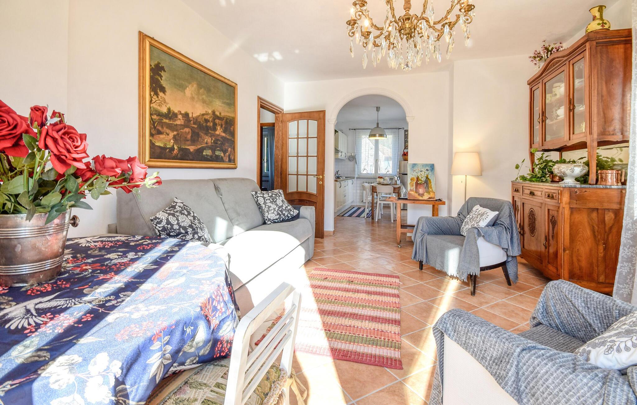 Verbringen Sie eine erholsame Zeit inmitten ruhiger Natur und entdecken Sie das einladende Ambiente dieses liebevoll gestalteten Ferienhauses. Genießen hier das schöne Gefühl von ländlicher Abgeschiedenheit. Machen Sie es sich im klassisch eingerichteten Wohnbereich gemütlich, der mit warmen Farben, antiken Möbeln und liebevollen Details ausgestattet ist. Entspannen Sie in einem der Sessel oder auf dem bequemen Sofa, während durch die geöffneten Fenster die Sonne ins Zimmer fällt. Bereiten Sie in der hellen Küche ein typisches italienisches Frühstück zu und genießen Sie dieses am einladenden Esstisch.