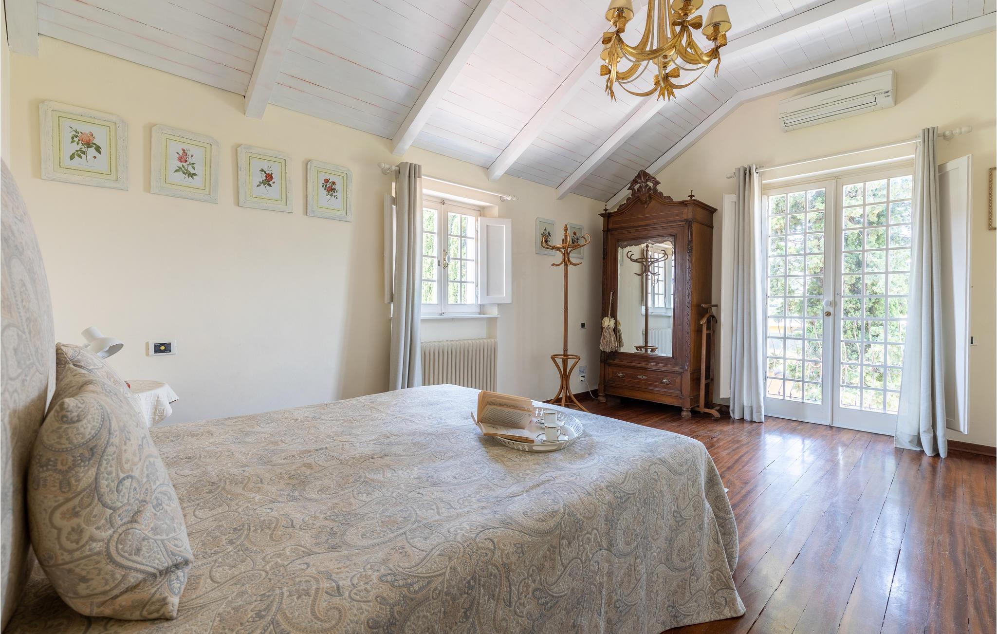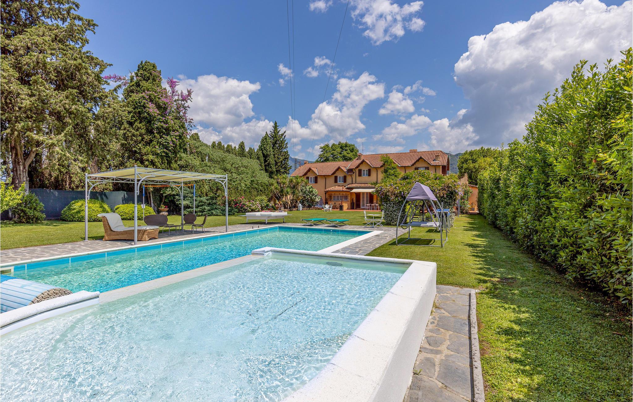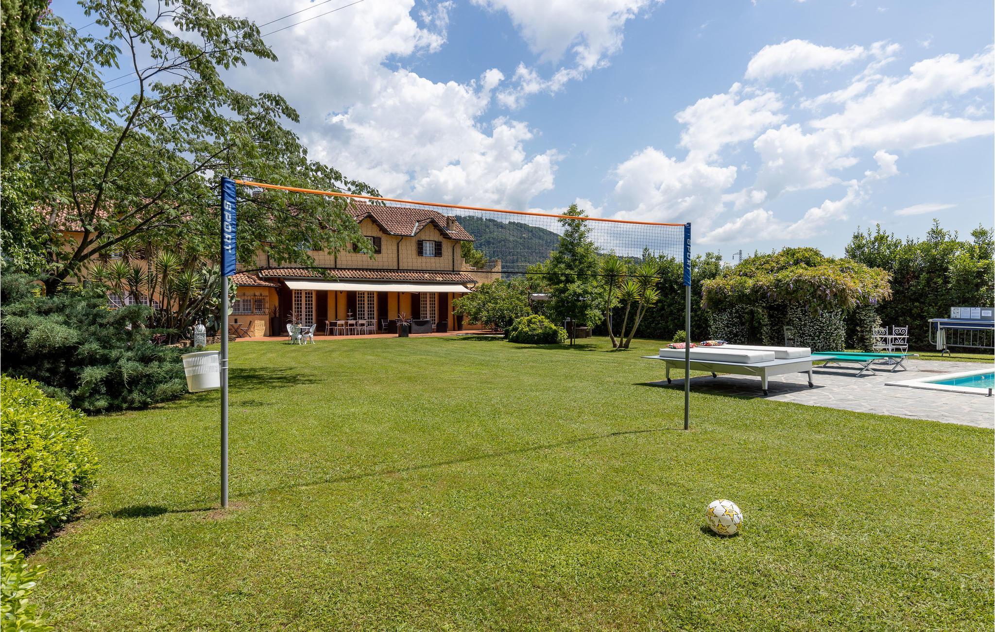 Diese geräumige Ferienvilla mit Privatschwimmbad und angrenzendem Kinderpool ist auf zwei Ebenen verteilt und hat ein ca. 3000 m2 großes Gartengrundstück, das komplett eingezäunt und auf den vier Seiten des Hauses verteilt ist. Der Außenbereich ist mit Holzofen, Grill, Tischen, Stühlen und Sonnenschirm ausgestattet und ist ideal um im Freien zu essen. Die Unterkunft befindet sich in Piano di Mommio, ist jedoch nur 5 km von den Stränden der Versilia entfernt gelegen. Weitere Entfernungen: 4 km Lido di Camaiore und Viareggio, 8 km Pietrasanta, 14 Km Forte dei Marmi, 25 Km Lucca, 27 Km Pisa, 72 Km Cinque Terre , 93 Km da Florenz. Weitere Entfernungen und Dienstleistungen: 0,7 km Restaurant, 0,8 km Reitstall, 1 km Geschäfte aller Art und Tennisplatz, 2 km Supermarkt, 4,7 km Strände, sowohl frei als auch mit Bedeanstalten (Viareggio und Lido di Camaiore), 14 km Golfplatz, 18 km Thermalbäder. Ausblick auf die Apuanischen Alpen sowohl vom Haus als auch vom Grundstück. Der gesamte Besitz besteht aus einem eingezäunten Grundstück von ca. 5000 m2, in dem sich ebenfalls das Cottage der Besitzerin des Hauses befindet, mit der die Gäste nur die Einfahrtsallee teilen.