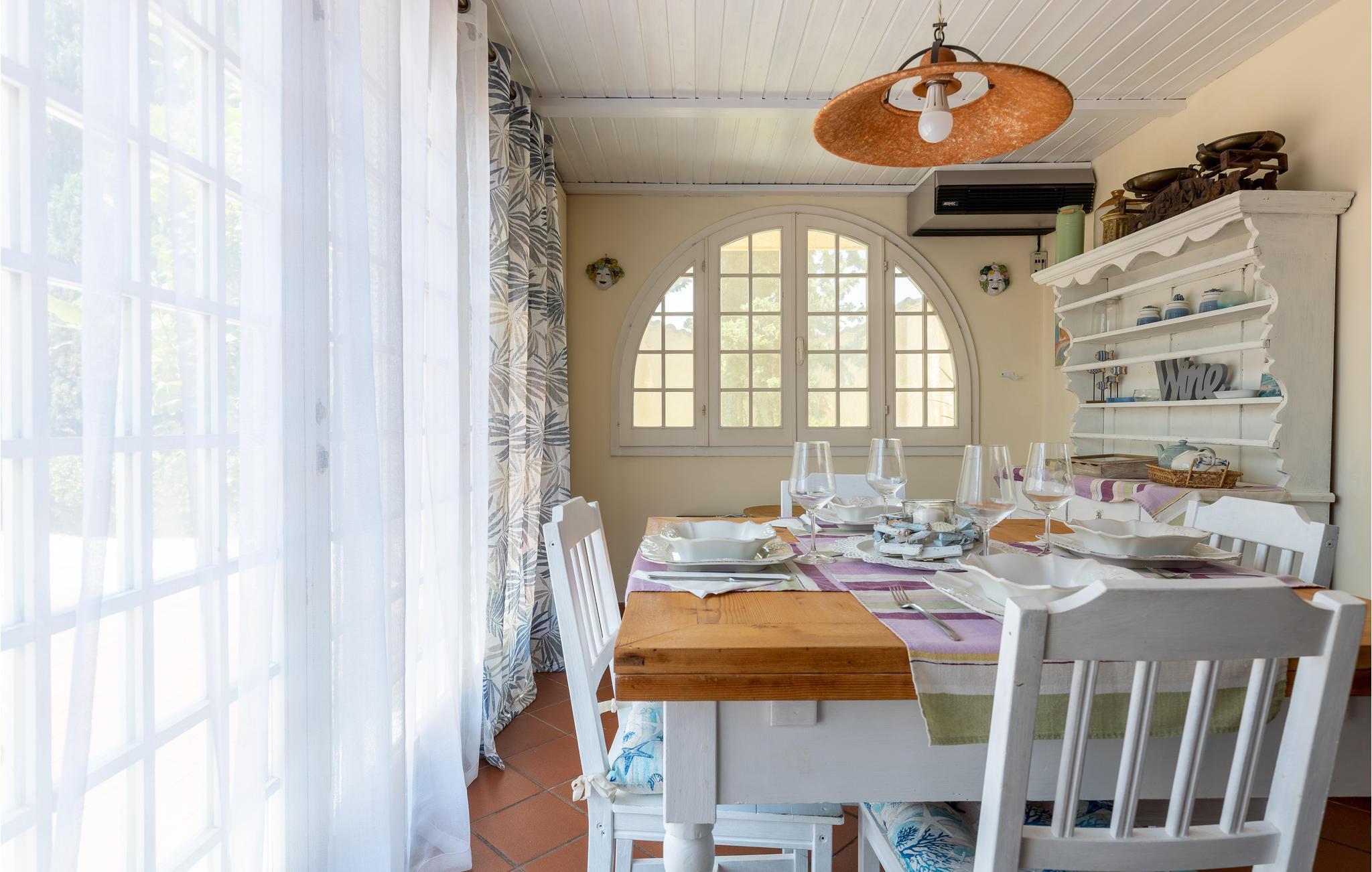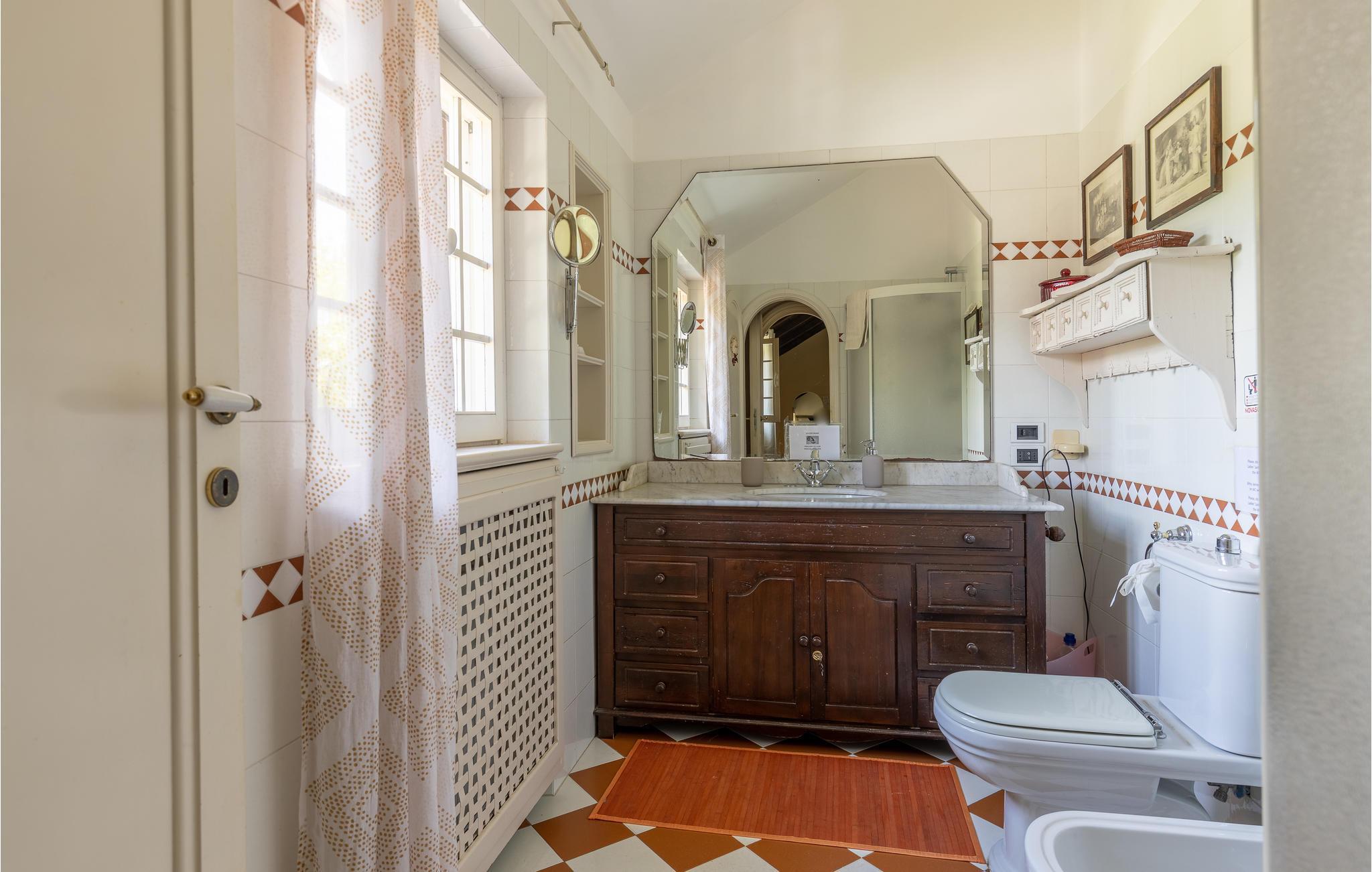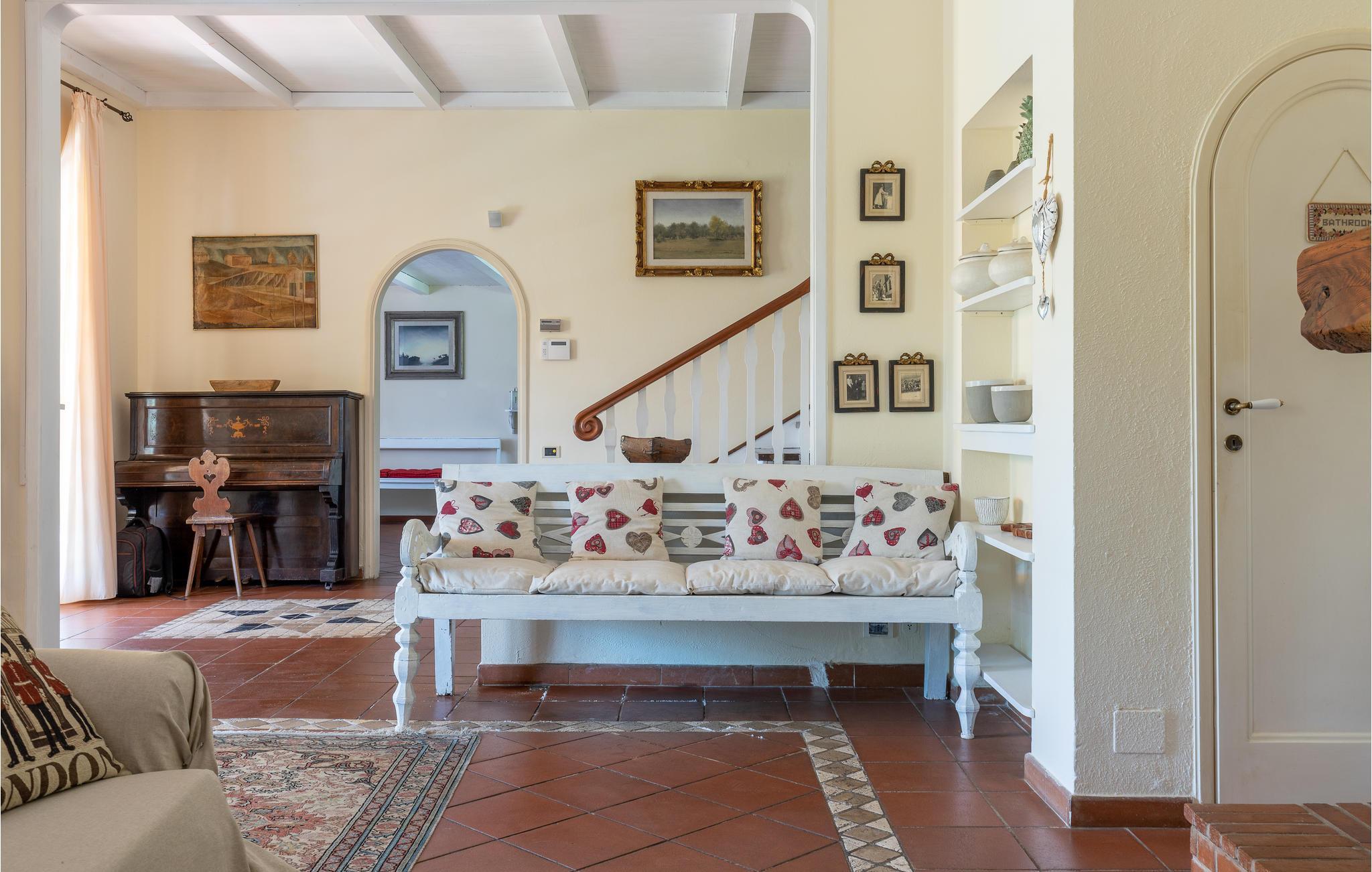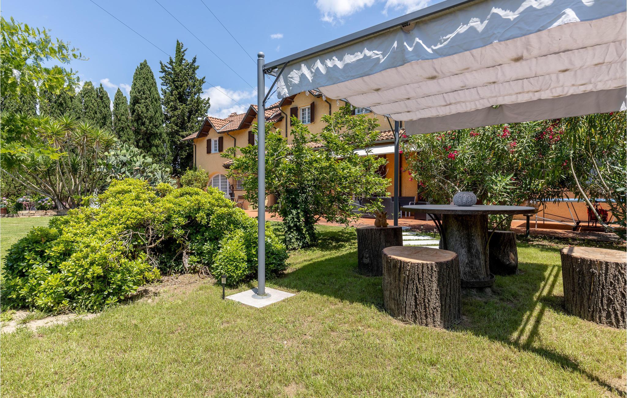 Diese geräumige Ferienvilla mit Privatschwimmbad und angrenzendem Kinderpool ist auf zwei Ebenen verteilt und hat ein ca. 3000 m2 großes Gartengrundstück, das komplett eingezäunt und auf den vier Seiten des Hauses verteilt ist. Der Außenbereich ist mit Holzofen, Grill, Tischen, Stühlen und Sonnenschirm ausgestattet und ist ideal um im Freien zu essen. Die Unterkunft befindet sich in Piano di Mommio, ist jedoch nur 5 km von den Stränden der Versilia entfernt gelegen. Weitere Entfernungen: 4 km Lido di Camaiore und Viareggio, 8 km Pietrasanta, 14 Km Forte dei Marmi, 25 Km Lucca, 27 Km Pisa, 72 Km Cinque Terre , 93 Km da Florenz. Weitere Entfernungen und Dienstleistungen: 0,7 km Restaurant, 0,8 km Reitstall, 1 km Geschäfte aller Art und Tennisplatz, 2 km Supermarkt, 4,7 km Strände, sowohl frei als auch mit Bedeanstalten (Viareggio und Lido di Camaiore), 14 km Golfplatz, 18 km Thermalbäder. Ausblick auf die Apuanischen Alpen sowohl vom Haus als auch vom Grundstück. Der gesamte Besitz besteht aus einem eingezäunten Grundstück von ca. 5000 m2, in dem sich ebenfalls das Cottage der Besitzerin des Hauses befindet, mit der die Gäste nur die Einfahrtsallee teilen.