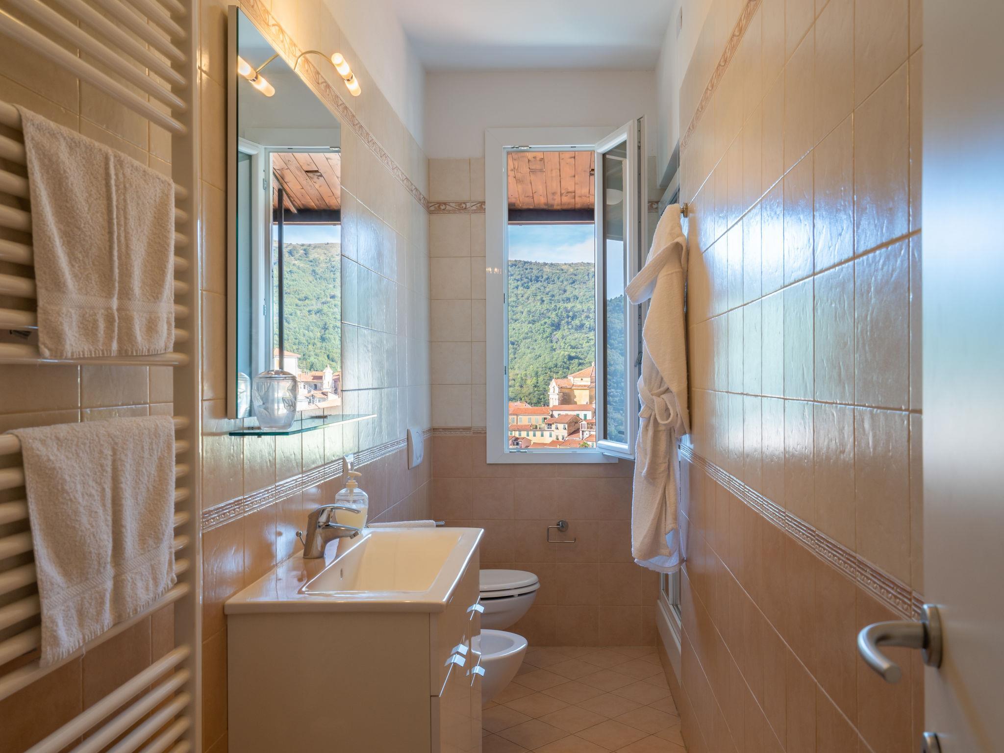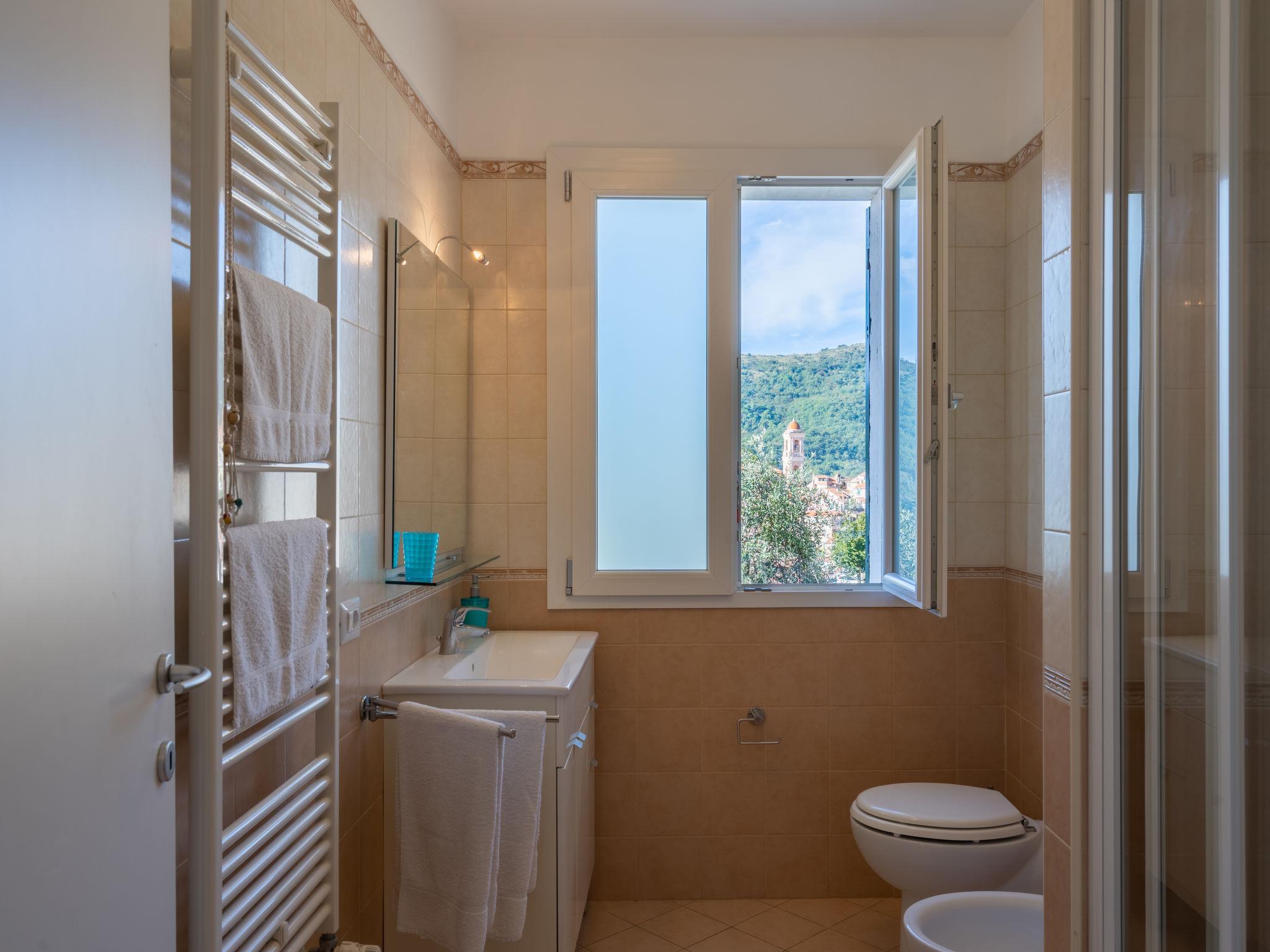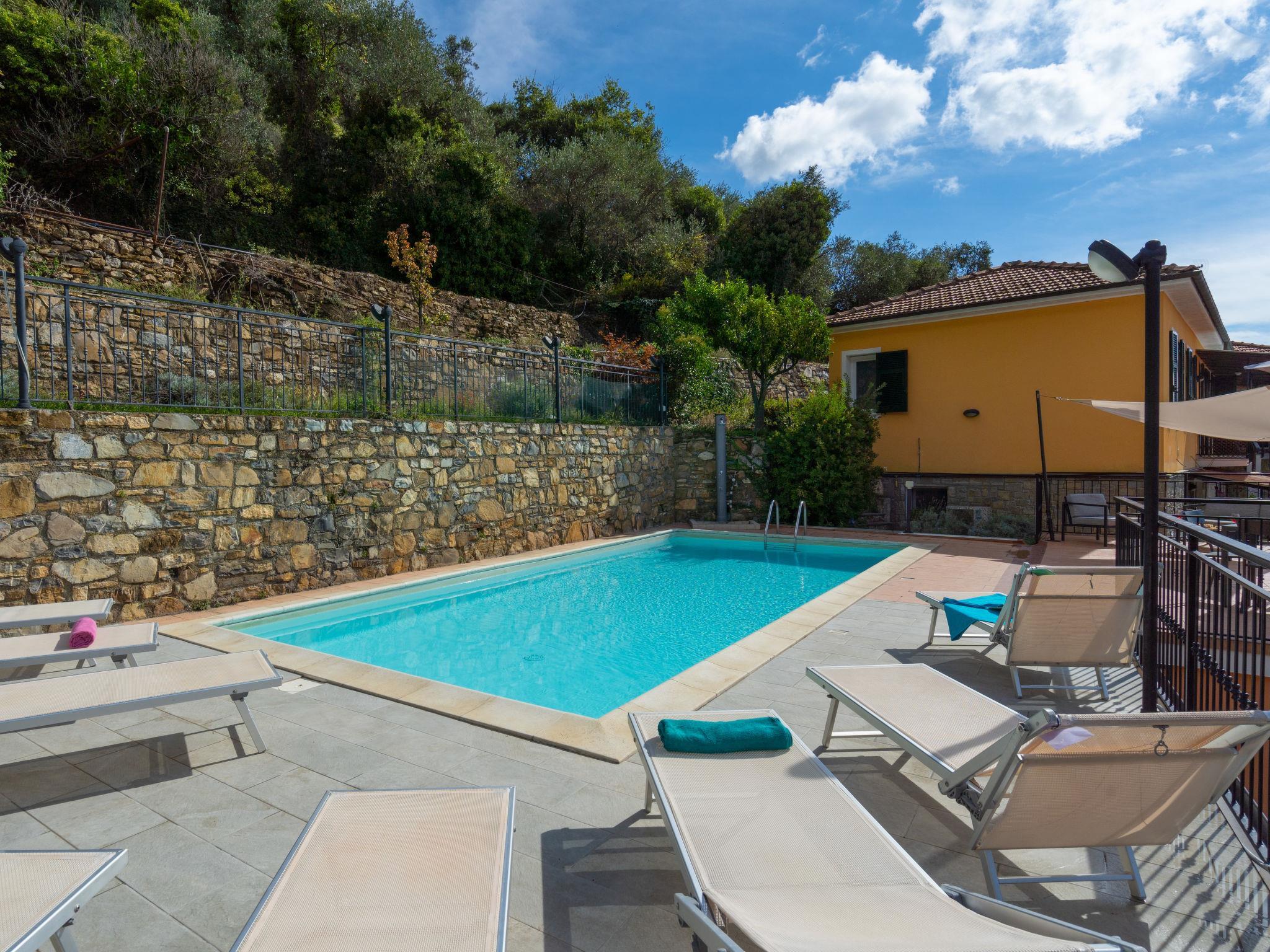 Kinderfreundliche, schöne Residenz "Agriturismo Ca' di Nonni", 400 m.ü.M., auf 2 Stockwerken, umgeben von Bäumen und Weinbergen. 4 Wohnungen in der Residenz. 100 m vom Zentrum von Pietrabruna, am Ortsrand, 10 km vom Zentrum von San Lorenzo al Mare, 16 km vom Zentrum von Imperia, erhöhte Lage am Hang, 9.5 km vom Meer, im Grünen. Zur Mitbenutzung: schöner, gepflegter terrassierter Garten, 1'000 m2 mit Rasen und Pflanzen, Liegewiese, Schwimmbad (10 x 5 m, 120 cm tief, saisonale Verfügbarkeit: 01.Mai. - 01.Okt.). Aussendusche, Tischtennis, Sitzplatz, Laube, Gartenmöbel, Grill, Kinderspielplatz (Rutschbahn, Schaukel), Poolpflege durch den Besitzer/Gärtner. In der Anlage: Aufenthaltsraum mit TV, Fitnessraum, Tischfussball, Einstellraum für Fahrräder, Sonnenterrasse, Waschmaschine (zur Mitbenutzung), Fahrradverleih. 20 m lange steile, schmale Zufahrt. Treppenweg bis zum Haus. Öffentliche Parkplätze 50 m auf der Strasse. Einkaufsgeschäft, Lebensmittelgeschäft 200 m, Supermarkt 10 km, Einkaufszentrum 10 km, Restaurant, Bar, Bäckerei 300 m, Café 200 m, Bushaltestelle 150 m, Sandstrand "San Lorenzo al Mare" 10 km, Steinstrand 10 km, Badesee "Laghetti Torre Paponi" 5 km. Wanderwege ab Haus 10 m. Nahe gelegene Sehenswürdigkeiten: Pista ciclabile lungo mare 10 km, Museo dell´olio Imperia 18 km, Lavendeldestilation in Pietrabruna. Wandergebiete: Monte Faudo (1149 m) Mountainbike Trails 5 km, Monte Follia 2 km. Der Besitzer akzeptiert keine Jugendgruppen. Bitte beachten: Be- und Entladen am Ferienhaus möglich.