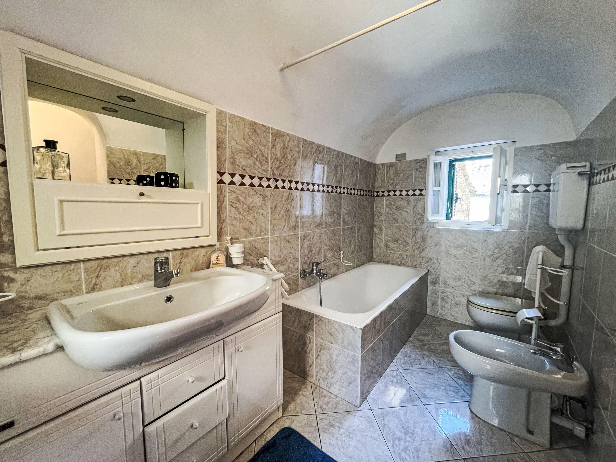 "Gionni", 4-Zimmer-Haus 95 m2 auf 2 Stockwerken. Zweckmässig und gemütlich eingerichtet: Wohn-/Esszimmer mit Esstisch. Bad/Bidet/WC. Obergeschoss: (Wendeltreppe) 1 Zimmer mit 1 Doppelbett (1 x 160 cm, Länge 200 cm). 1 Zimmer mit 1 x 2 Etagenbetten (90 cm, Länge 200 cm). Wohnküche (Backofen, Gasherd, 4 Flammen, Toaster, Wasserkocher, Tiefkühler, elektrische Kaffeemaschine) mit Esstisch, Holzofen. Dusche/WC. Keine Heizmöglichkeit. Terrasse 12 m2. Terrassenmöbel. Panoramasicht auf die Berge und die Ortschaft. Zur Verfügung: Waschmaschine, Babybett. Internet (WLAN, gratis). Bitte beachten: eigener Eingang, Rauchmelder, Feuerlöscher. IT008041B5T89FWTDQ