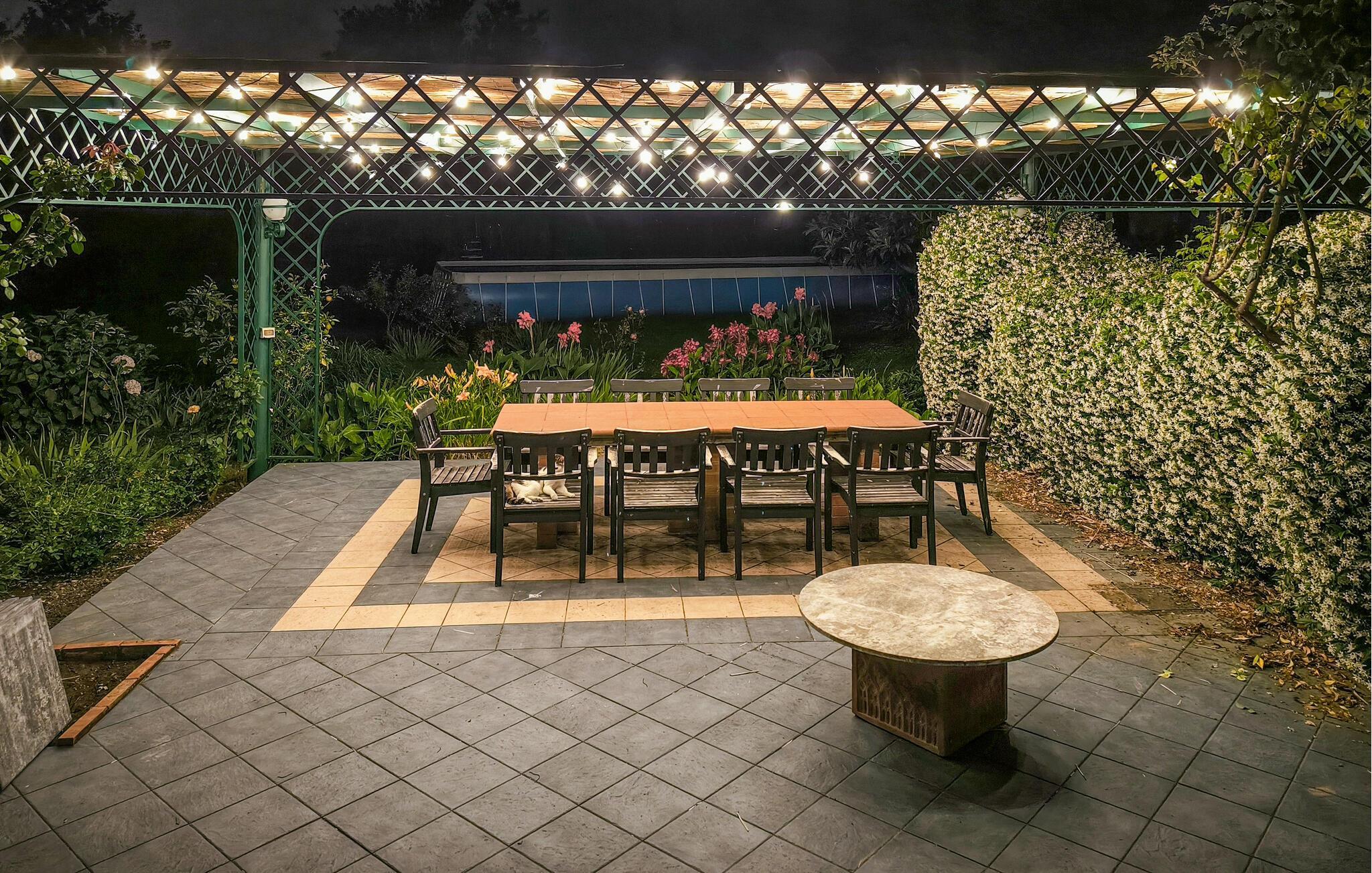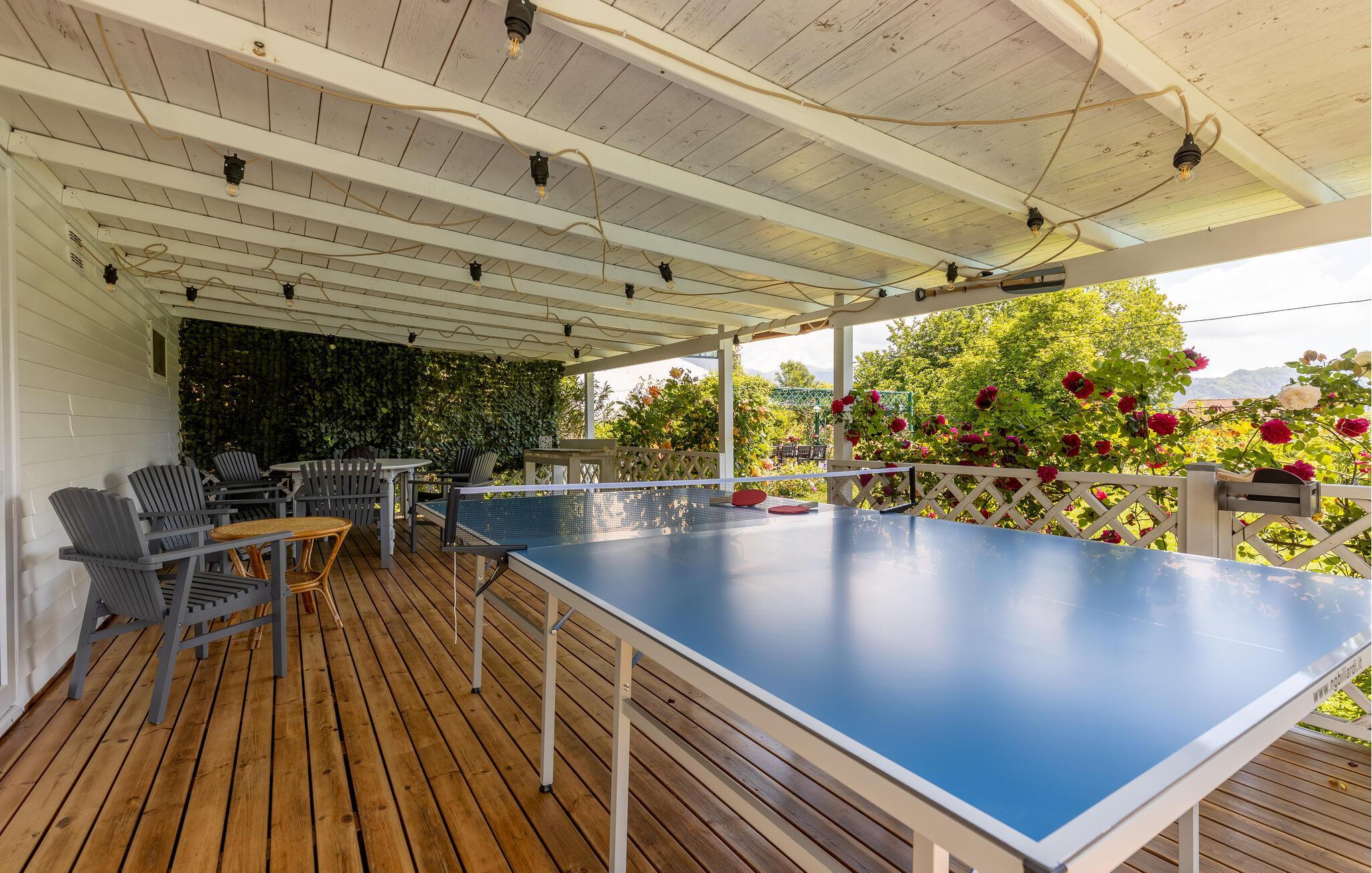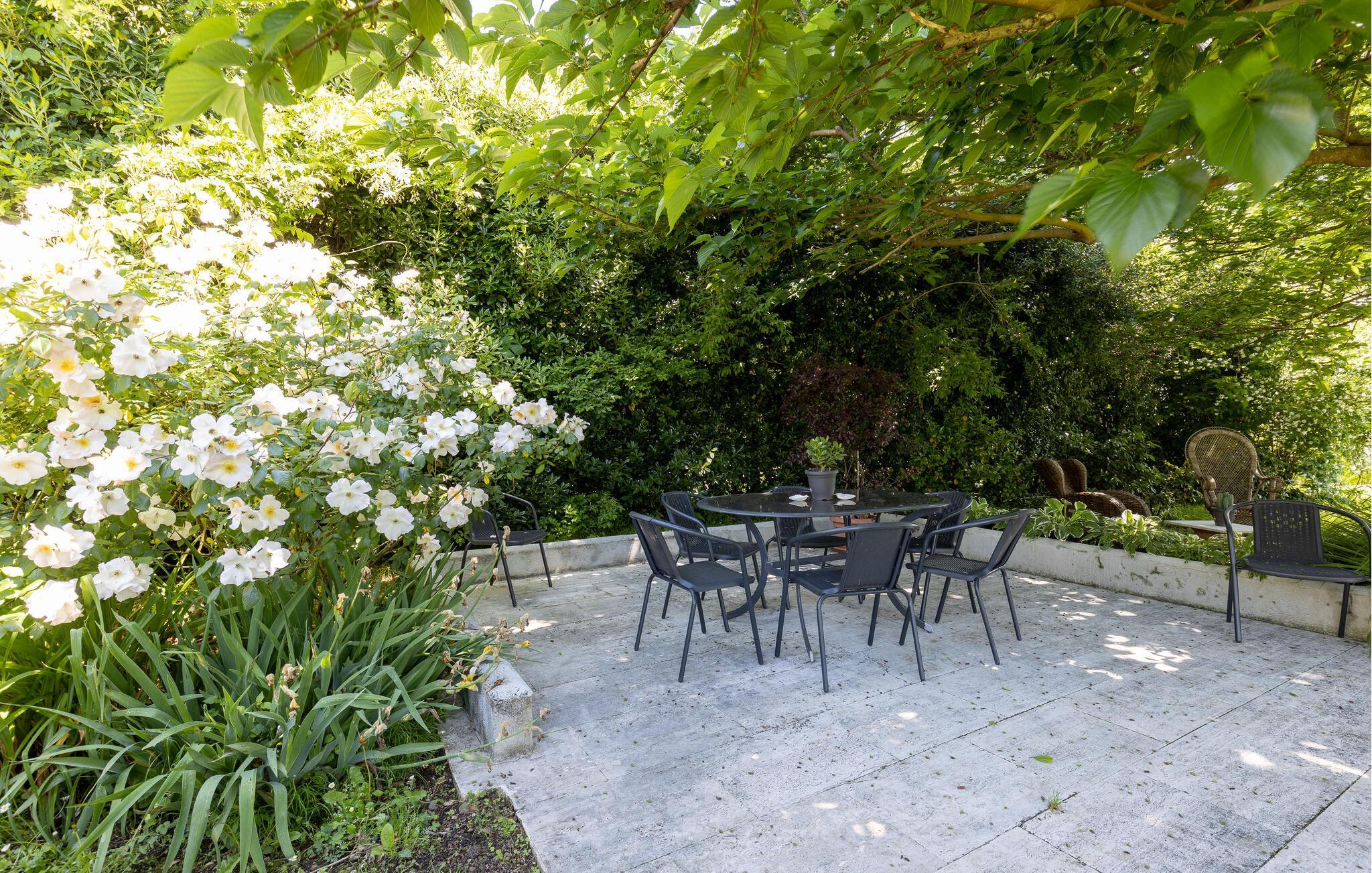 Starten Sie Ihren Tag mit einem Frühstück auf der überdachten Terrasse, relaxen Sie auf einer der Sonnenliegen und erfrischen Sie sich nach Lust und Laune im großen Pool. Lassen Sie Ihre Kinder auf der großzügigen Rasenfläche toben und feiern Sie laue Sommerabende mit einem stimmungsvollen Barbecue.
