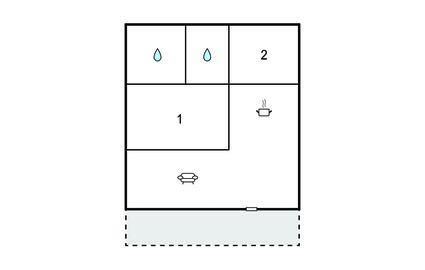 Badezimmer (nr. 1) - WC. Warmes und kaltes Wasser. Dusche