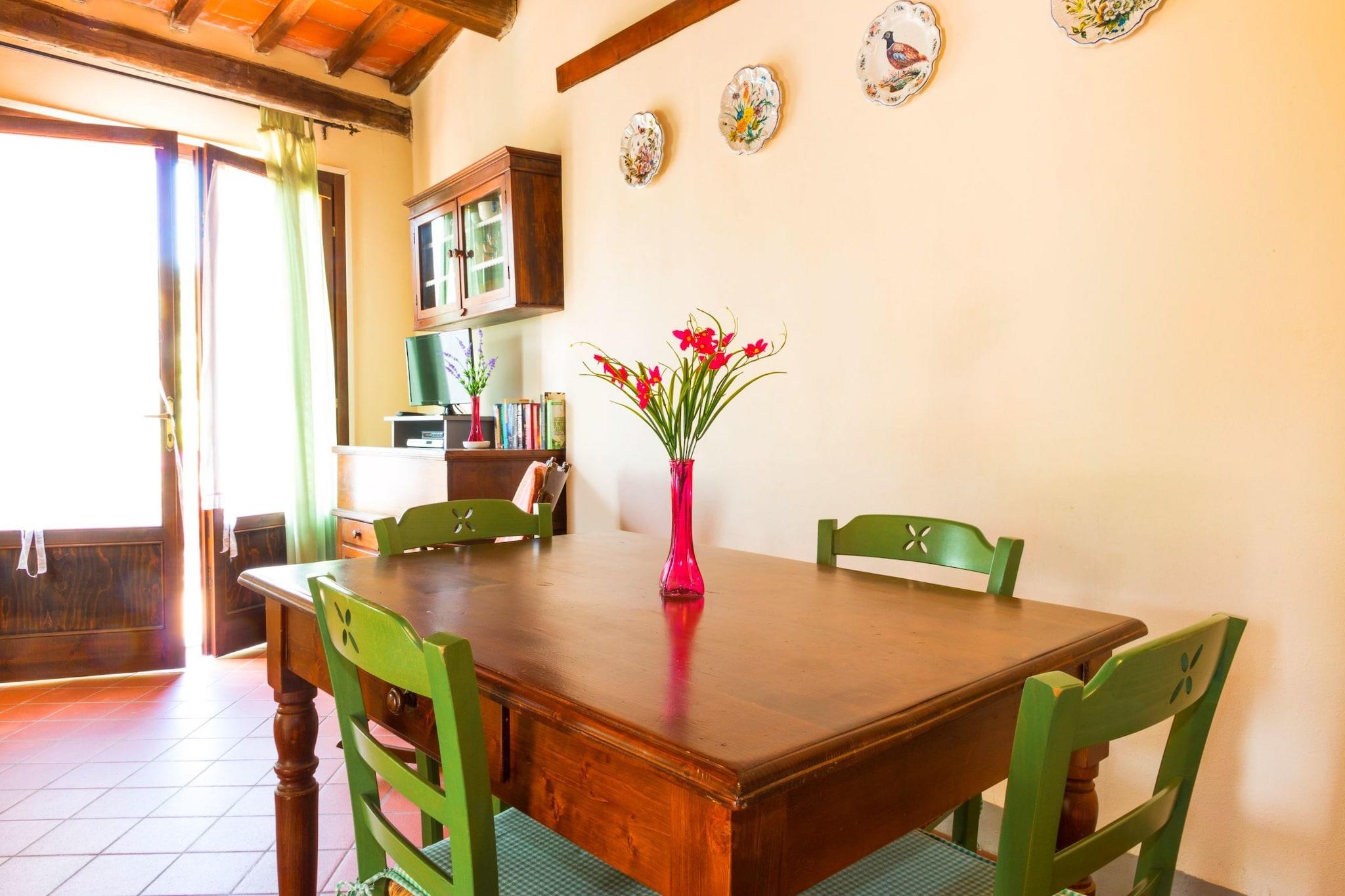 Dieser Bauernhof liegt im Herzen der Toskana, an einem Ort auf dem Land mit panoramischer Aussicht. Hier können Sie frische Produkte aus dieser fruchtbaren Erde und die gemütliche Atmosphäre in der unberührten natürlichen Umgebung einer wunderschönen Landschaft genießen. Der Bauernhof produziert Wein und verfügt über ein kleines gemütliches Restaurant, in dem Gäste nach Absprache Gerichte aus der traditionellen toskanischen Küche probieren können. Alle Gäste haben Zugung zu einem wunderschönen Panorama-Pool, der mit allem Komfort ausgestattet ist: Tische, Stühle, Sonnenschirme und Außenduschen und einen großen gemeinschaftlichen Raum, in dem Sie die Waschräume und eine große Terrasse finden. Für Gäste gibts einen Wellnessbereich mit Türkischem Bad, Idromassage Bad und Dusche und Sauna. Die Eigentümer beziehen die Gäste gerne mit in die Produktion ein und erklären, wie alles angebaut wird. Danach können Sie natürlich auch alles probieren: den Wein, den Grappa, den Vin Santo, den Limocello. So wird es auf dem Bauernhof richtig gemütlich!