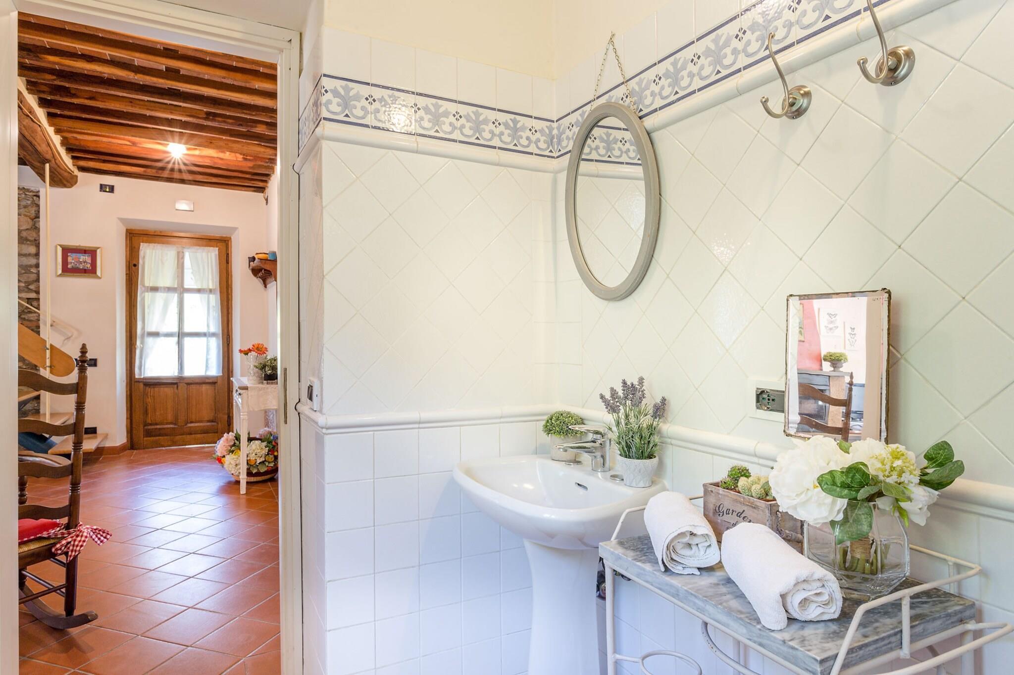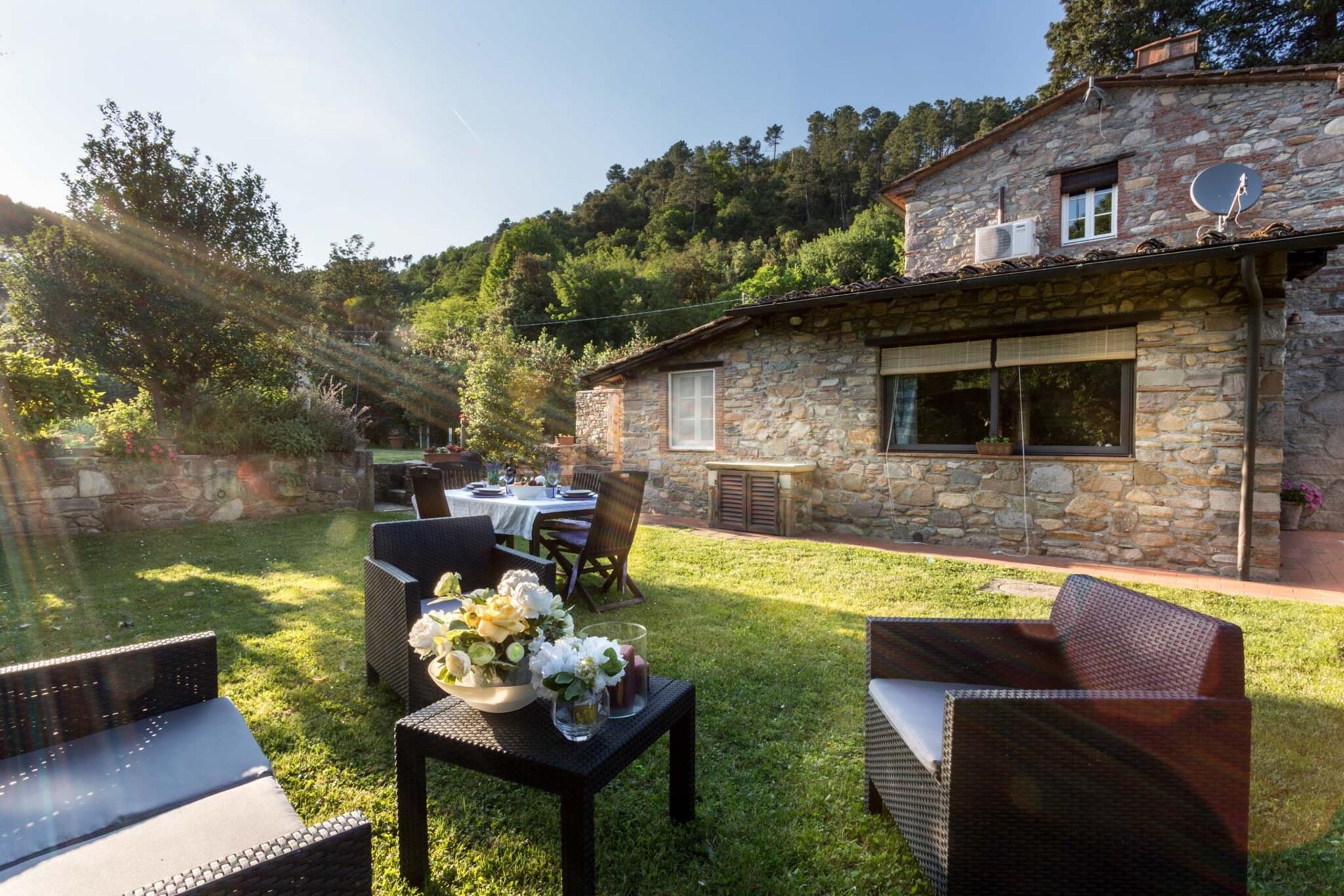 Tauchen Sie ein in die atemberaubende toskanische Landschaft in diesem charmanten Bauernhaus, nur 7 km – etwa 10 Autominuten – von Lucca entfernt. Genießen Sie die Schönheit der üppigen Landschaft und wohnen Sie gleichzeitig in der Nähe des Stadtzentrums und berühmter toskanischer Sehenswürdigkeiten. Durch das antike Steintor, das das Anwesen umschließt, betreten Sie ein gemütliches Bauernhaus mit zwei Schlafzimmern inmitten der Hügel und bieten einen malerischen Blick auf die umliegende grüne Landschaft. Die Schlafzimmer im ersten Stock sind für Ihren Komfort mit Klimaanlage ausgestattet. Der herzliche und einladende, gebürtige Amerikaner wohnt nebenan und erzählt Ihnen gerne Geschichten über lokale Traditionen und die Kunst der Olivenölherstellung. So wird ein unvergesslicher Aufenthalt mit persönlicher Note garantiert. Dieses bezaubernde Refugium verspricht ein märchenhaftes Erlebnis, das Entspannung und kulturelles Eintauchen im Herzen der Toskana verbindet. Die Kurtaxe ist vor Ort zu entrichten.