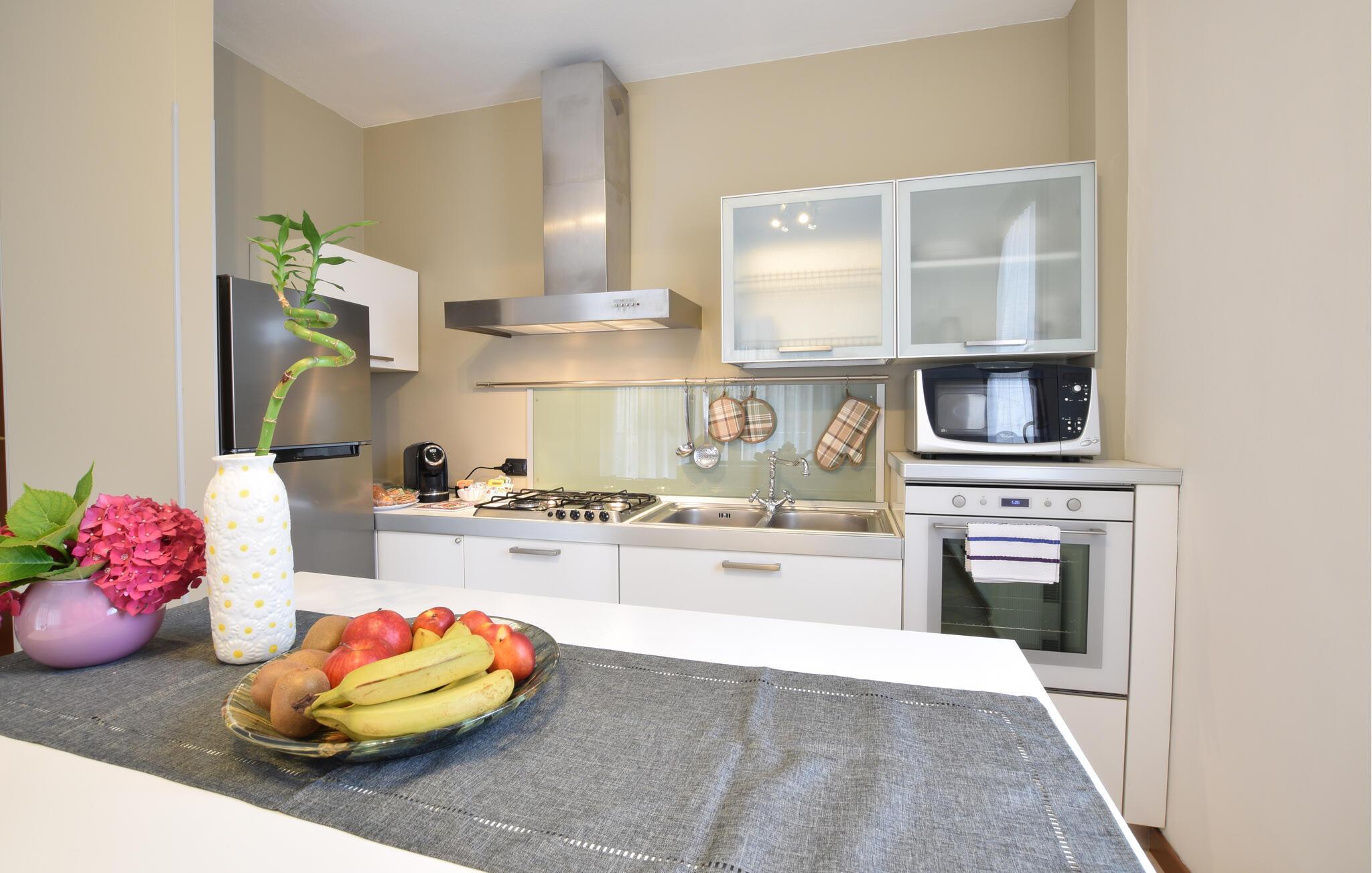 Diese Wohnung ist ideal für Sie, wenn Sie einen unkomplizierten und erholsamen Aufenthalt suchen. Der Wohnbereich ist funktional eingerichtet und bietet Ihnen mit Schlafsofa, Fernseher und viel Tageslicht inen einladenden Ort zum Entspannen. Bereiten Sie Ihre Mahlzeiten in der modernen Küche zu und verwöhnen Sie Ihre Lieben einem Glas Prosecco als Aperitif vor dem Essen.