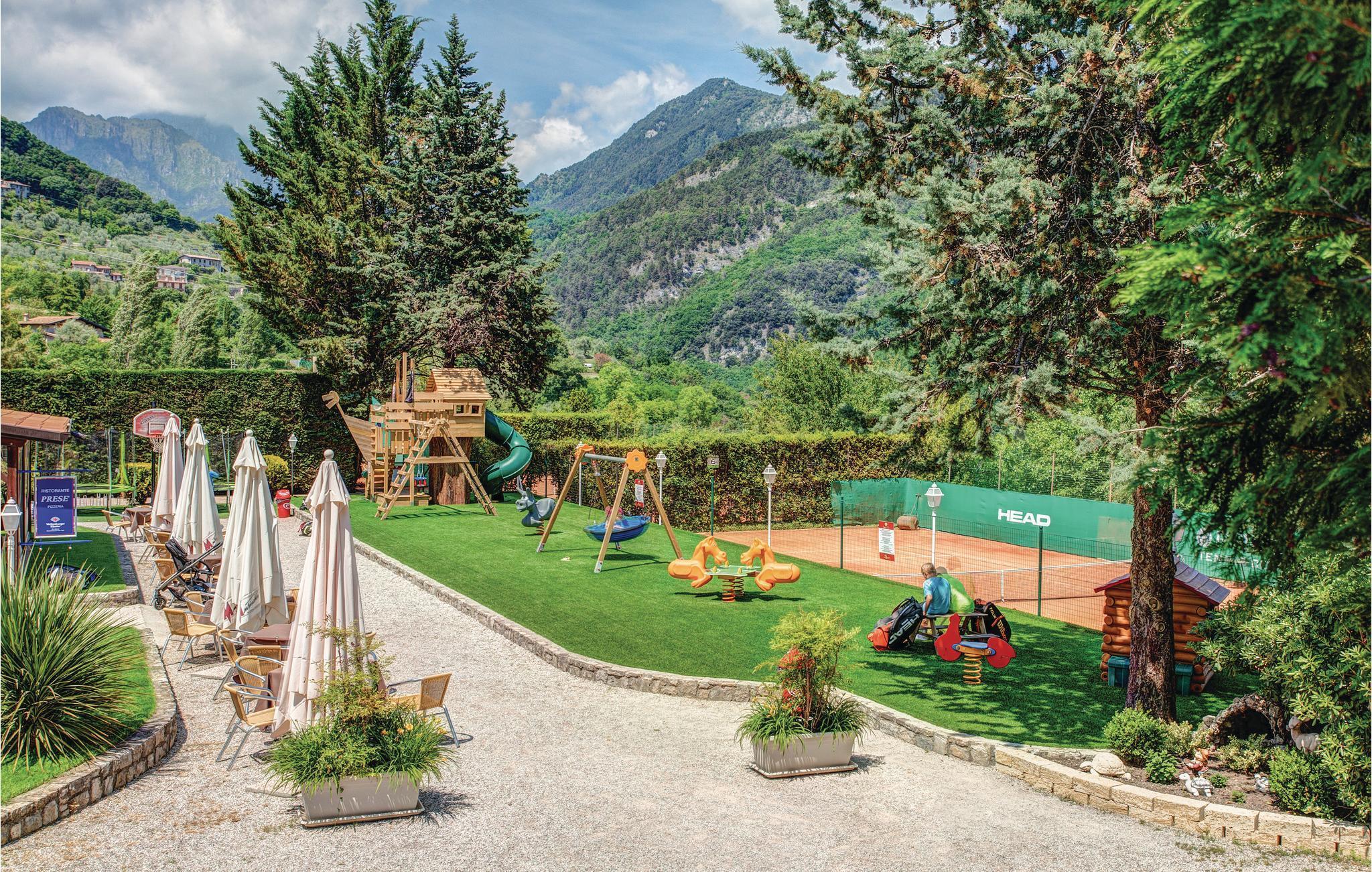 "Schöne Ferienwohnung in einer Wohnanlage in Tremosine del Garda, nur 6 km vom Gardasee entfernt. Eines der Doppelbetten befindet sich auf dem Mezzanin, das zum Wohnzimmer hin offen ist. Die Gäste können den Gemeinschaftspool kostenfrei nutzen, während Kinder sich auf dem Spielplatz amüsieren können, während sich die Eltern im Wellnessbereich entspannen. Vor Ort Restaurant / Pizzeria und Tennisplätze (gegen Gebühr). Nur die Apartments sind ganzjährig geöffnet, während "das Restaurant und der Wellnessbereich von Mai bis September geöffnet und in den Wintermonaten geschlossen sind. Die Lage ist ideal, um Limone (12 km) und Campione (6 km) zu besuchen. Von Limone aus gibt es Fährverbindungen nach Salò 40 km und zur venezianischen Küste, die für ihre Villen und Freizeitparks bekannt ist."