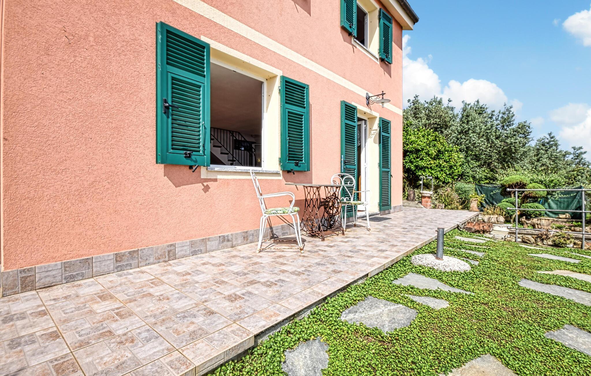 In guter Lage nicht weit vom Meer empfängt Sie das einladende Haus, das mit einer tollen Aussicht bezaubert und einen gemütlichen Rahmen für Ihren Urlaub an der Ligurischen Küste bildet. Machen Sie es sich nach einem erlebnisreichen Tag im Wohnbereich gemütlich, speisen Sie gemeinsam und verbringen Sie gesellige Abende auf dem Sofa.