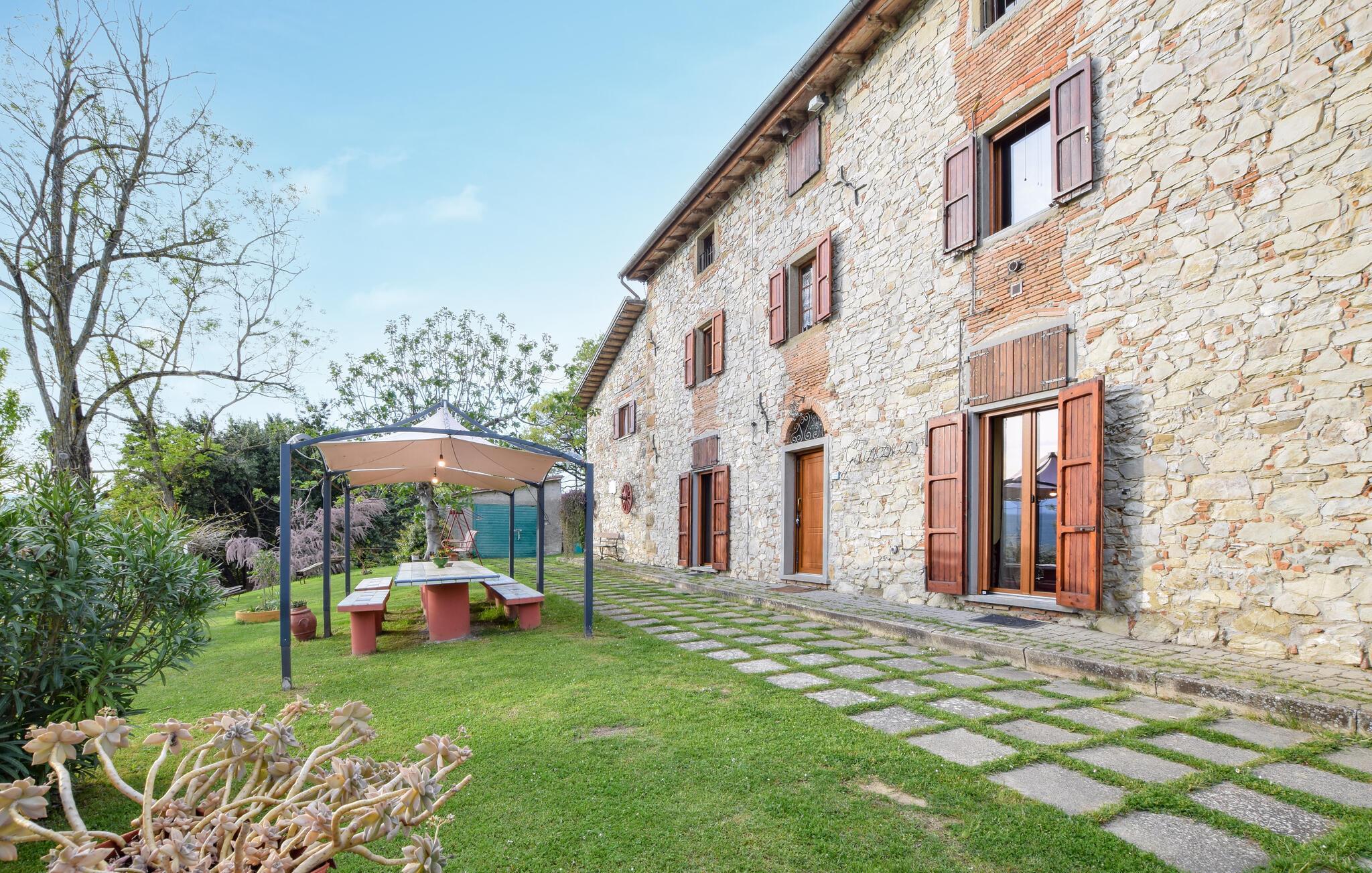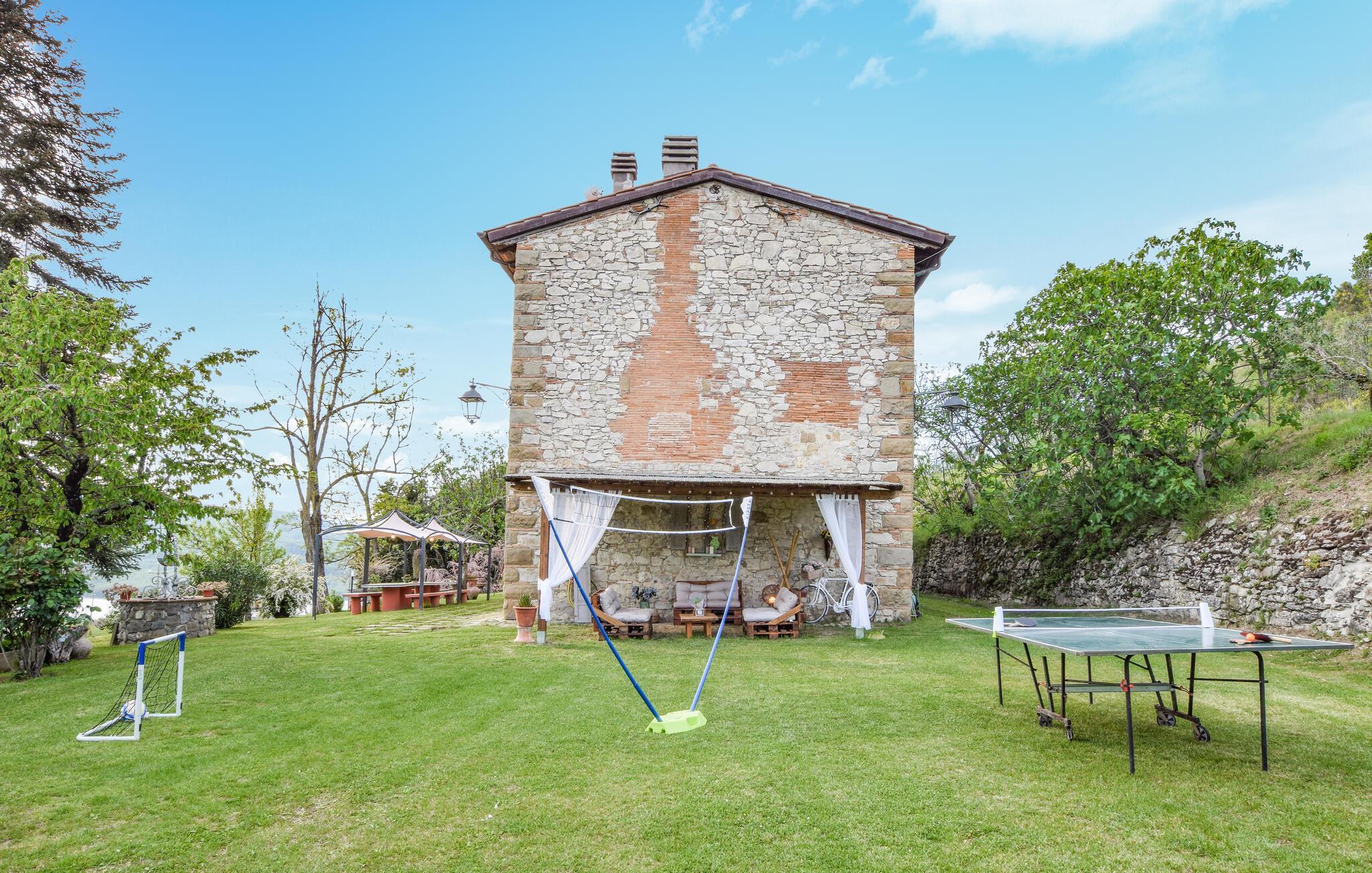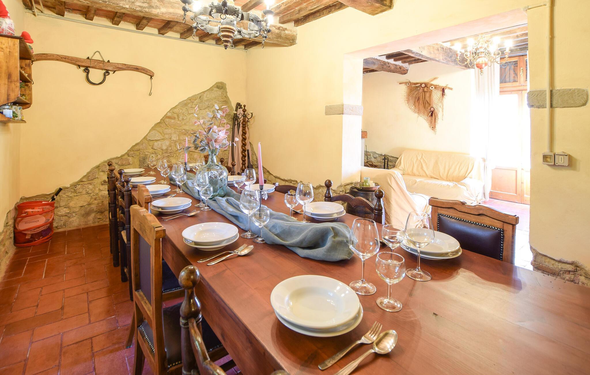 Freuen Sie sich auf rustikalen Charme und einen traumhaften Ausblick in diesem Ferienhaus in der Toskana.