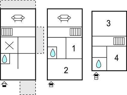 Schlafzimmer (nr. 4) - 1 Schlafmöglichkeit. (Einzelbett(en)). 2 Schlafmöglichkeiten. (Doppelbett(en)).