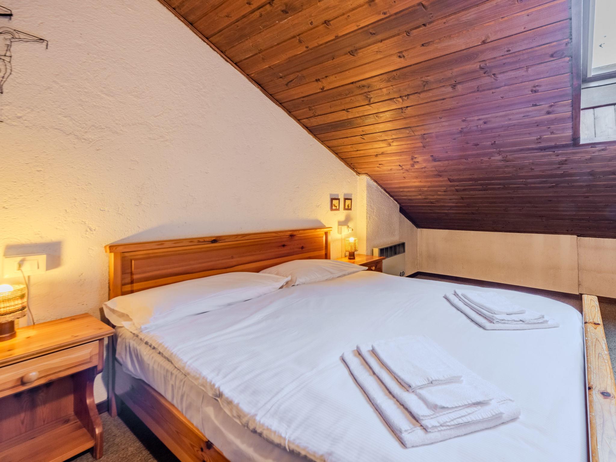 "Mansarda al Doss", 3-Zimmer-Maisonette-Wohnung 60 m2 im 3. Stock. Geräumig, teilweise abgeschrägt, einfach und zweckmässig eingerichtet: Wohn-/Esszimmer mit 1 Diwanbett (160 cm, Länge 190 cm), offenem Kamin (nur Deko), Esstisch und TV. Ausgang zum Balkon. Kochnische (Backofen, 4 Flammen, Tiefkühler). Bad/Bidet/WC. E-Heizung. Obergeschoss: 1 Doppelzimmer. 1 Zimmer mit 2 Betten (80 cm, Länge 190 cm). Bad, sep. WC. Eingeschränkte Panoramasicht auf die Ortschaft. Zur Verfügung: Babybett bis 2 Jahre (extra). Bitte beachten: Nichtraucher-Unterkunft. Feuerlöscher. IT022093C2VEDJ874E