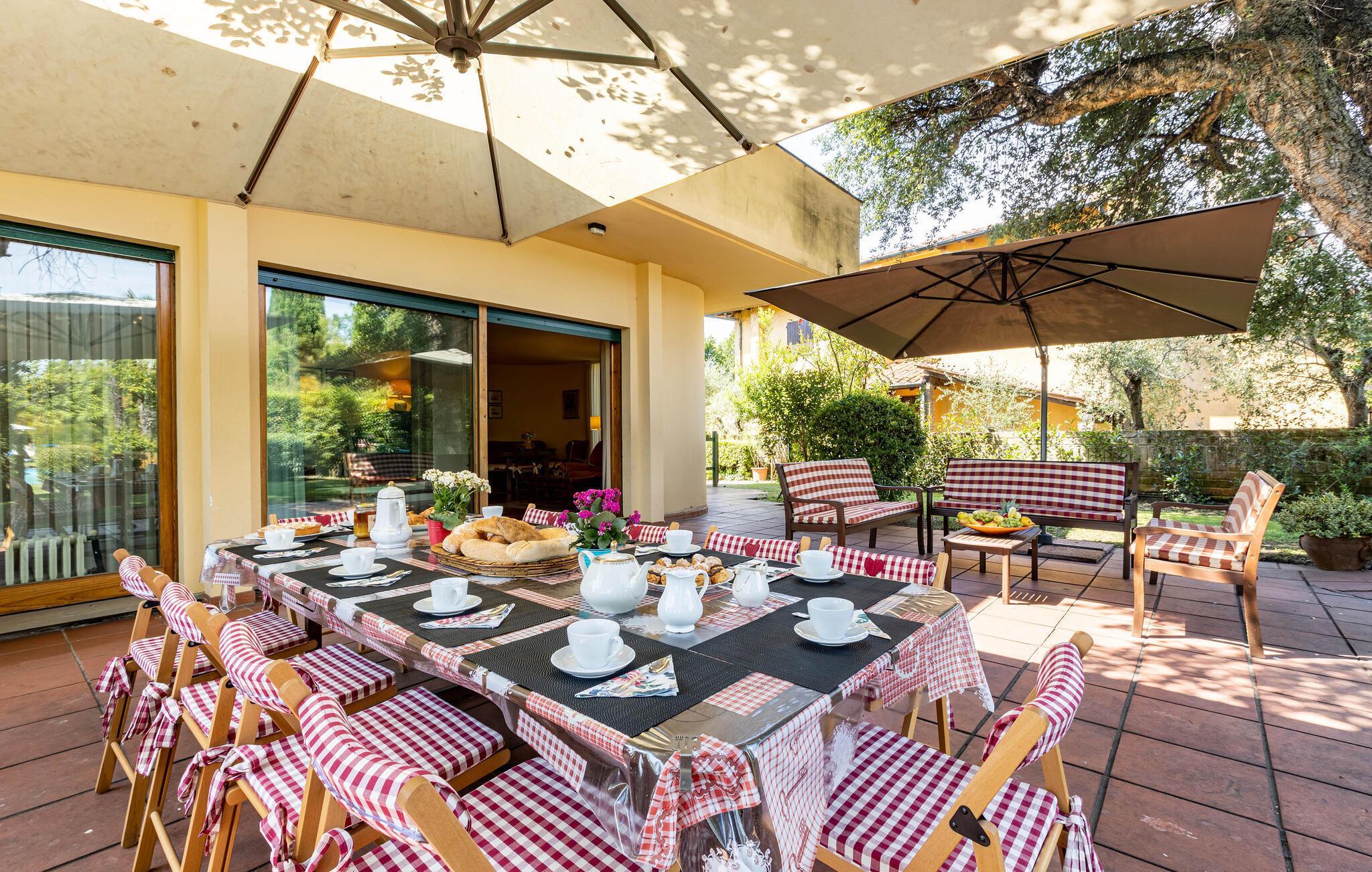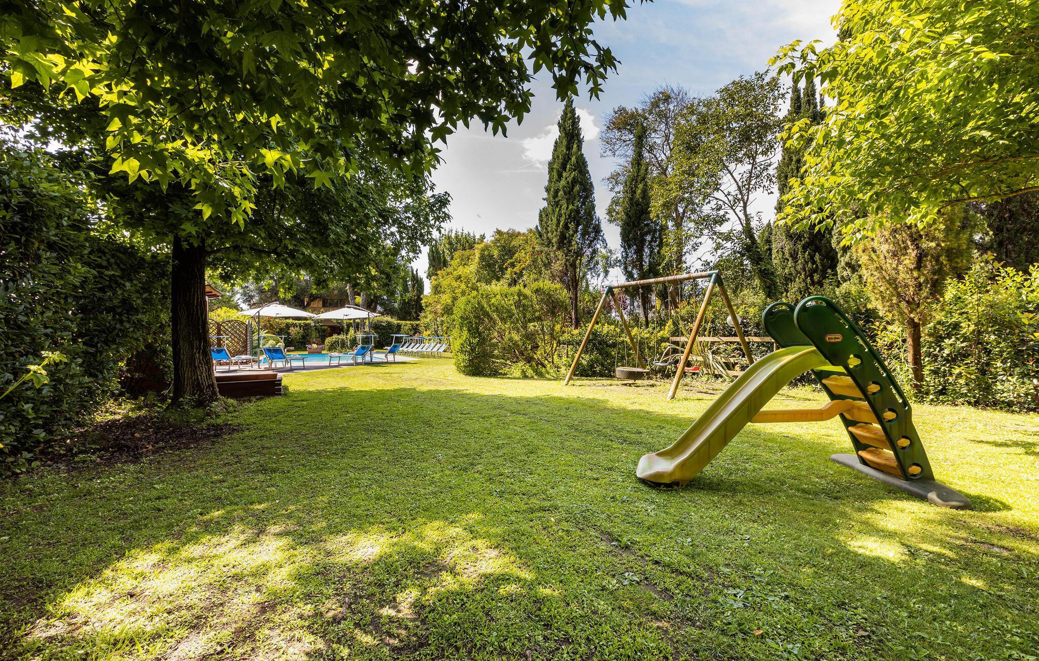 Draußen erwartet Sie ein großer Pool und ein weitläufiger, geschützter Garten. Servieren Sie Ihre Mahlzeiten im Schatten, entspannen Sie auf den Sonnenliegen und erfrischen Sie sich im Pool. Entfachen Sie den Grill, während die Kinder auf dem Spielplatz toben, und zelebrieren Sie die gemeinsame Zeit mit stimmungsvollen Abenden bei Wein und Kerzenschein.