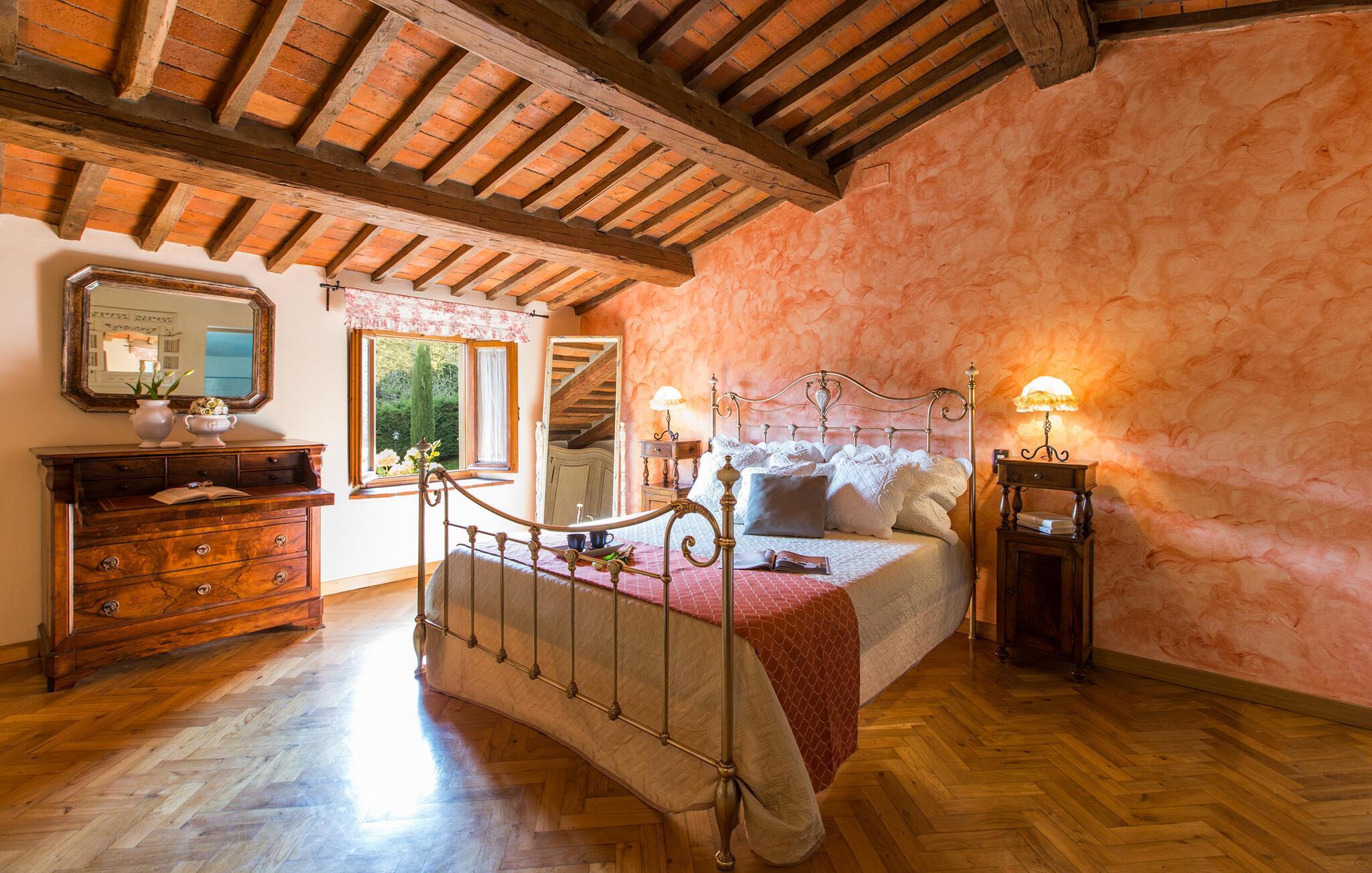 Dieses großzügige und komfortabel ausgestattete Haus liegt eingebettet in ein malerisches Grundstück und lädt Sie zu einer erholsamen Auszeit mit Freunden oder der Großfamilie ein. Die gemütlichen, liebevoll restaurierten Räumlichkeiten versprechen erholsamen Schlaf und machen gesellige Mahlzeiten zu einem einzigartigen Erlebnis. Gönnen Sie sich wohlige Momente im Whirlpool und plaudern Sie bei einem Glas Wein über vergangene Zeiten.