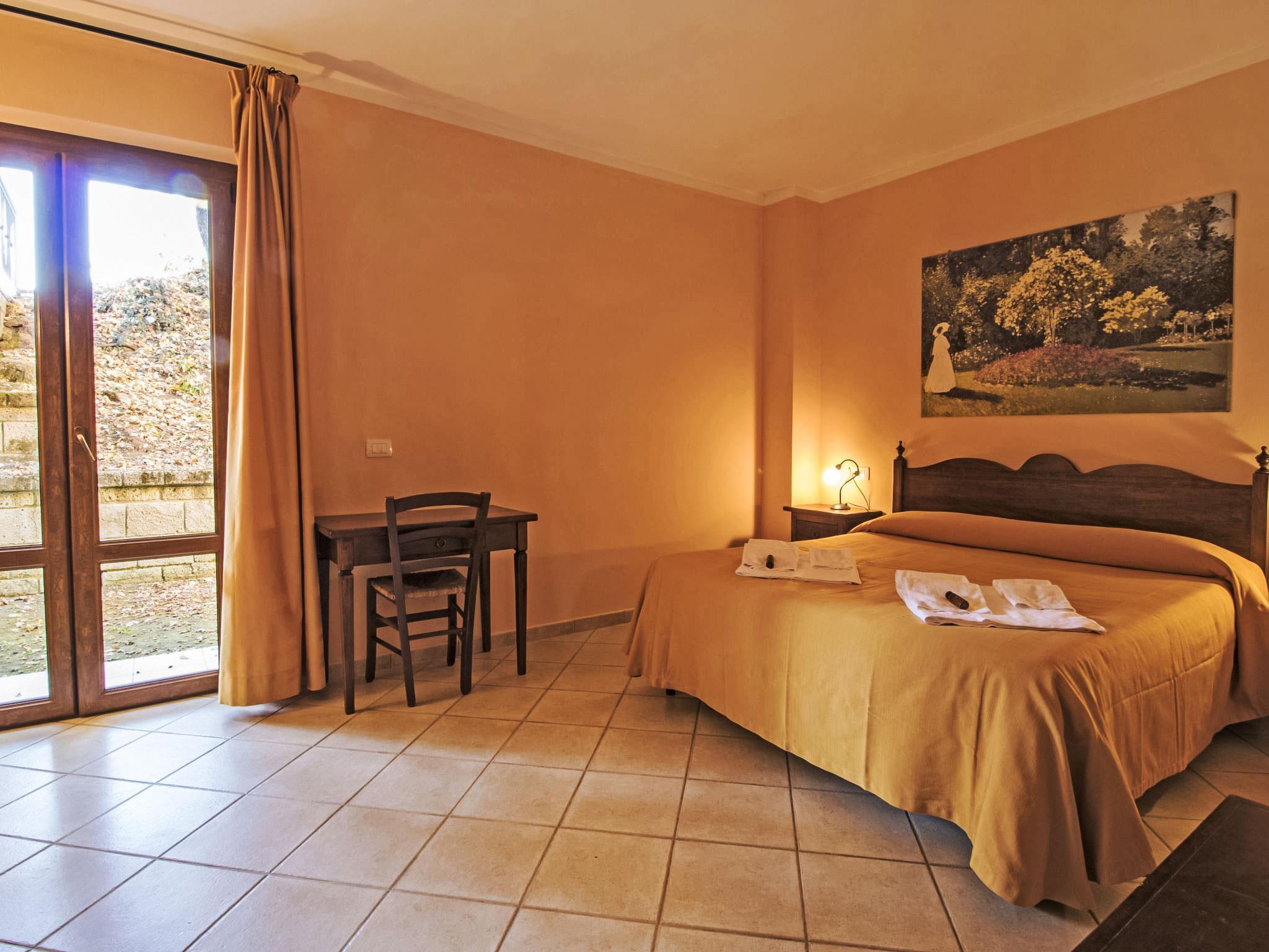 Feriendorf mit 30 Ferienwohnungen und 10 Villen mit Nutzung von 3 Schwimmbädern, 1 mit Thermalwasser bei 37 °C (350 m², unregelmässige Form), ganzjährig geöffnet und 1 neues Kinderbecken. Alle Einheiten mit reservierten Sonnenschirmen und Liegen in der Ruhezone des Schwimmbeckens. Gesundheitszentrum mit Gesichts- und Körperbehandlungen, verschiedene Pakete, vor Ort buchbar. Fitness- und Radwege, Reitzentrum, Gastronomietouren (Getränke und Essen). Schöne Ferienanlage "Thermae", 460 m.ü.M.. 10 Häuser in der Residenz. 30 Wohnungen in der Residenz. 3 km vom Zentrum von Sorano, 7 km vom Zentrum von Pitigliano, sonnige Lage, 55 km vom Meer, im Grünen. Zur Mitbenutzung: Park 6 ha, 2 Schwimmbäder (17 x 11 m, saisonale Verfügbarkeit: 01.Jan. - 31.Dez.) mit Innentreppe. Ungleichmässige Schwimmbadform, Kinderbecken, Aussendusche, Tennis, Tischtennis, Grill, Kinderspielplatz. In der Anlage: Empfang, Restaurant, Bar, Wireless LAN, Massage (extra). Sprudelbad (extra). Sonnenterrasse, Wäscherei, Waschmaschine (zur Mitbenutzung, extra), Heizung vor Ort zu zahlen, Heizung nur verfügbar von 01.Nov. - 15.Apr., Fahrräder vorhanden (extra). Wäschewechsel 1 mal wöchentlich. Wohnungsreinigung möglich (extra). Frühstück und Halbpension auf Anfrage (extra). Zufahrt bis zum Haus. Parkplatz in 200 m. E-Ladestation. Lebensmittelgeschäft 3 km, Supermarkt 7 km, Restaurant 3 km, Bushaltestelle 300 m, Sandstrand 55 km, Badesee "Bolsena" 25 km. Reitstall 800 m. Nahe gelegene Sehenswürdigkeiten: Grotte Di Castro 22 km, Saturnia 28 km, Capalbio 52 km, Monte Argentario 45 km. Bekannte Seen in der Umgebung sind gut erreichbar: Bolsena 25 km. Bitte beachten: Fahrzeug empfohlen. Geeignet für Familien. Die Anlage wird nachts überwacht. Die Residenz wird durch elektrische Tore geschlossen. Das Foto ist nur ein Hausbeispiel. Badekappenpflicht.