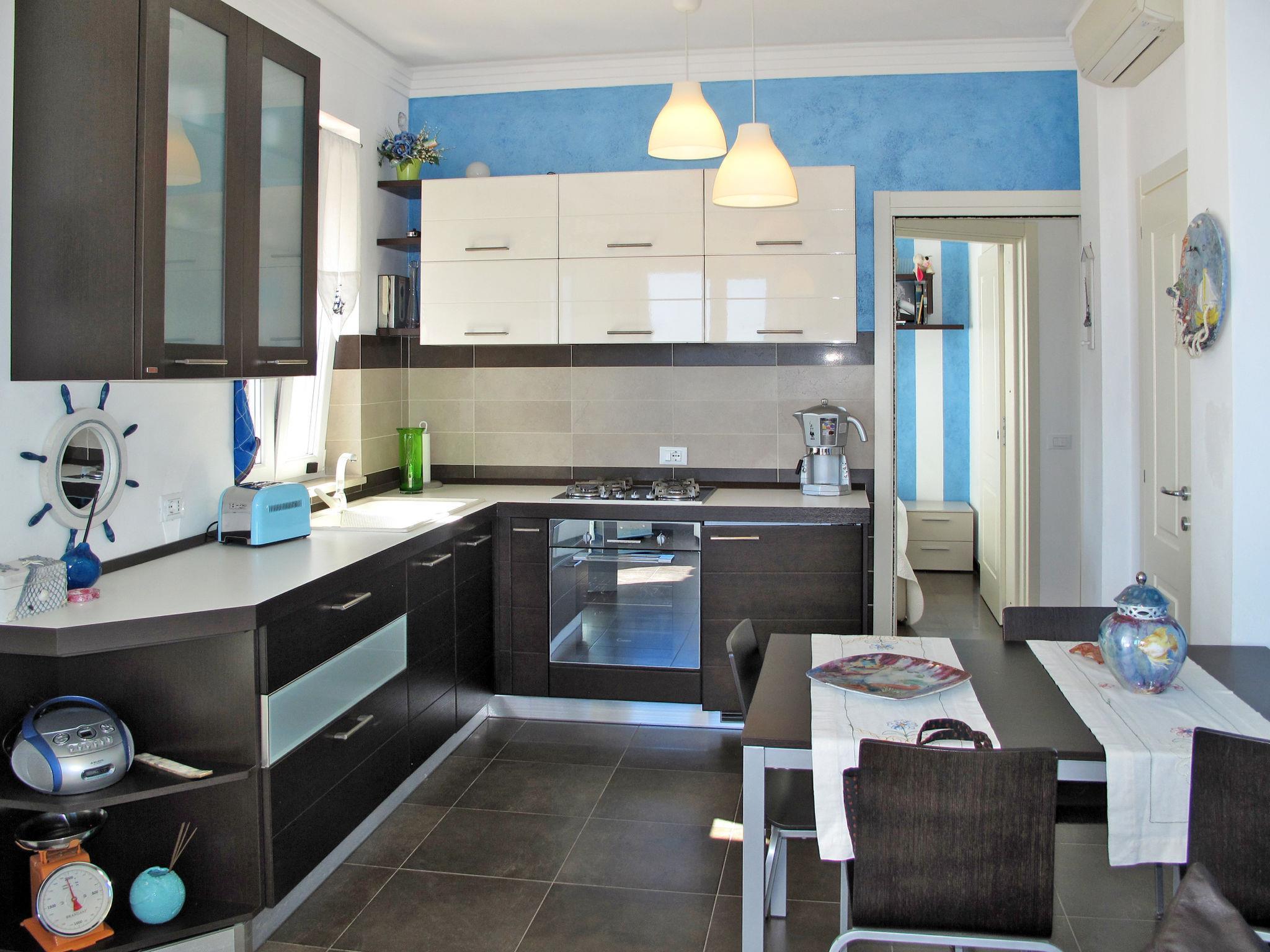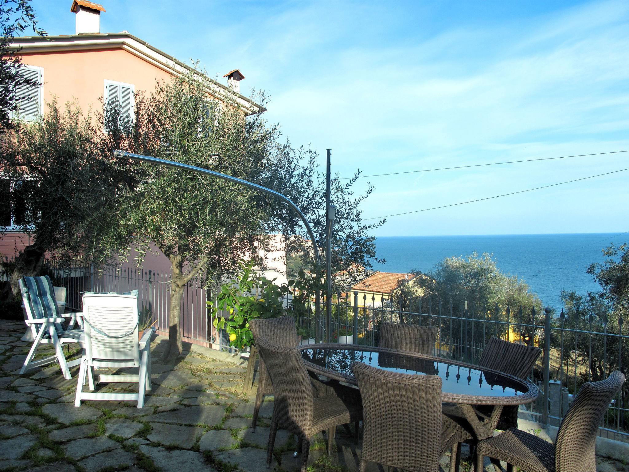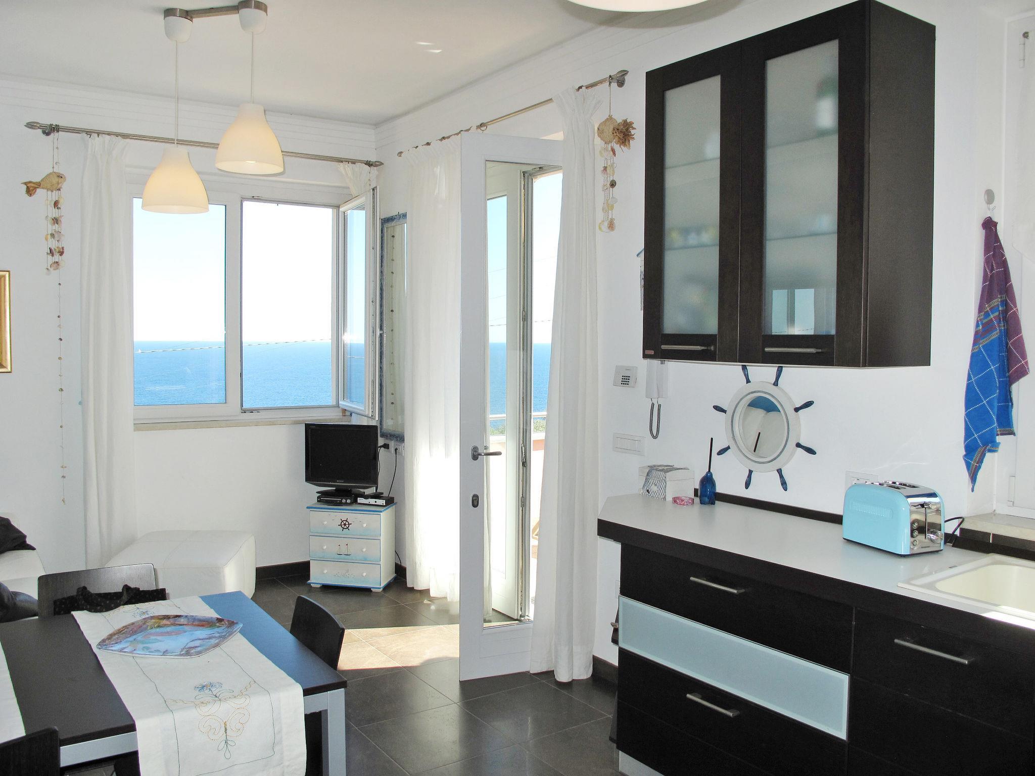 "Ulivi sul Mare", 2-Zimmer-Wohnung 45 m2 im 1. Stock. Hell, modern und gemütlich eingerichtet: Wohn-/Schlafzimmer mit 1 Doppeldiwanbett (140 cm), Esstisch und Sat-TV. Ausgang zur Terrasse. 1 Zimmer mit 1 franz. Bett (160 cm). Offene Küche (Backofen, 4 Flammen, Toaster, Wasserkocher, Mikrowelle, elektrische Kaffeemaschine). Dusche/Bidet/WC. E-Heizung, Klimaanlage. Balkon, Gartensitzplatz. Balkonmöbel, Gartengrill (mobil), Liegestühle (4). Sehr schöne Sicht auf das Meer und die Bucht. Zur Verfügung: Waschmaschine, Safe, Bügeleisen. Internet (Wireless LAN, gratis). Bitte beachten: eigener Eingang. IT008031C2NUGIR95I