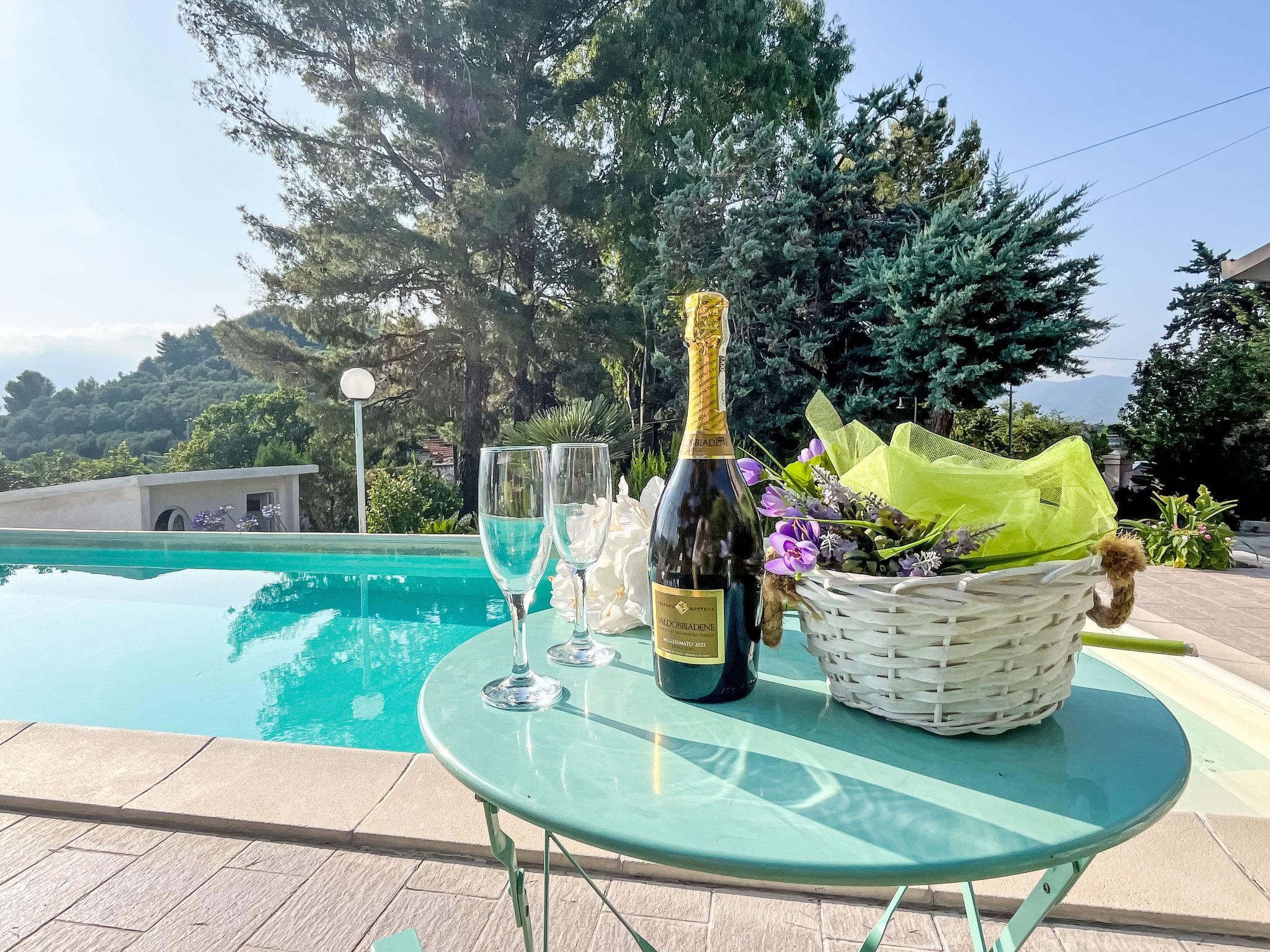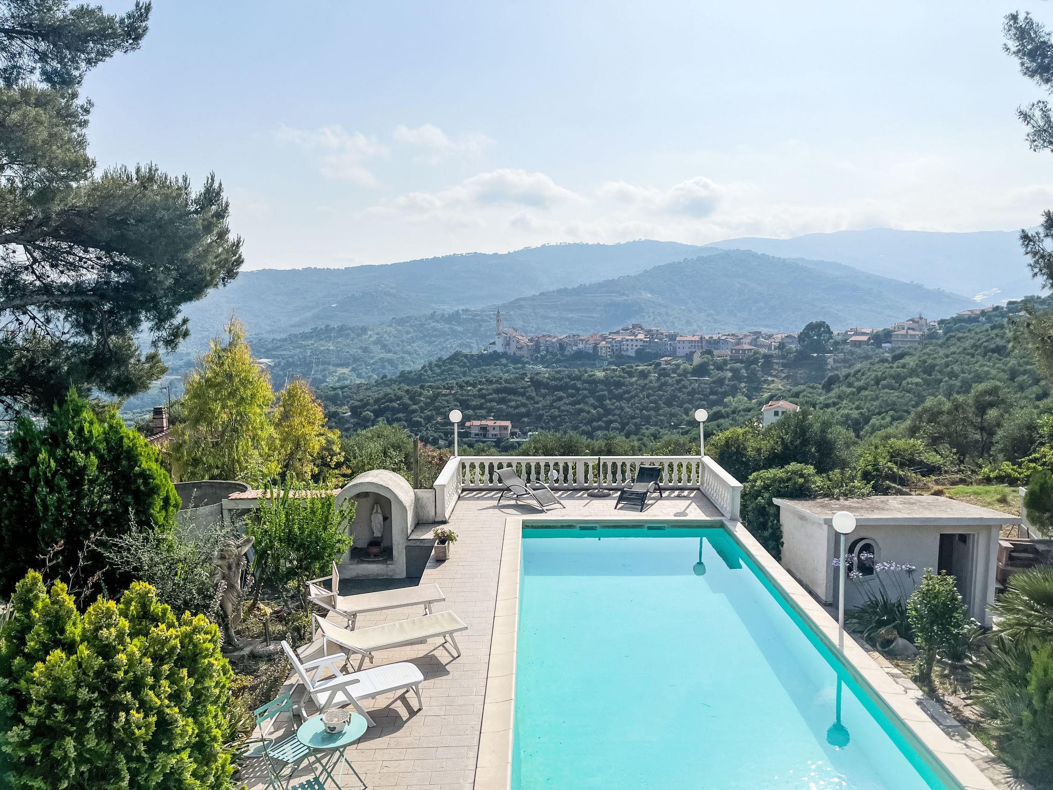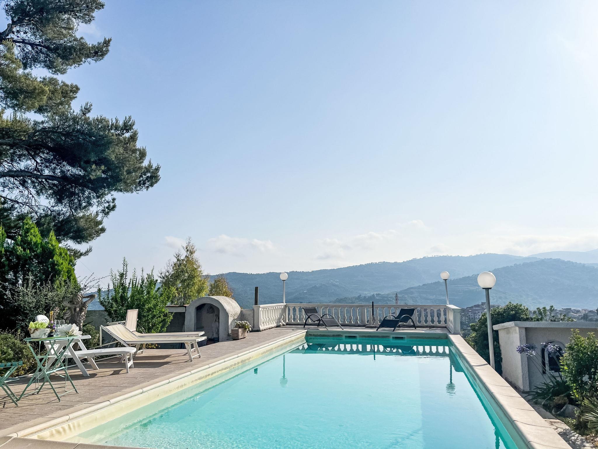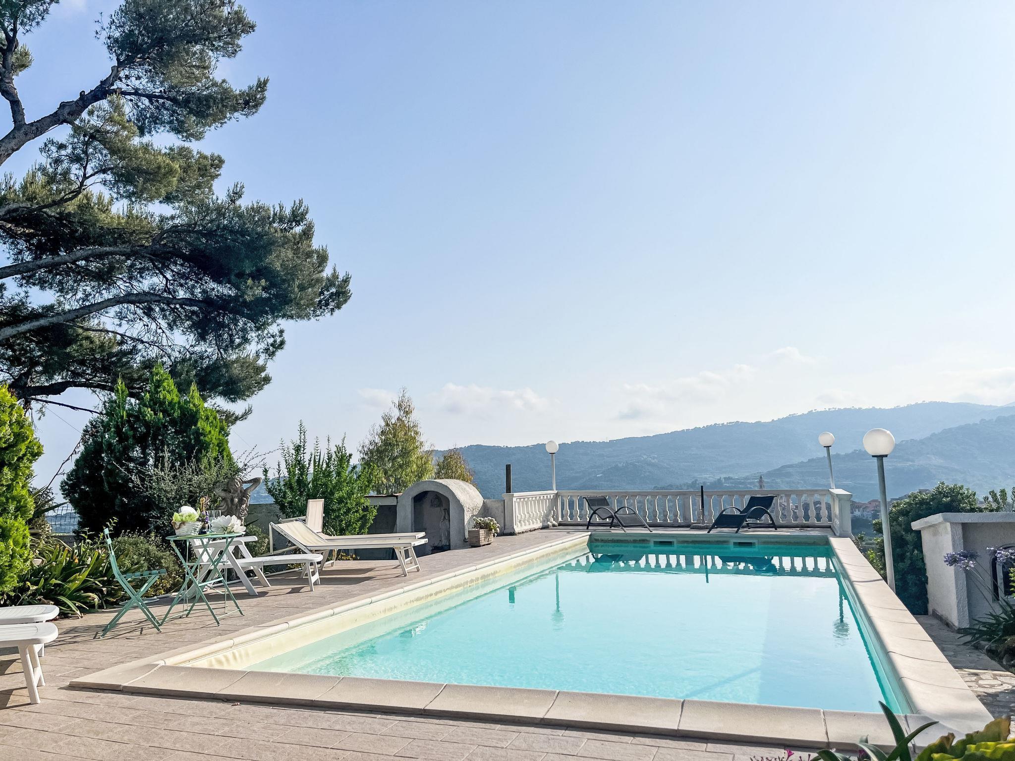 Freistehendes Zweifamilienhaus "Villa Jose", auf 2 Stockwerken, umgeben von Bäumen und Feldern. Oberhalb von Poggi, 2.5 km vom Zentrum von Poggi, 7 km vom Zentrum von Imperia - Porto Maurizio, 27 km vom Zentrum von San Remo, auf einem Hügel, 4.5 km vom Meer, im Grünen. Zur Mitbenutzung: Grundstück 5'000 m2 (eingezäunt) mit Pflanzen und Bäumen, Schwimmbad (10 x 4 m, 140 cm tief, saisonale Verfügbarkeit: 15.Mai. - 30.Sep.). Sitzplatz, Terrasse, Gartenmöbel. Im Hause: Waschmaschine (zur Mitbenutzung). Parkplatz auf dem Grundstück. Einkaufsgeschäft 800 m, Supermarkt 5 km, Bushaltestelle 190 m, Bahnstation "Imperia/Porto Maurizio" 8 km, Sandstrand "Imperia - Porto Maurizio/Borgo Prino" 5 km, Hallenbad 8 km. Jacht-Hafen 9 km. Ein Teil des Hauses ist geschlossen und nicht bewohnt.