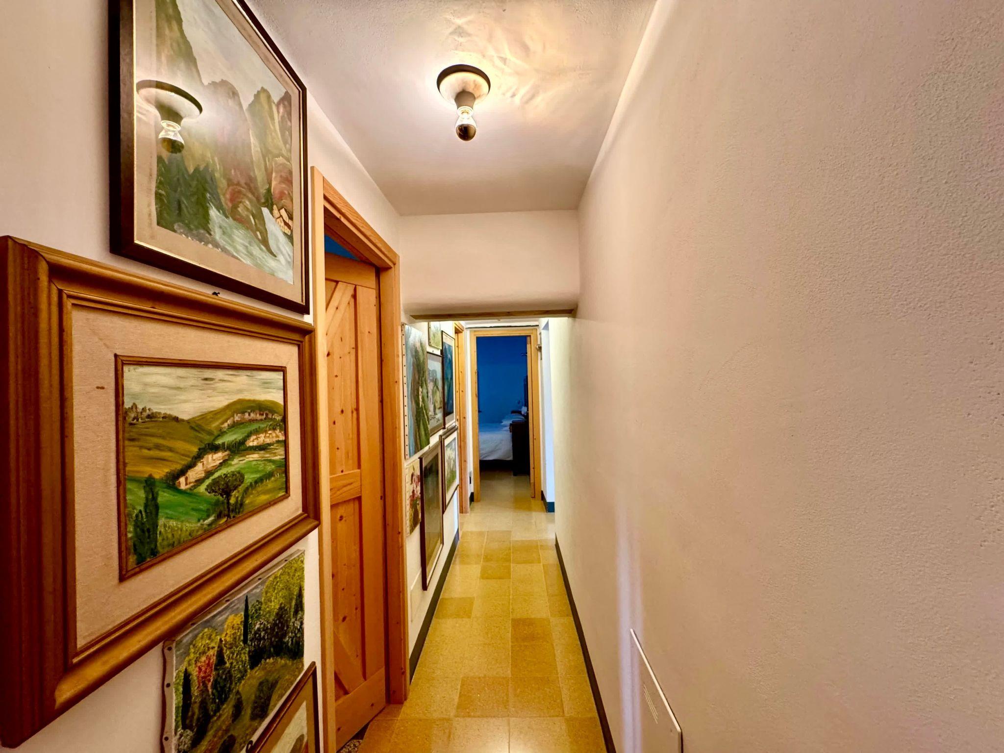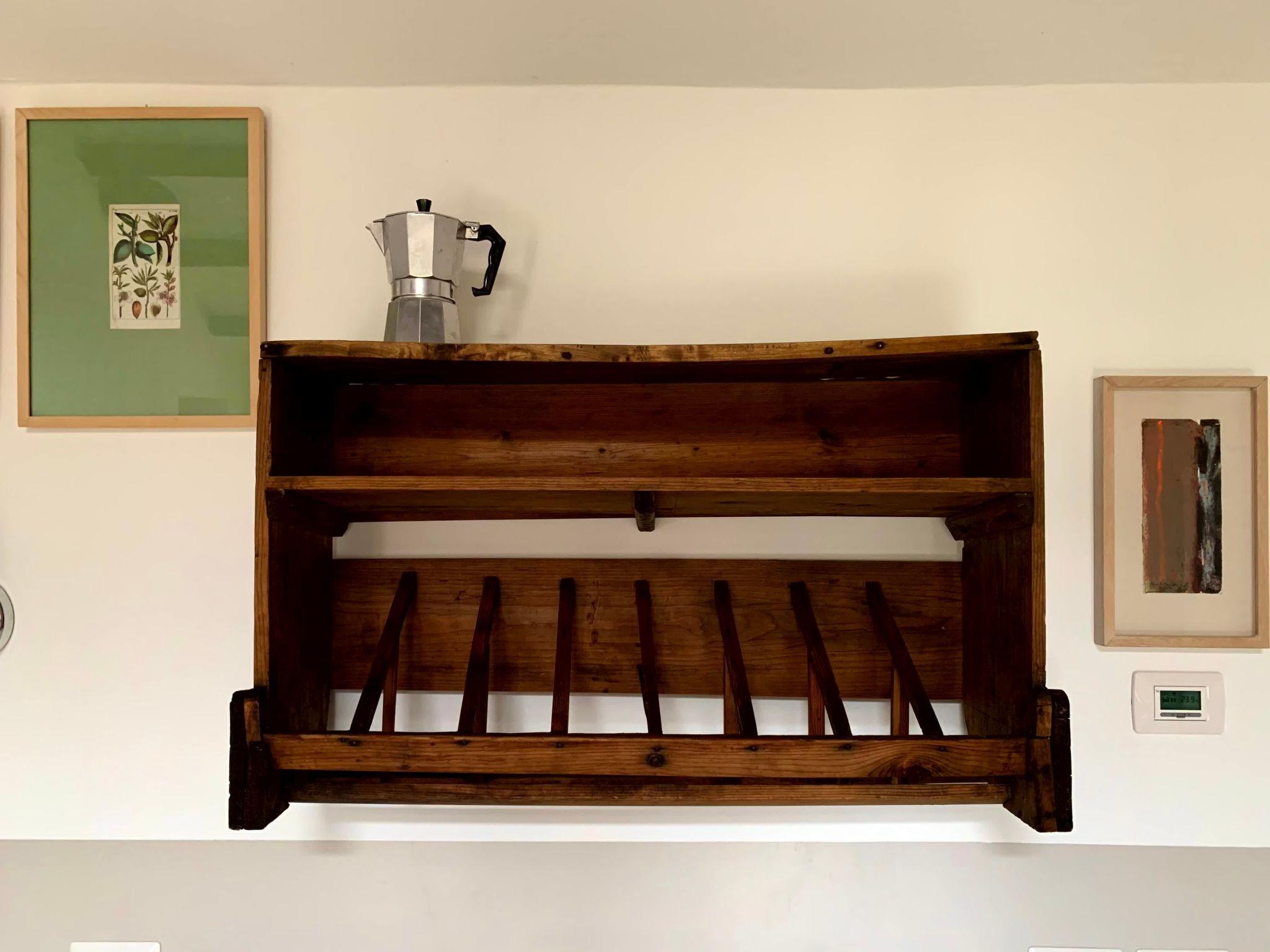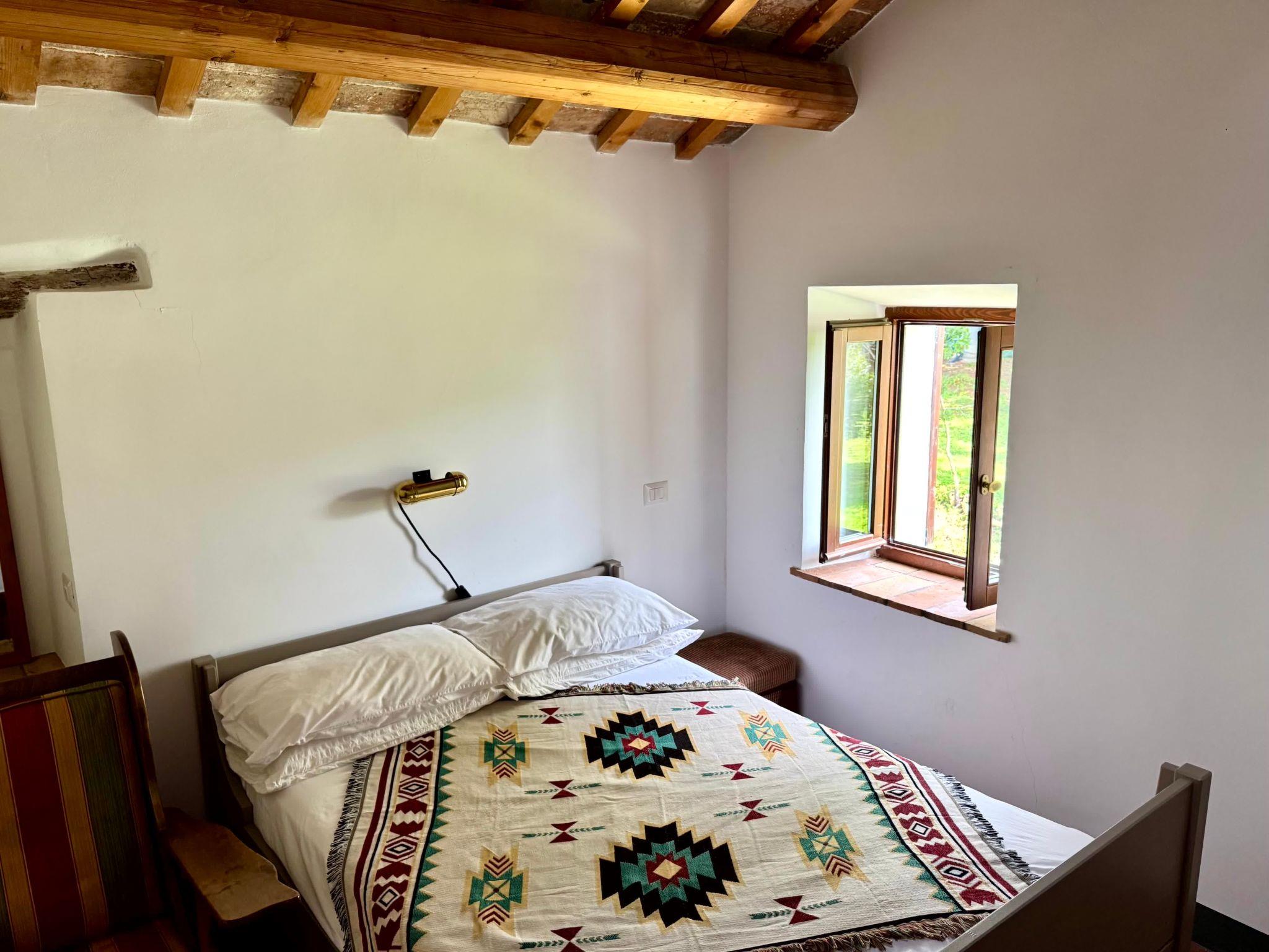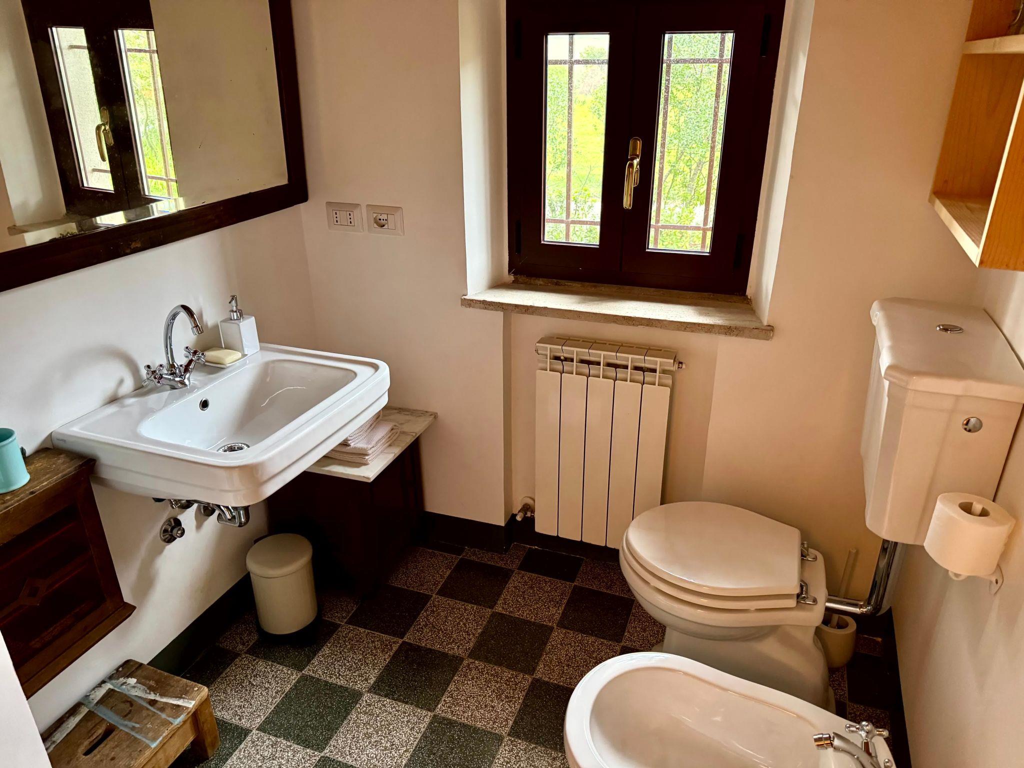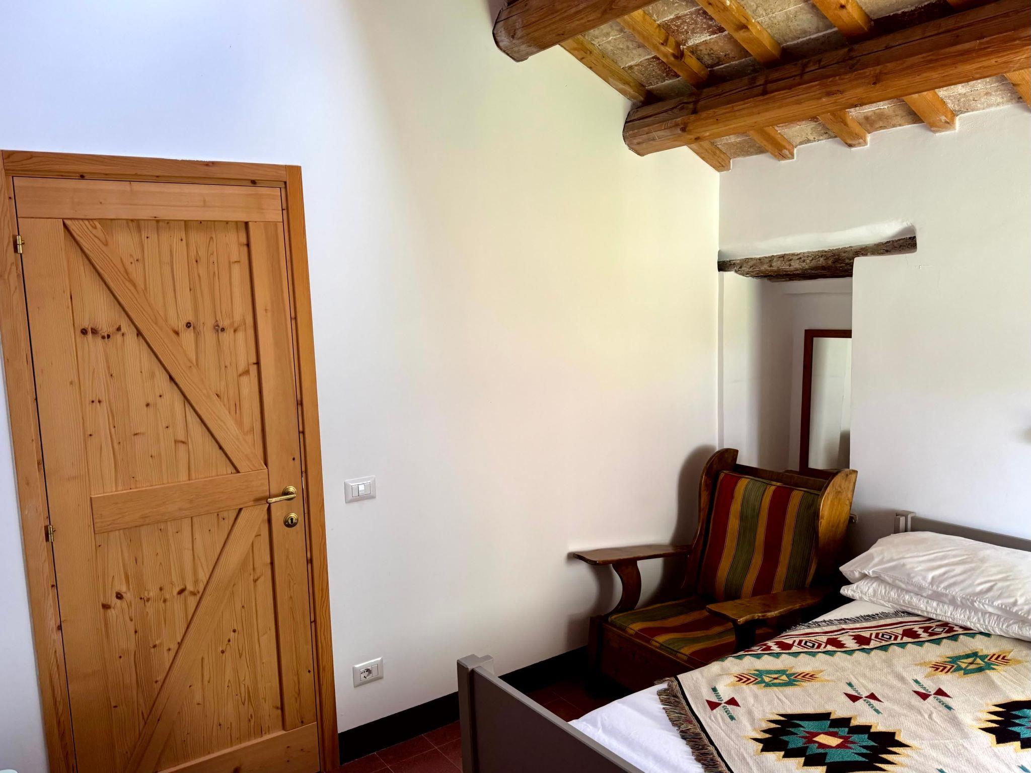 Der zentrale Salon mit Wohnküche ist das Herz, hier sitzen Gäste an einem alten Kirschholztisch aus dem 18. Jh., auf dessen Marmorplatte früher die Pasta ausgerollt wurde. Die Fußböden aus Terrazzofließen sind handgefertigt und stammen aus einem regionalen Traditionsbetrieb. Ein offener Kamin und eine Klimaanlage sorgen für Behaglichkeit. Die Küche ist gut ausgestattet, mitunter mit Induktionsherd, Dunstabzugshaube, Toaster, Wasserkocher, hochwertiges Kochgeschirr und weißes Porzellan.