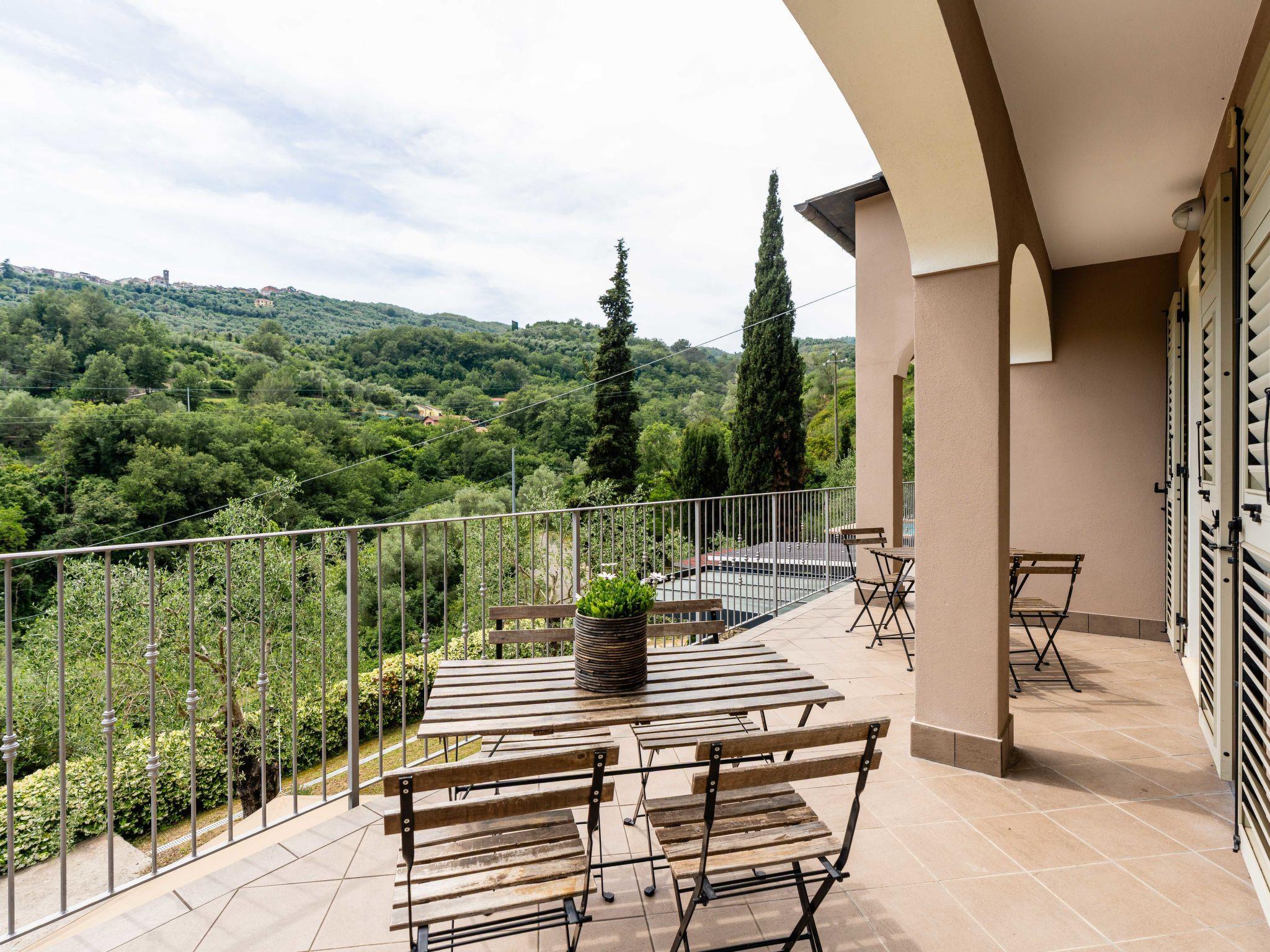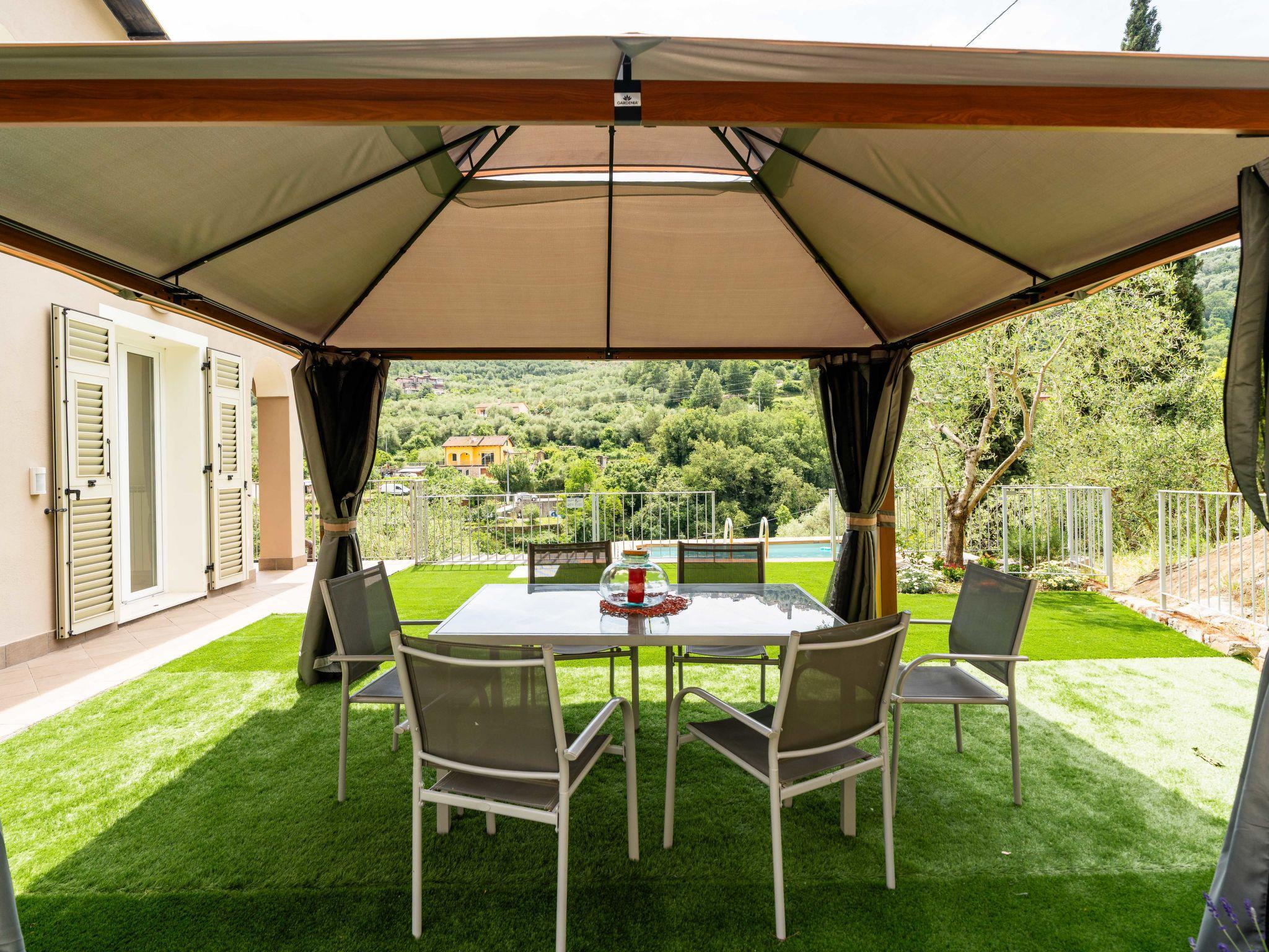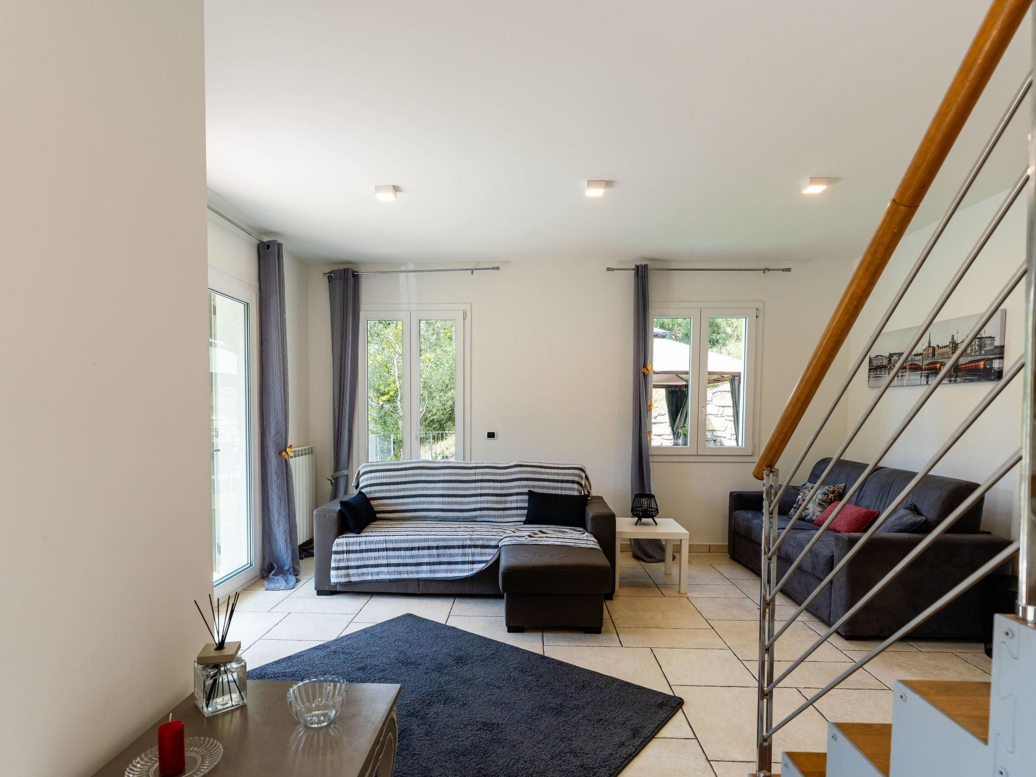 "Casa Mimosa", 4-Zimmer-Wohnung 140 m2 auf 2 Stockwerken. Schön eingerichtet: grosses Wohnzimmer mit 1 Diwanbett (160 cm, Länge 200 cm). Ausgang zum Gartensitzplatz. 1 Doppelzimmer. Ausgang zur Terrasse. Wohnküche (Backofen, Geschirrspüler, 4 Flammen, Toaster, Wasserkocher). Ausgang zur Terrasse. Dusche/Bidet/WC. Obergeschoss: (Leiter) 1 Doppelzimmer. 1 Kinderzimmer, Deckenhöhe 120 - 150 cm mit 2 Betten (80 cm, Länge 190 cm). Sep. WC. G-Heizung. Heizung nur verfügbar von 15.10. bis 30.04. Natursteinboden. Gartensitzplatz 300 m2. Terrassenmöbel, Liegestühle. Schöne Panoramasicht auf die Berge. Zur Verfügung: Waschmaschine. Internet (WLAN, gratis). Parkplatz (2 Autos). Maximal 1 Haustier/Hund erlaubt. IT008045C2K7UXH8DA