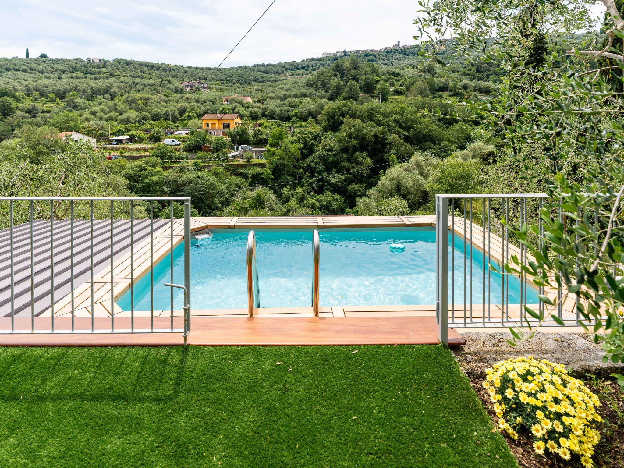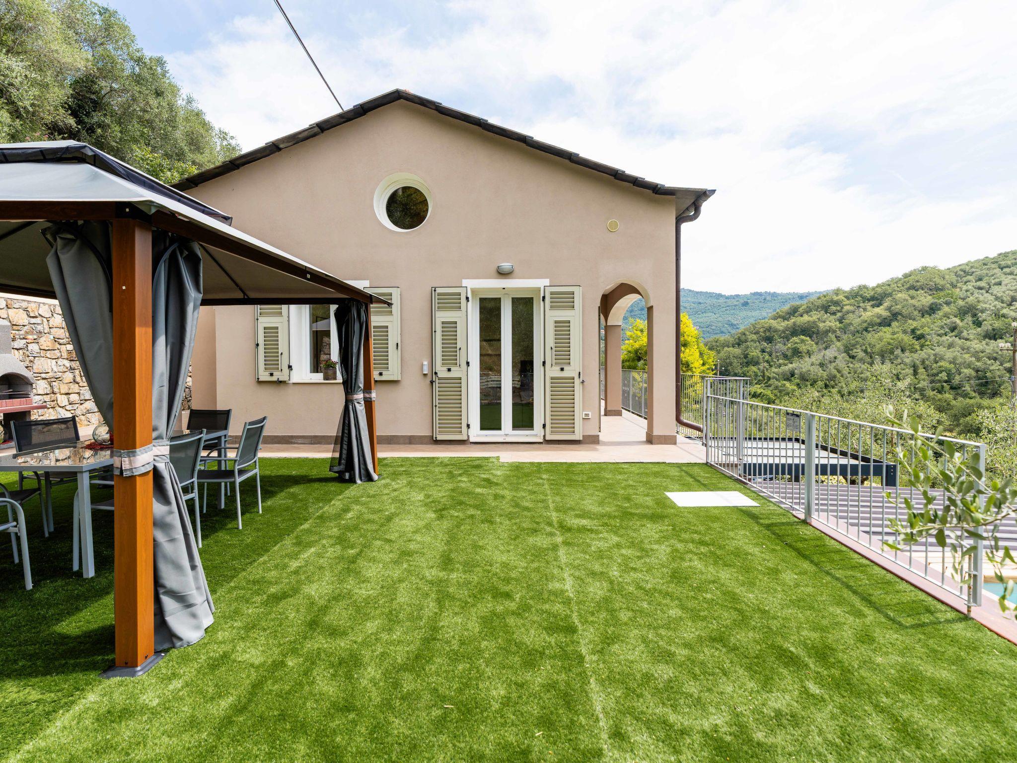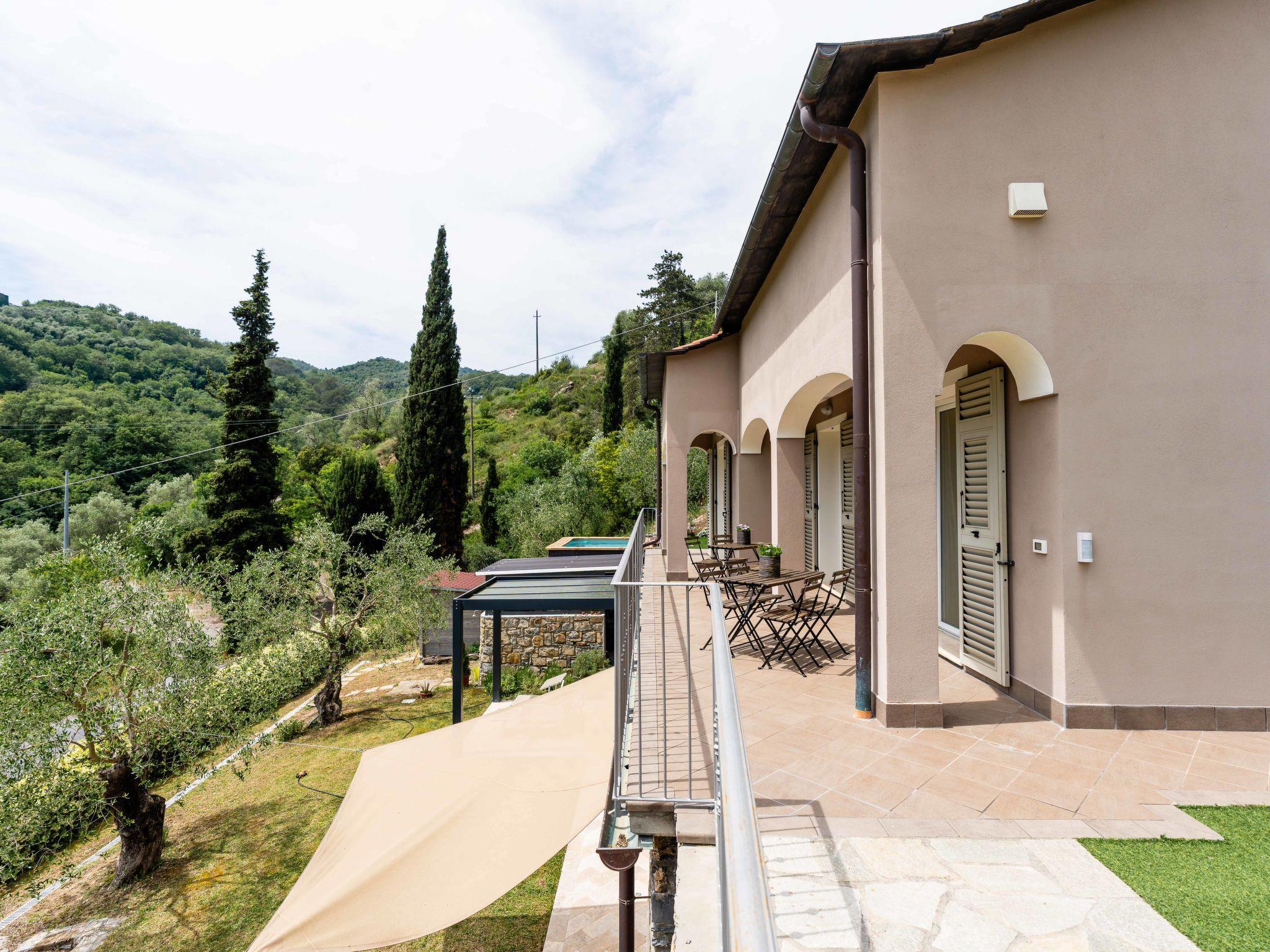 Sehr freistehendes, komfortables Zweifamilienhaus "Casa Mimosa", auf 2 Stockwerken, renoviert im Jahre 2021. 2 Wohnungen im Ferienhaus. 1.2 km vom Zentrum von Pontedassio, 8 km vom Zentrum von Imperia, 14 km vom Zentrum von Diano Marina, 9 km vom Meer. Zur Mitbenutzung: terrassierter Garten, 1'000 m2 mit Pflanzen und Bäumen, Schwimmbad (5 x 4 m, 130 cm tief, saisonale Verfügbarkeit: 15.Apr. - 30.Okt.). Parkplatz (für 2 Autos) auf dem Grundstück. Lebensmittelgeschäft 1.2 km, Supermarkt 3 km, Restaurant 1.2 km, Bar 1.2 km, Bushaltestelle 3.3 km, U-Bahnstation "Imperia" 7 km, Sandstrand "Imperia" 8 km. Bitte beachten: Der Besitzer wohnt auf dem gleichen Grundstück.