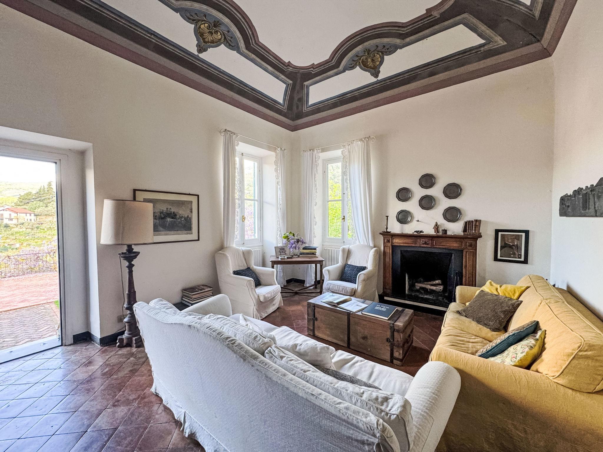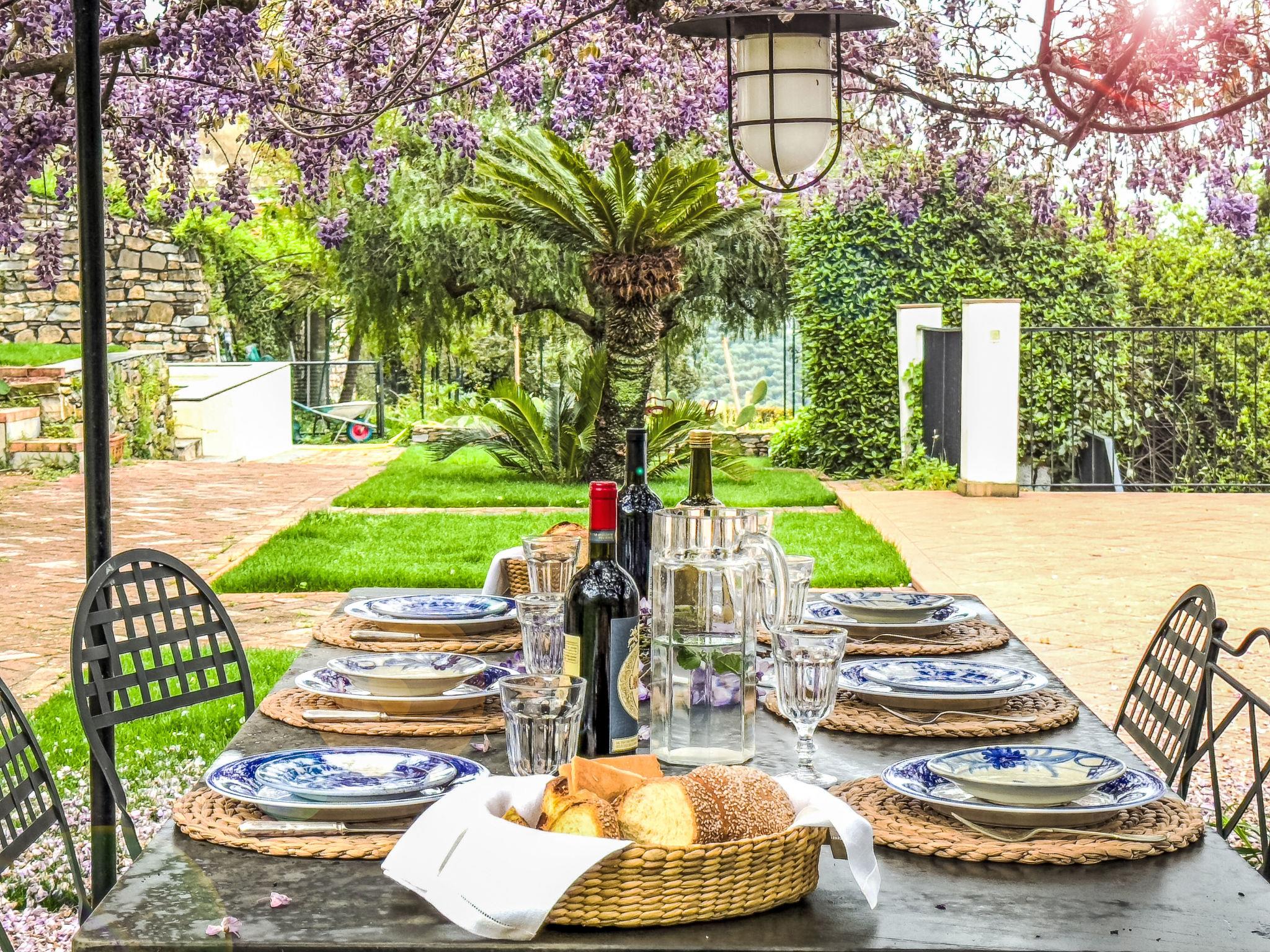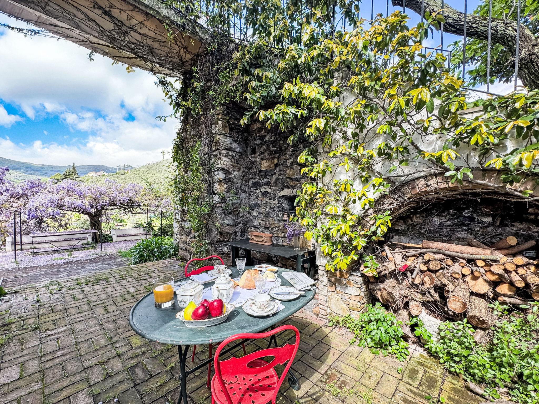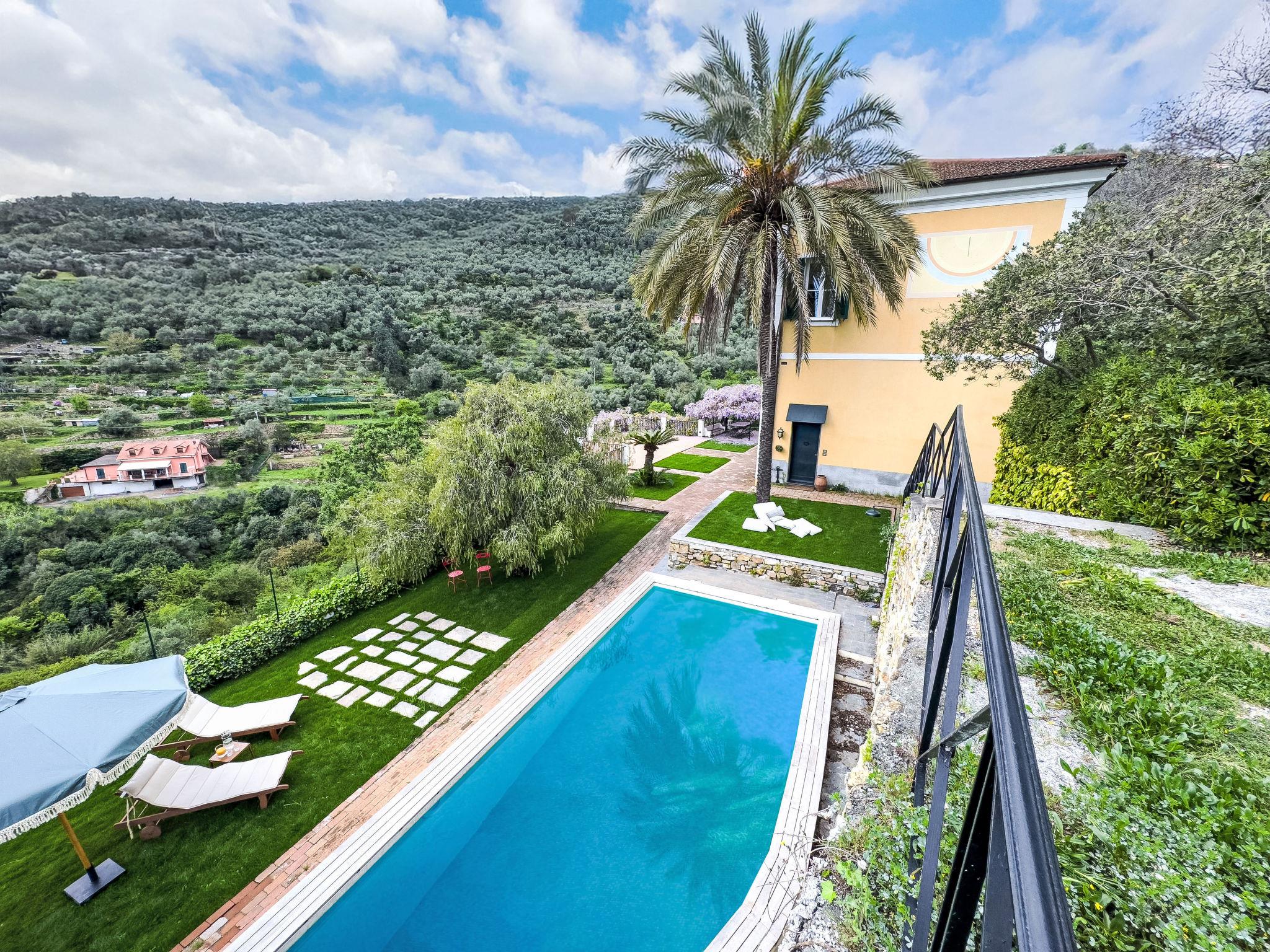Freistehende, komfortable, historische Villa auf 3 Stockwerken, umgeben von Bäumen und Weinbergen. 1 km vom Zentrum von Pontedassio, 7 km vom Zentrum von Imperia, 13 km vom Zentrum von Diano marina, 9 km vom Meer. Zur Alleinbenutzung: Park 2'000 m2, terrassierter Garten, Naturgarten, Wiese, Obstgarten, Schwimmbad (10 x 5 m, 100 - 160 cm tief, saisonale Verfügbarkeit: 15.Mai. und 30.Sep.). Dusche/WC im Poolbereich. Im Hause: Fitnessraum, Einstellraum für Fahrräder. Parkplatz auf dem Grundstück. Lebensmittelgeschäft 1 km, Supermarkt 1 km, Einkaufszentrum 1 km, Restaurant 1 km, Fahrradverleih 1 km, Bushaltestelle 300 m, Bahnstation "Imperia Oneglia" 7 km, Sandstrand "Imperia" 9 km. Radweg 7 km. Bitte beachten: Fahrzeug empfohlen. Be- und Entladen am Ferienhaus möglich.