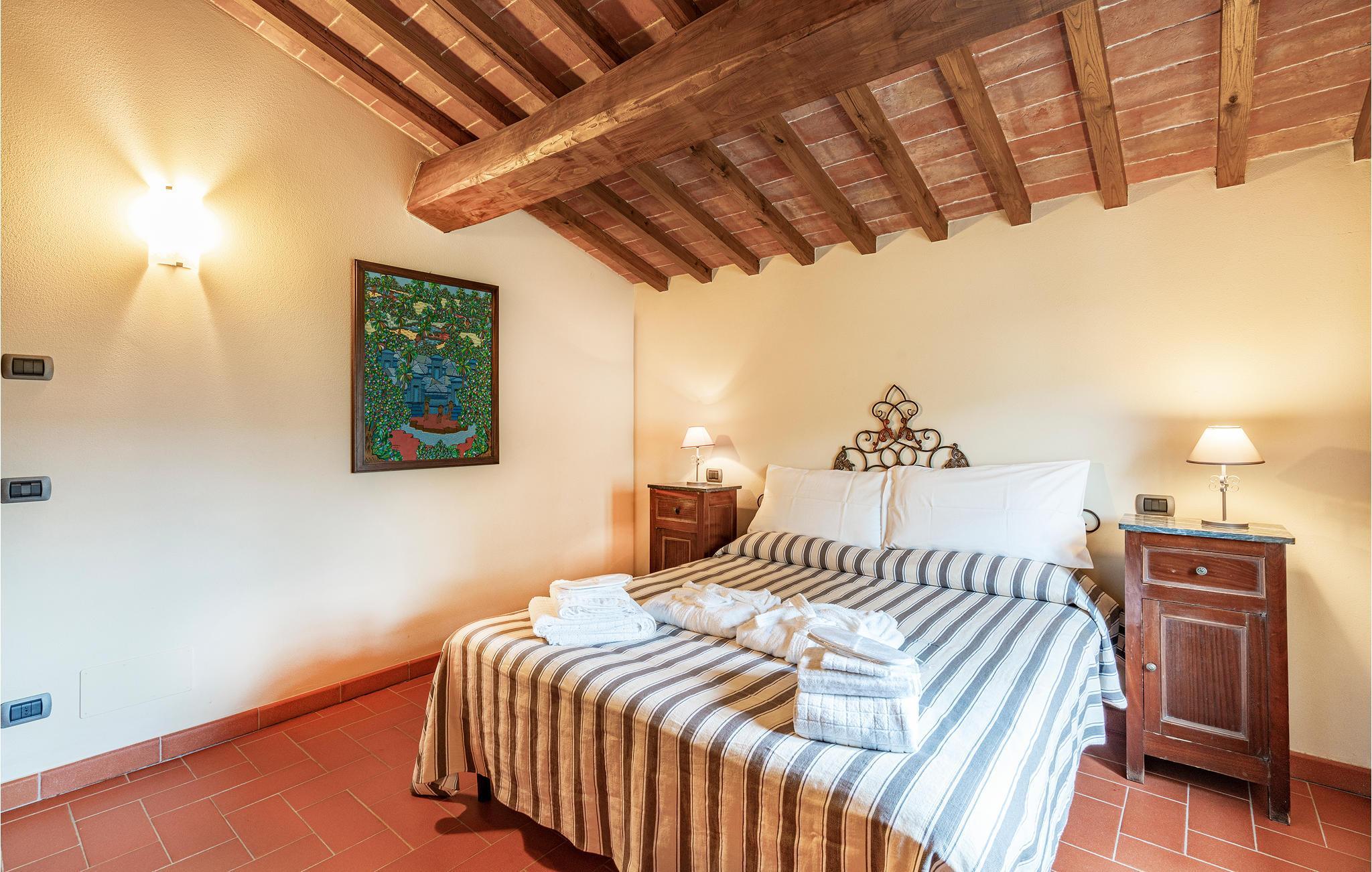 Etwa 5 km von Poppi, in malerischer Hügellage, liegt dieses freundliche Ferienhaus mit malerischem Rundumblick. Das ehemalige Bauernhaus wurde liebevoll restauriert und im toskanischen Landhaus-Stil eingerichtet, so dass Sie hier zum einen die rustikale Atmosphäre vergangener Zeiten als auch modernen Komfort genießen können. Beide Stockwerke können Sie ebenerdig betreten; im oberen befindet sich der zentrale Wohnbereich mit Küche und Esszimmer, Wohnzimmer mit offenem Kamin und Ausgang auf die Terrasse; Barbecue und eine weitere möblierte Terrasse auf dem privaten Grundstück, sowie der Poolbereich mit Panoramablick - hier können Sie sich bestens entspannen, baden, sonnenbaden, schmökern und den Ferientag bei einem Gläschen Rotwein genüsslich ausklingen lassen. Und falls Sie ein wenig Bewegung brauchen: Ihnen stehen verschiedene Spiele wie Tischtennis, Tischfußball, Boccia u.a. gemeinsam mit den Gästen des benachbarten Ferienhauses ITA045 zur Verfügung. Garage auf Anfrage. Ein Paradies nicht nur zum Entspannen sondern auch für Trekking und Exkursionen zu den Städtchen und Burgen des Casentino-Naturparks - – oder besuchen Sie den Zoo von Poppi! Eine der imposantesten Burgen finden Sie gleich im mittelalterlichen Poppi, einem reizenden Städtchen, wo es Ihnen gefallen wird, einen Cappuccino am Morgen, einen Aperitif am Abend – oder umgekehrt – einzunehmen. Gute Trattorien bieten lokale Gerichte, z.B. mit Steinpilzen oder Trüffel. Entdecken Sie Arezzo (45 km) mit seiner sehenswerten Altstadt - z.B. beim Bummeln durch den Corso, beim Besichtigen der sehenswerten Kathedrale, der romanischen Pieve, der Kirche San Francesco mit dem berühmten Freskenzyklus von Piero della Francesca - und natürlich beim Aperitif auf der Piazza Grande! Im Juni und September finden auf der Piazza Grande die traditionellen Reiterspiele des Saraceno statt; an jedem ersten Wochenende im Monat wird die ganze Altstadt vom großen nationalen Antiquitätenmarkt bunt belebt. Unasphaltierte Zufahrt 300m.