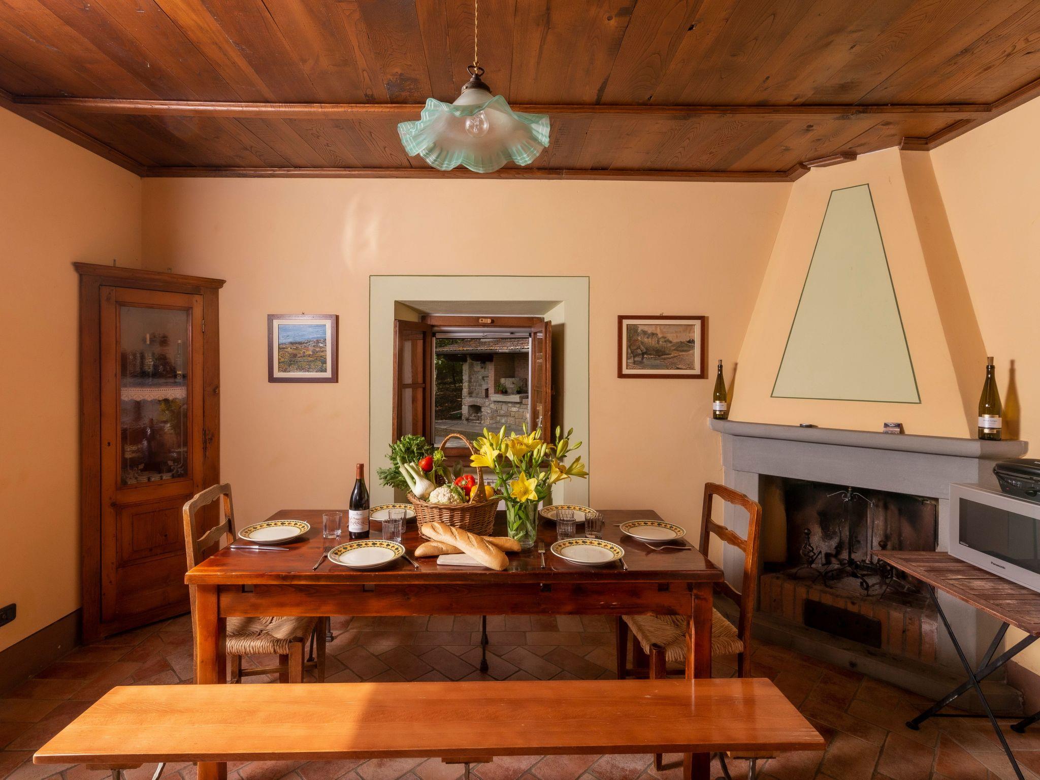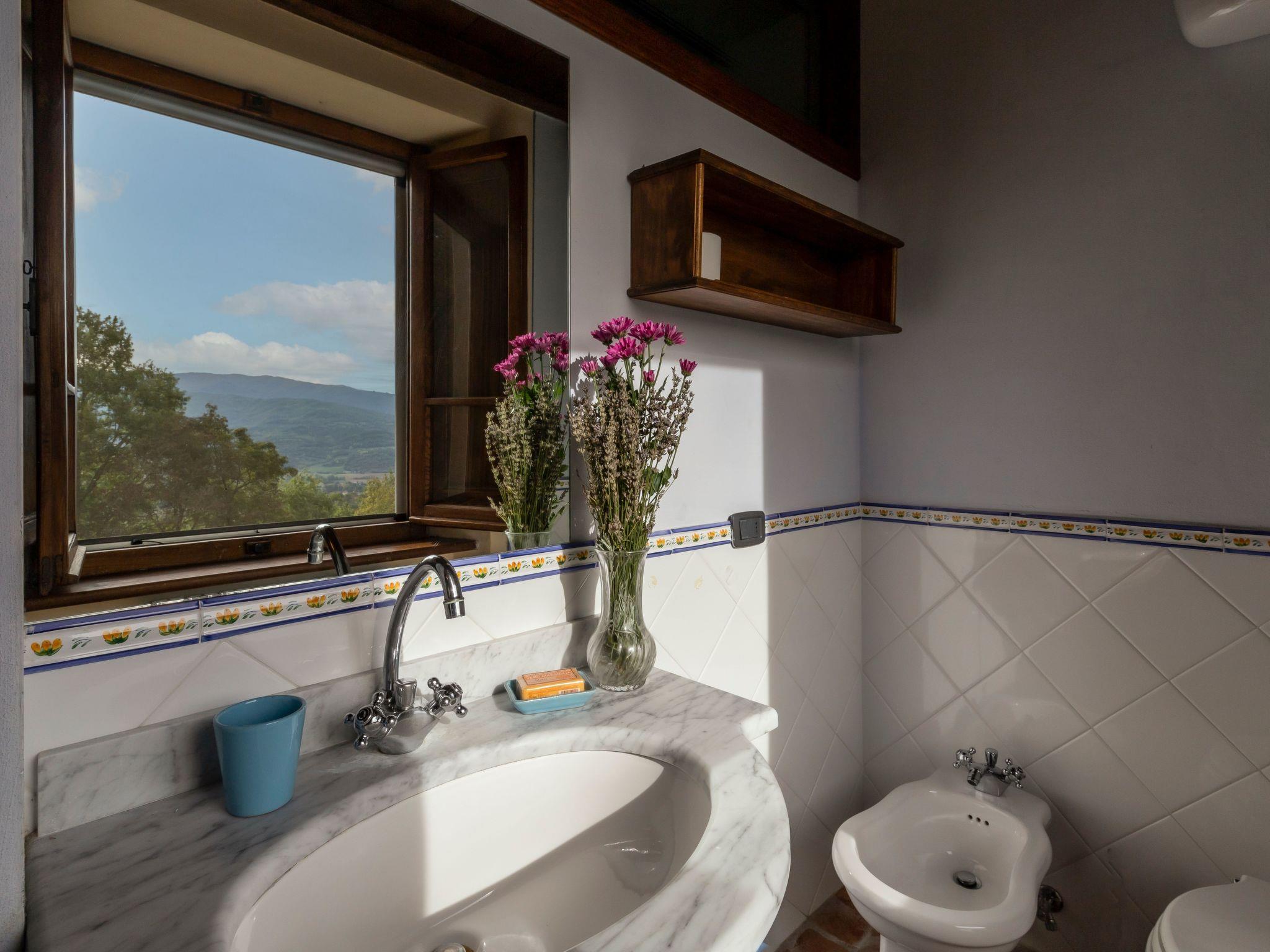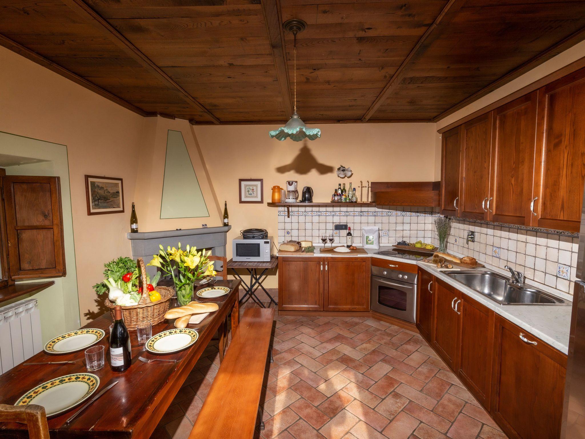 Im Außenbereich befindet sich der private Pool (5x11m) mit Innen- und Außenbeleuchtung, Dusche und Sonnenliegen (während der Zwischen- und Hochsaison geöffnet). Die Villa ist sehr hell und liegt sehr ruhig, umgeben von einem jahrhundertealten Eichenwald, in dem man Hirsche, Damhirsche und Rehe antreffen kann oder, je nach Jahreszeit, Pilze, Brombeeren oder Oliven sammeln kann. Deshalb ist die Villa der ideale Urlaubsort, an dem man umgeben von der Natur den Frieden genießen kann. Es gibt einen fantastischen gemauerten und überdachten Barbecue mit Beleuchtung, Grill, Holzofen zum Pizzabacken, Spüle mit Trinkwasser, Abstellflächen, Tisch und Stühlen, sodass man die Gerichte im Freien einnehmen und den herrlichen Ausblick auf das zauberhafte Tal Valle del Casentino genießen kann.