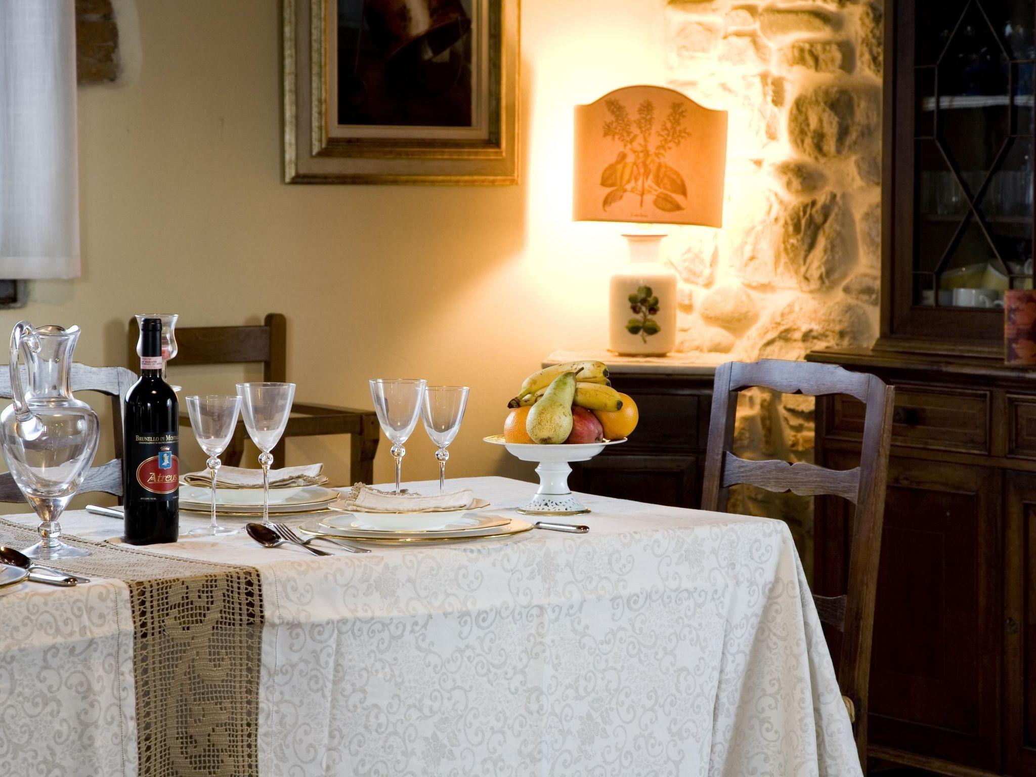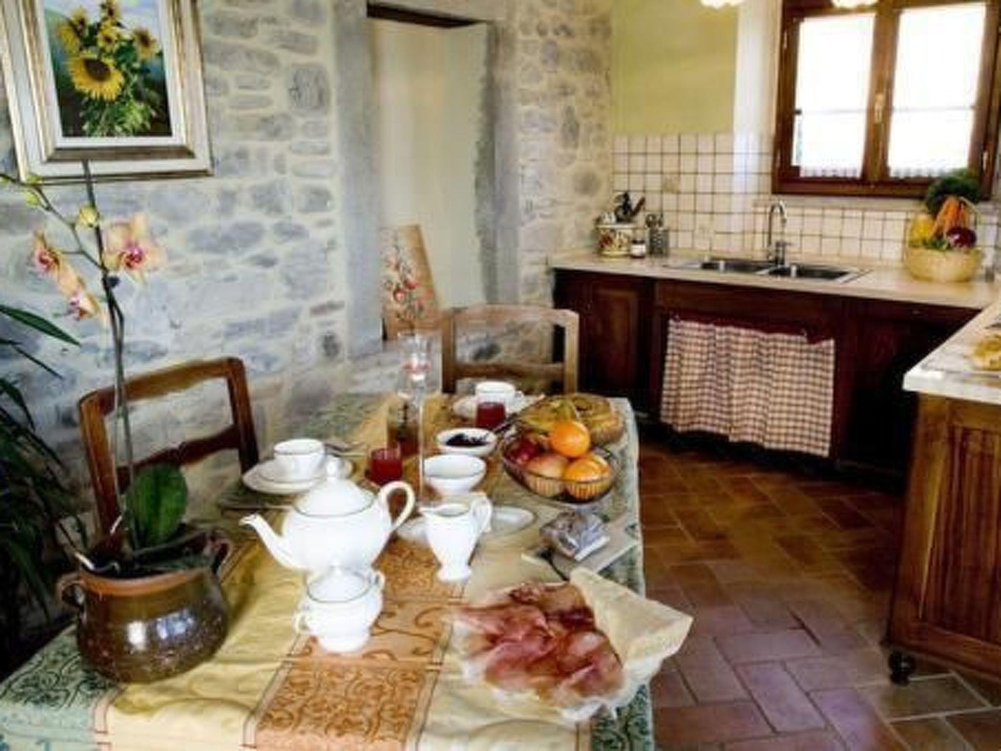 Das Haus bietet Platz für bis zu drei Personen mit einem Schlafzimmer und einem Badezimmer. Es hat eine Gesamtfläche von 60 Quadratmetern und ist auf zwei Etagen aufgeteilt. Im Erdgeschoss befindet sich auf 30 Quadratmetern das geräumige Wohnzimmer mit Sesseln, Holzofen, Satellitenfernsehen, Schreibtisch, Esstisch und vier Stühlen sowie die Küche mit Gasherd mit vier Brennern, Mikrowelle, Dunstabzugshaube, Kühl- und Gefrierschrank und verschiedenen Geräten. Der Flur im Obergeschoss ist über eine Holztreppe zu erreichen. Hier gibt es ein Badezimmer mit Fenster, Dusche, WC, Bidet, Waschbecken und ein großes Schlafzimmer mit einem Fenster (das verdunkelt werden kann), das auf den schönen Swimmingpool und den Hügel blickt, auf dem die mittelalterliche Burg von Poppi steht. Das Zimmer hat einen Kamin, ein Doppelbett und ein Einzelbett. Wichtige Information für Gäste mit Haustieren: Das Grundstück ist komplett mit einem zwei Meter hohen Zaun eingezäunt.