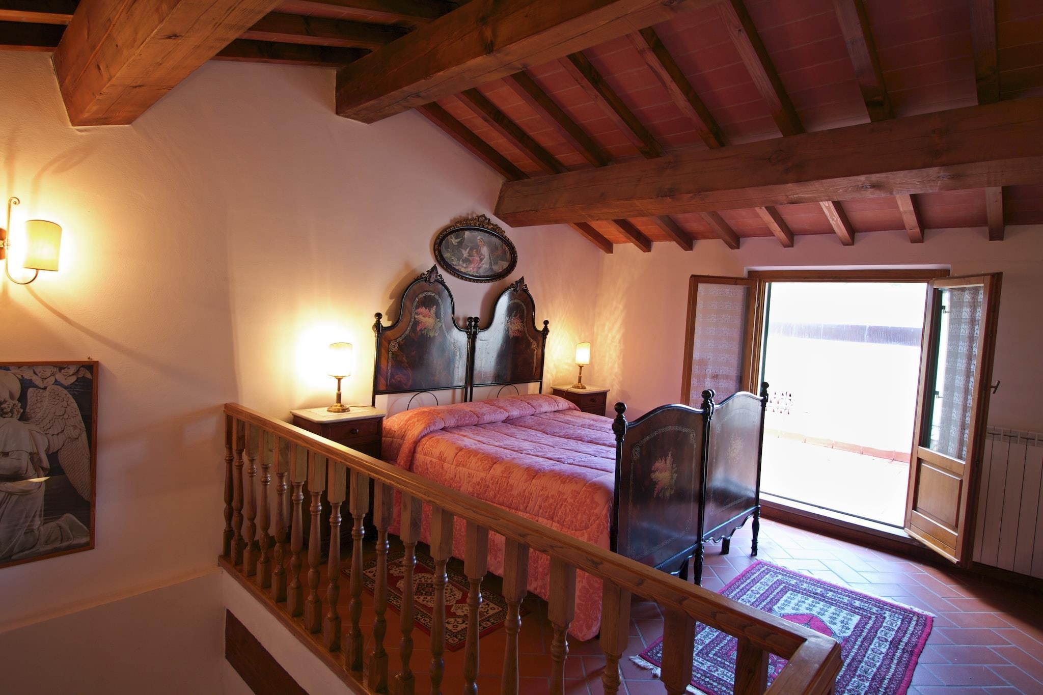Im Herzen von Poppi bietet dieses charmante Bauernhaus einen Panoramablick auf das Casentino-Tal. Umgeben von üppigen Gärten, Wäldern und sanften Hügeln ist es ein idealer Ausgangspunkt für Naturliebhaber und alle, die Ruhe und Authentizität in der toskanischen Landschaft suchen. Entspannen und erholen Sie sich im Pool (geöffnet von Mai bis Oktober) und genießen Sie die ultimative Entspannung. Der eingezäunte und beleuchtete Gemeinschaftsgarten lädt zu gemütlichen Spaziergängen ein. Die private, überdachte Terrasse und die zahlreichen gemeinschaftlich genutzten Außenbereiche bieten die perfekte Atmosphäre für entspannte Stunden bei einem Glas Wein. Der gemütliche Wohnbereich im Zwischengeschoss mit TV, voll ausgestatteter Küche und Schlafsofa steht allen offen. Im Außenbereich finden Sie zahlreiche Möglichkeiten für Aktivitäten wie: * Spielplatz, Rutsche und Outdoor-Spielgeräte für Kinder * Boule-Platz, Tischtennis und Freizeitraum für Familienspaß * Grillplatz für lange toskanische Abende mit lokalem Wein und gegrilltem Fleisch oder Käse. Entdecken Sie die Region * Besuchen Sie das Castello di Poppi, ein mittelalterliches Juwel mit atemberaubendem Blick über das Tal. * Tauchen Sie ein in die Geschichte der Abtei San Fedele mit ihren Gemälden im Giotto-Stil. * Der Zoo von Poppi bietet Familien einen unterhaltsamen Tag in der Natur. * Wandern Sie im Nationalpark Casentino-Wälder oder besteigen Sie den Monte Falterona. * Lokale Restaurants * Genießen Sie im Agriturismo San Marco (Via Fiorentina 87) authentische Bistecca Fiorentina aus hochwertigem Chianina-Rindfleisch. * Entdecken Sie lokale Köstlichkeiten wie handgemachte Salami und Rohschinken, die oft direkt vom Bauernhof erhältlich sind. Diese ruhige Oase auf einem Hügel bietet die perfekte Mischung aus Entspannung, Kultur und Outdoor-Abenteuer.